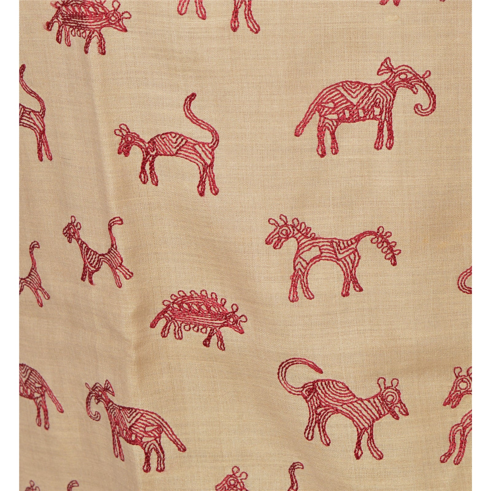 Sanskriti Vintage Khandi Silk Embroidered Long Top Kurta Indian Cream Animal