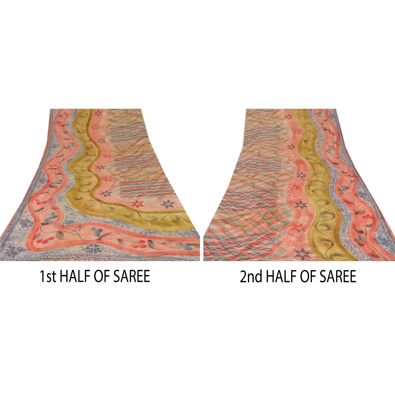 • Nice shades of red colored printed blend georgette saree. • Pallu & Border has printed floral design. • Floral design in center part of sari. This unique vintage saree can be used for various crafting ideas even if you don't want to use it as a sari. Design a dress, use it as a as window dressing, upholstery, sarongs, throw, dress making and table linen much more. Let your creative juices flow and use this decorated Sustainable Fabric in multiple fashion