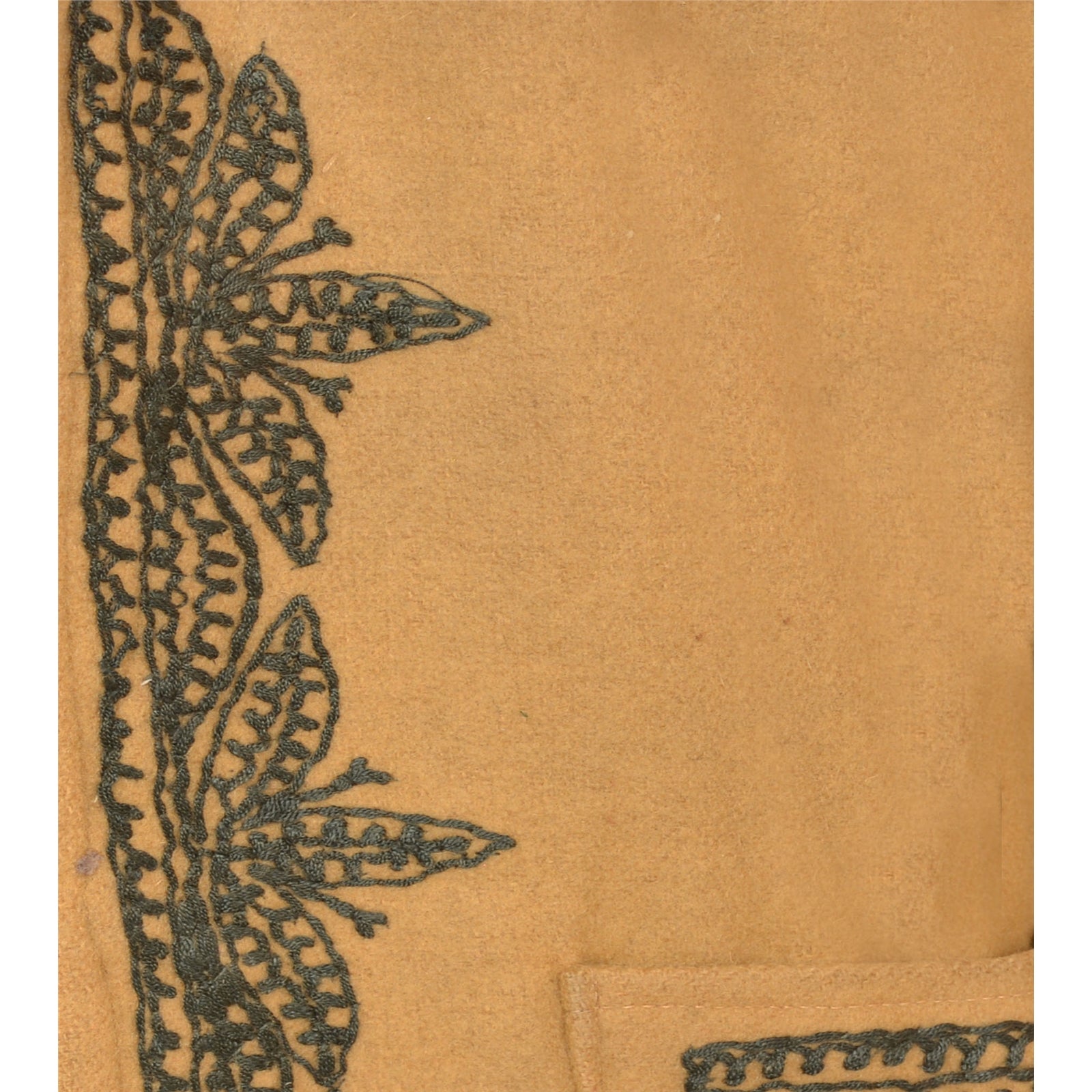 Sanskriti Vintage Sustainable Fabric Woolen Hand Embroidered Kashmiri Long Top Open Style Jacket Brown