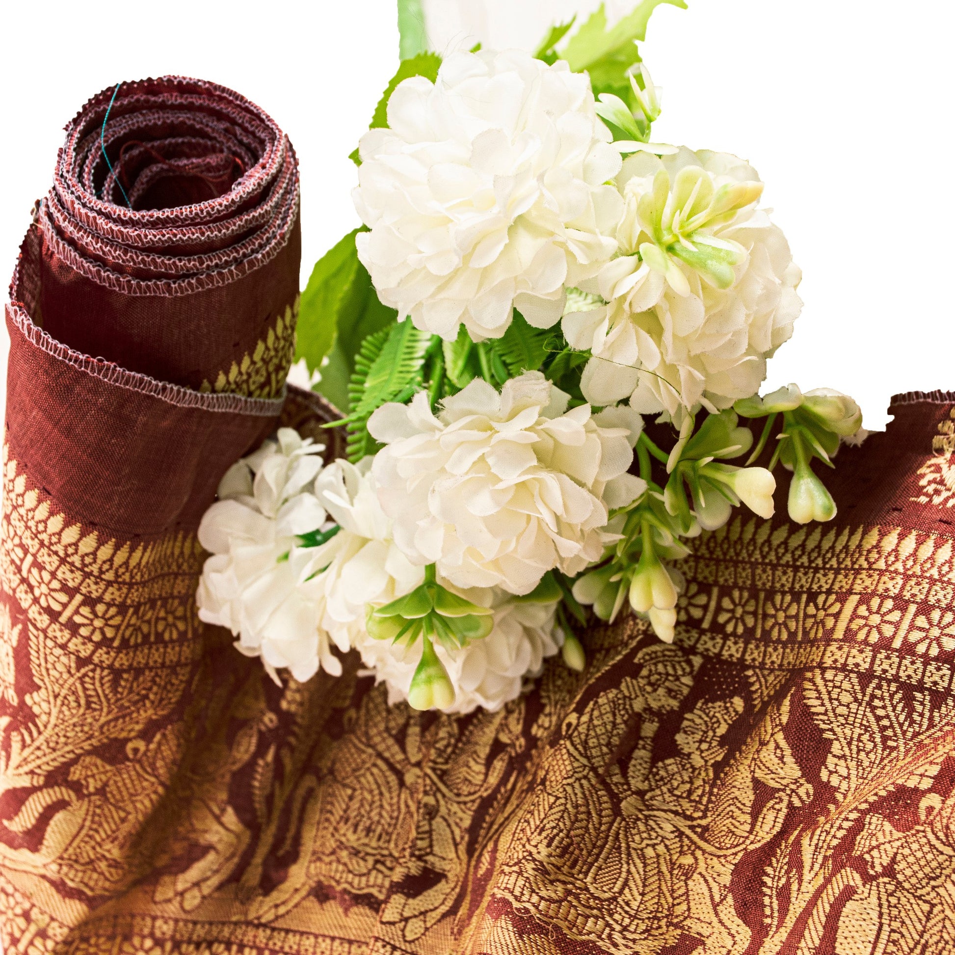 Sanskriti Vintage 1 Yard Saree Border Woven Baluchari Trim Sewing Dark Red Lace