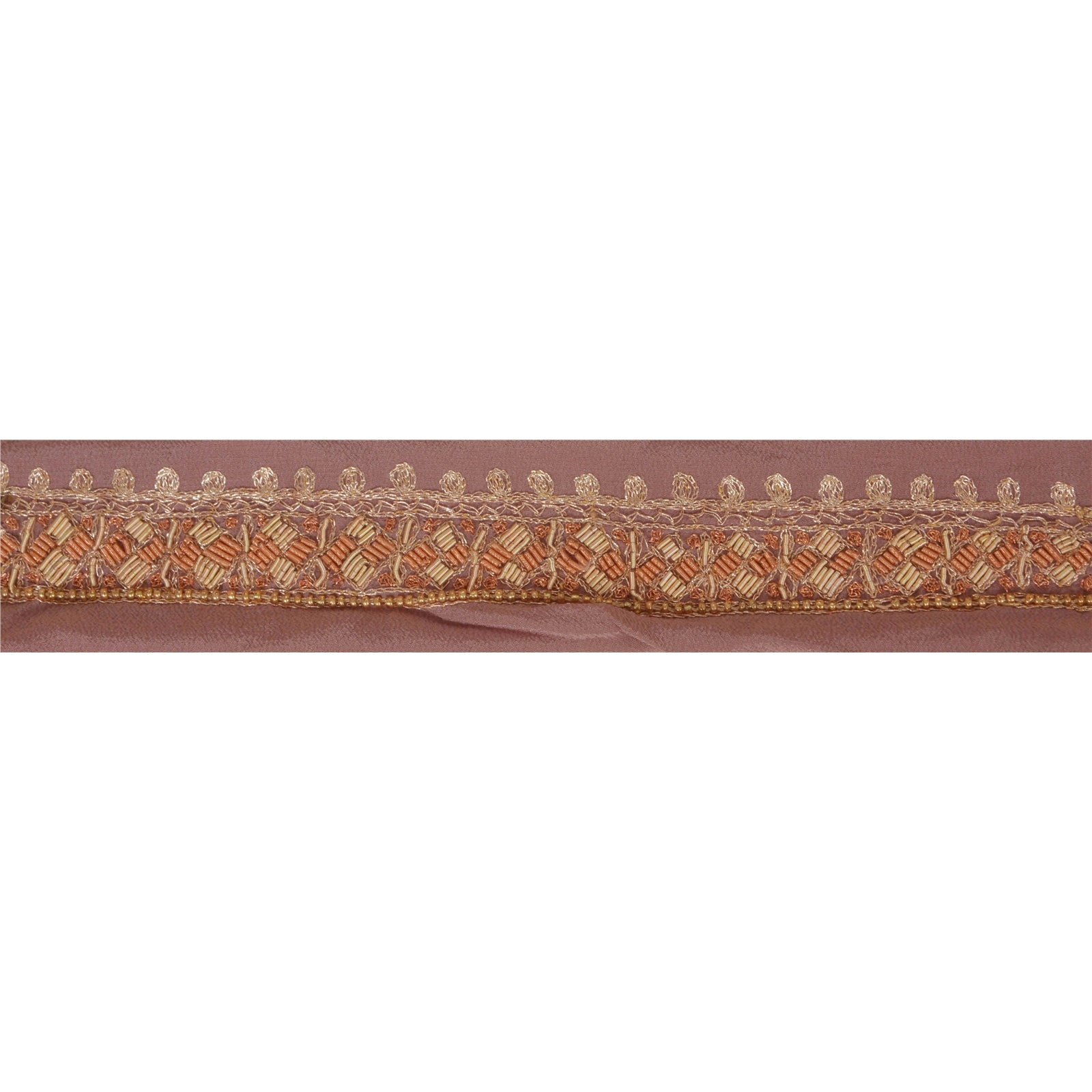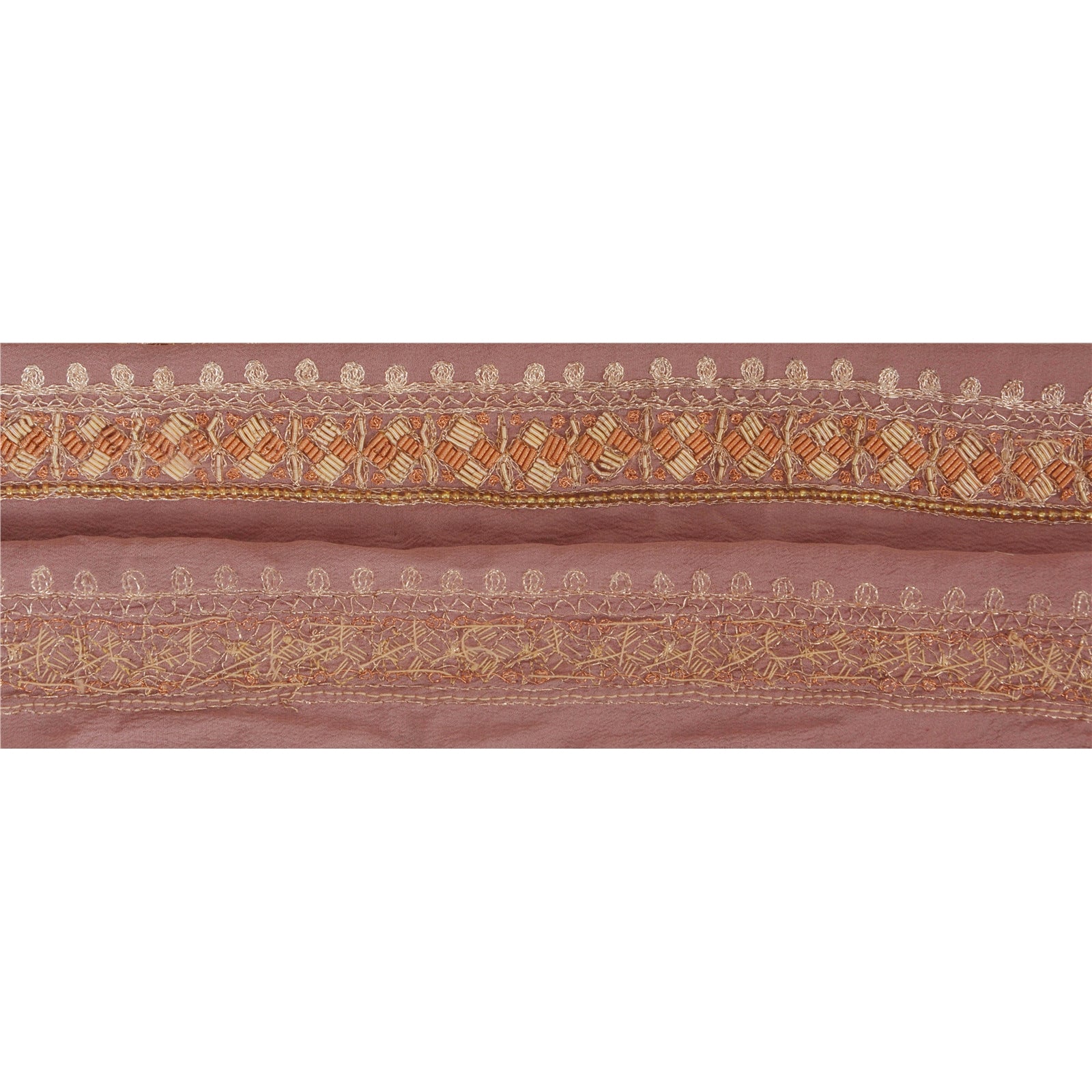 Sanskriti Vintage 1 YARD Sari Border Hand Beaded Zardozi Trim Sewing Purple Lace