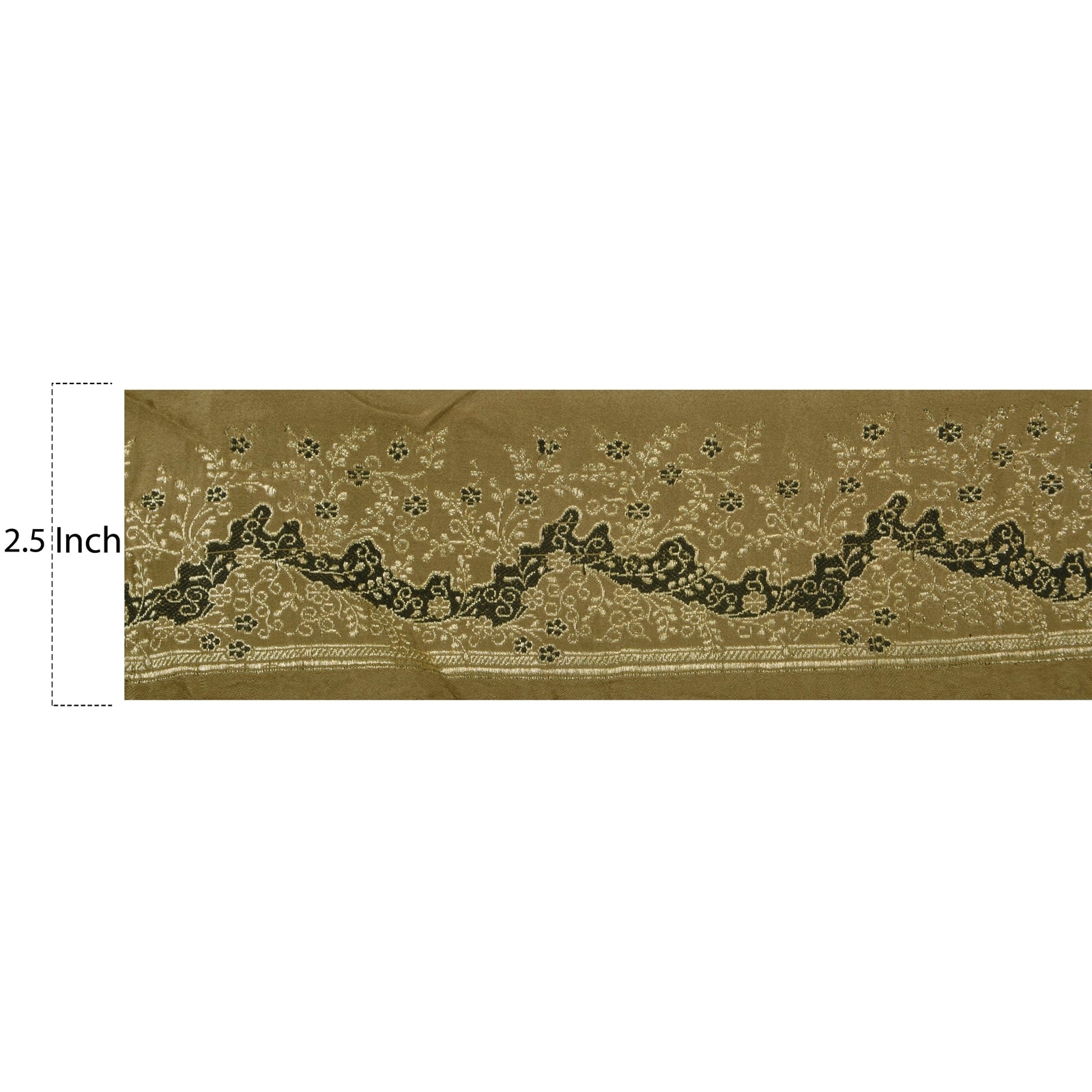 Outstanding satin silk woven brocade sari border in green color highlighting zari work. Border has beautiful floral patterns painstakingly golden zari (electroplated copper metallic thread) work, black thread work. WOW!! an awesome one of a kind versatile border. 1 Quantity = 1 Yard B-14045