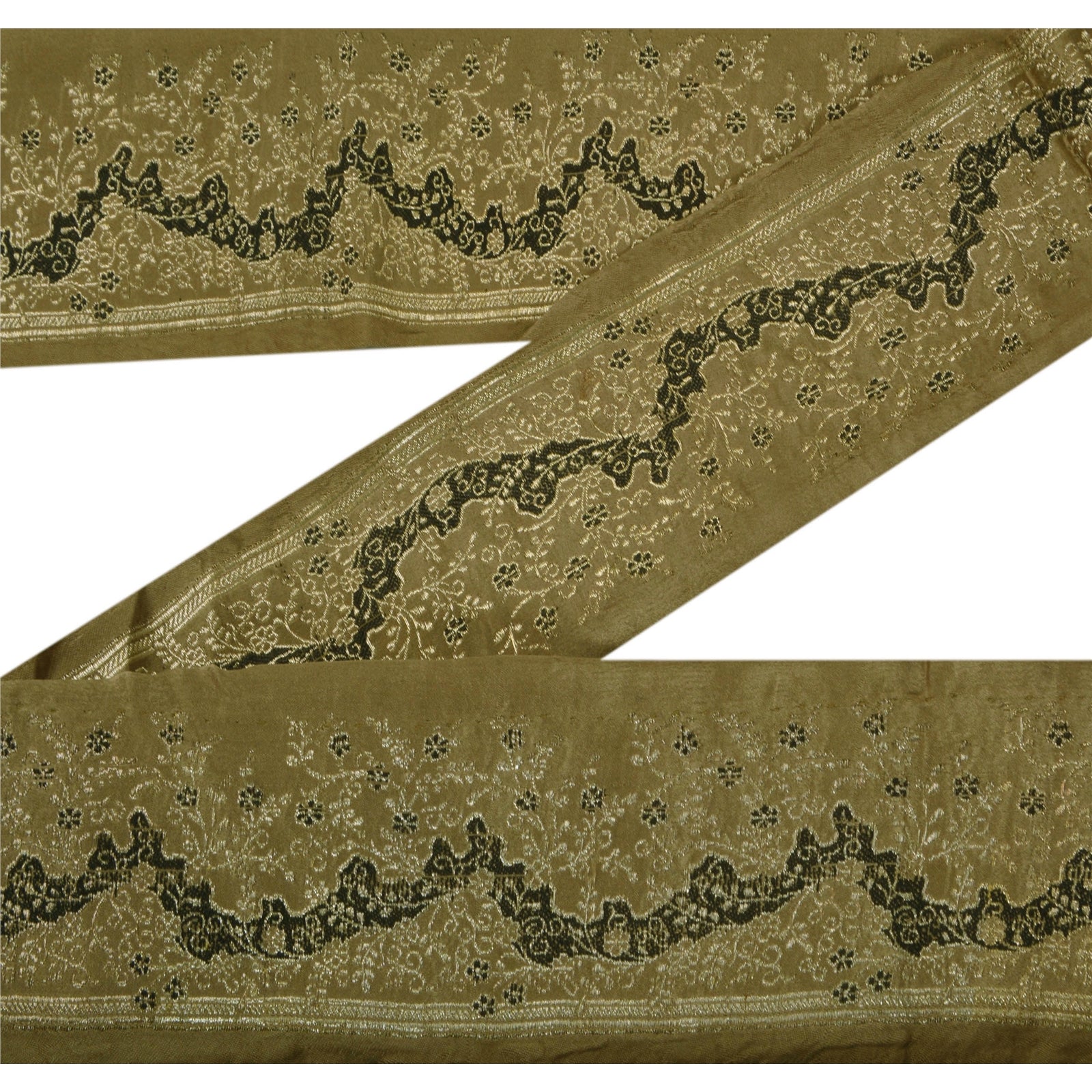 Sanskriti Vintage 1 Yard Trim Sari Border Woven Brocade Craft Sewing Green Lace