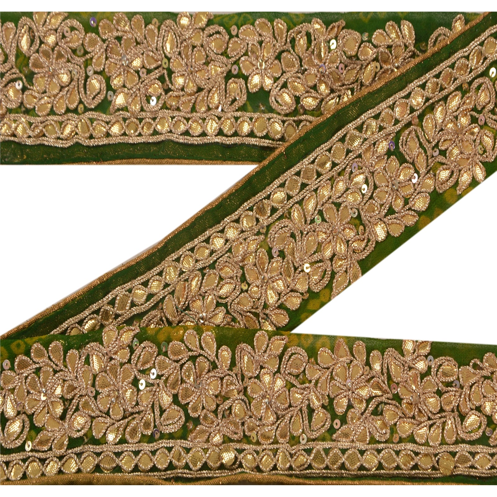 Sanskriti Vintage 1 Yd Sari Border Hand Beaded Bandhani Trim Sewing Green Lace