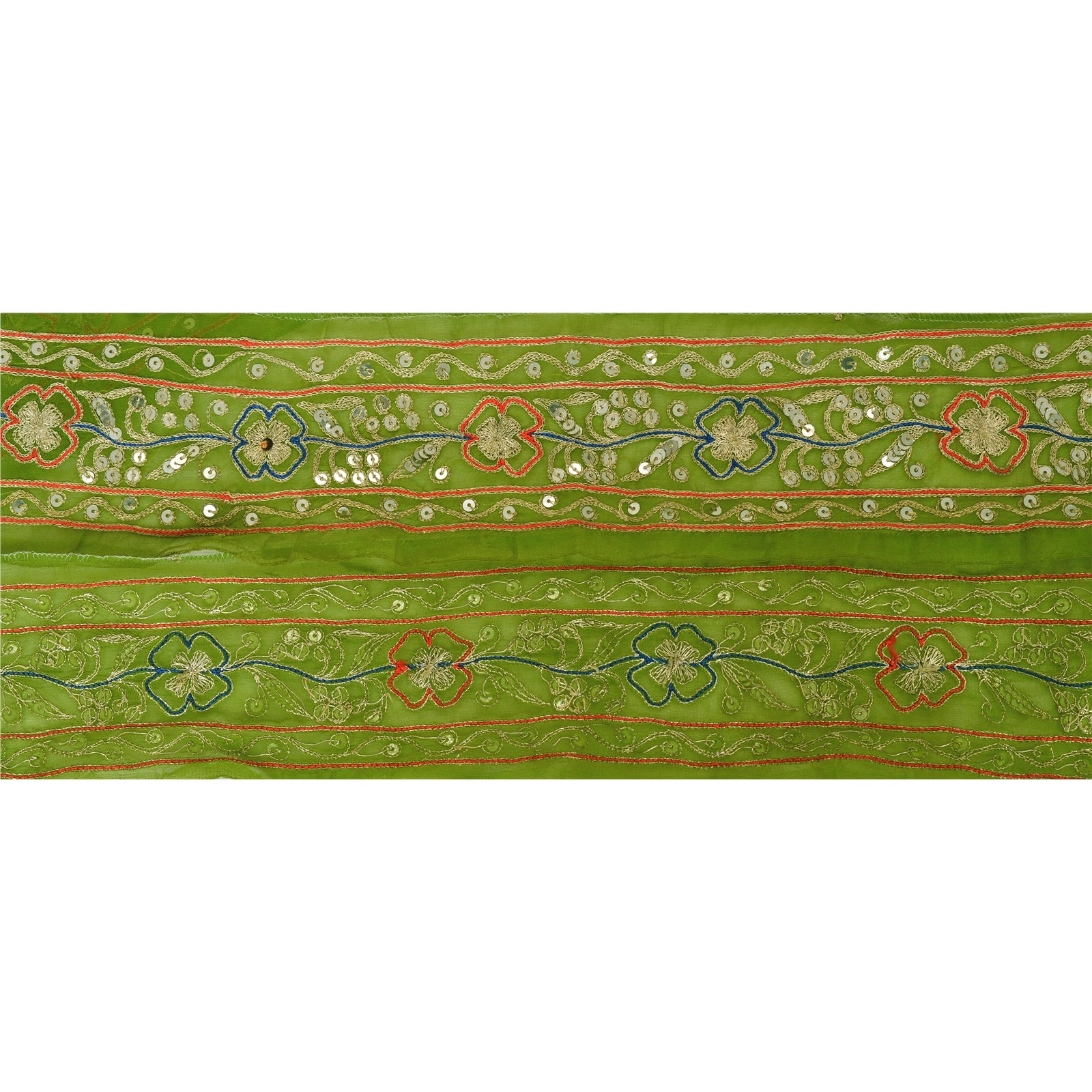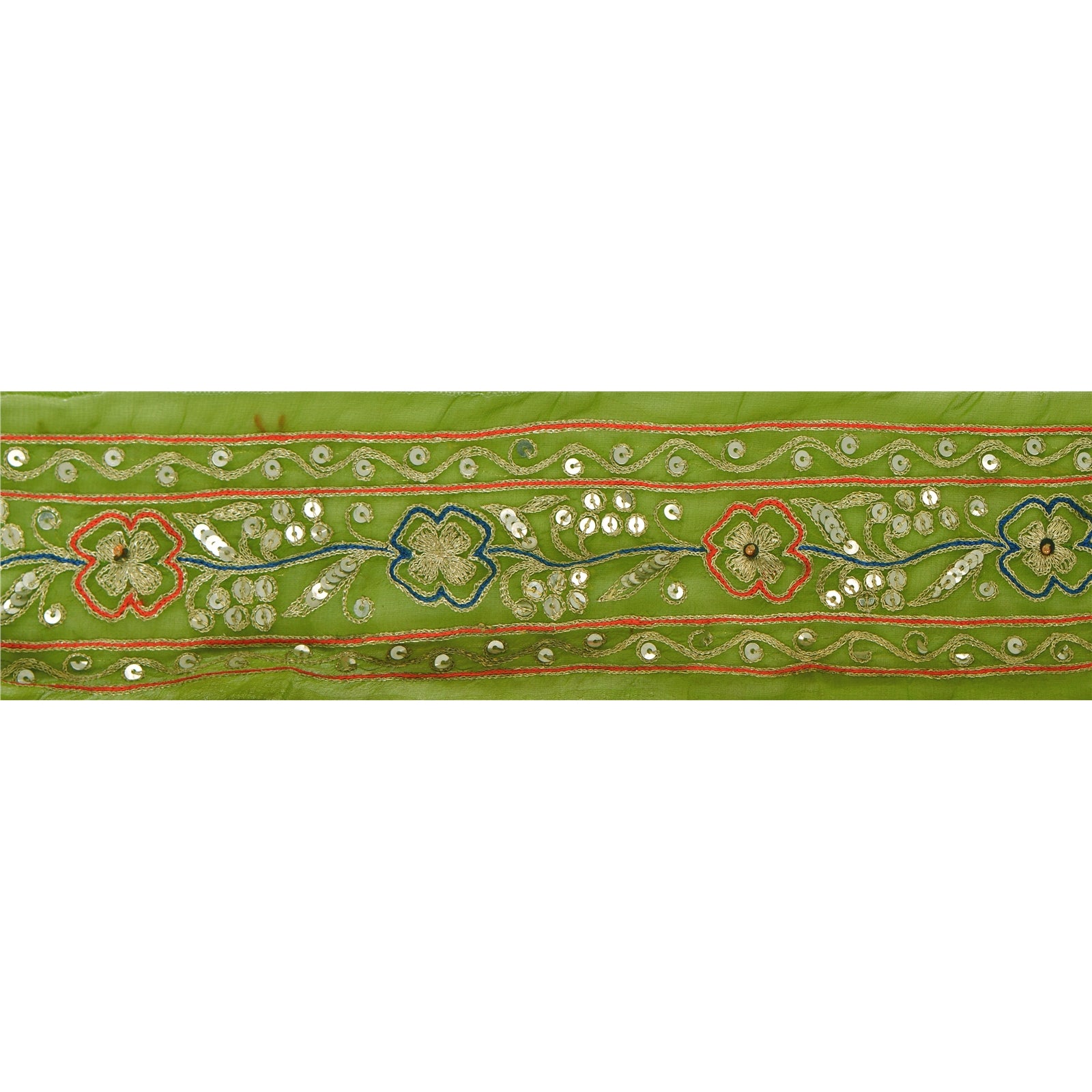 Sanskriti Vintage 1 Yd Sari Border Hand Beaded Craft Trim Sewing Green Lace