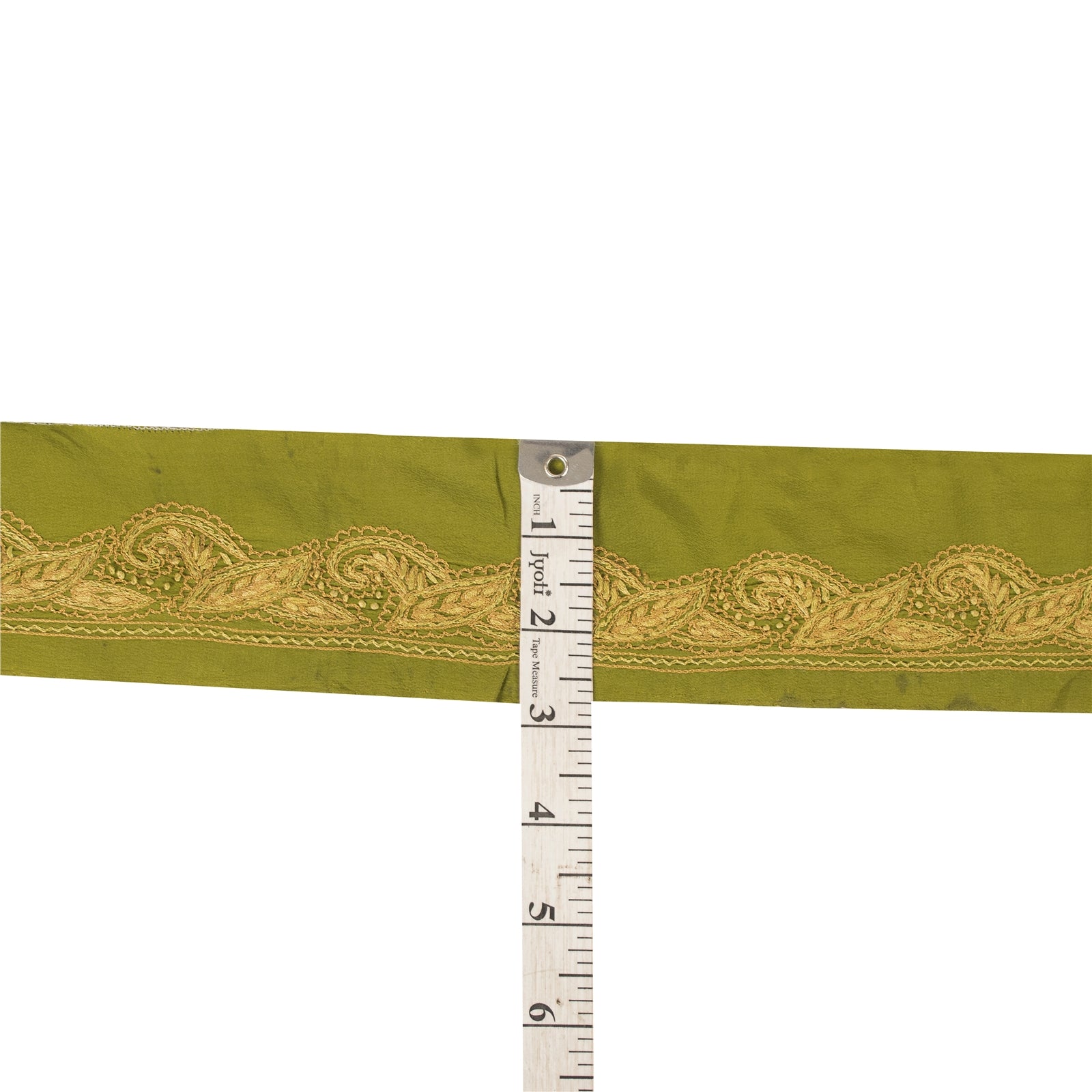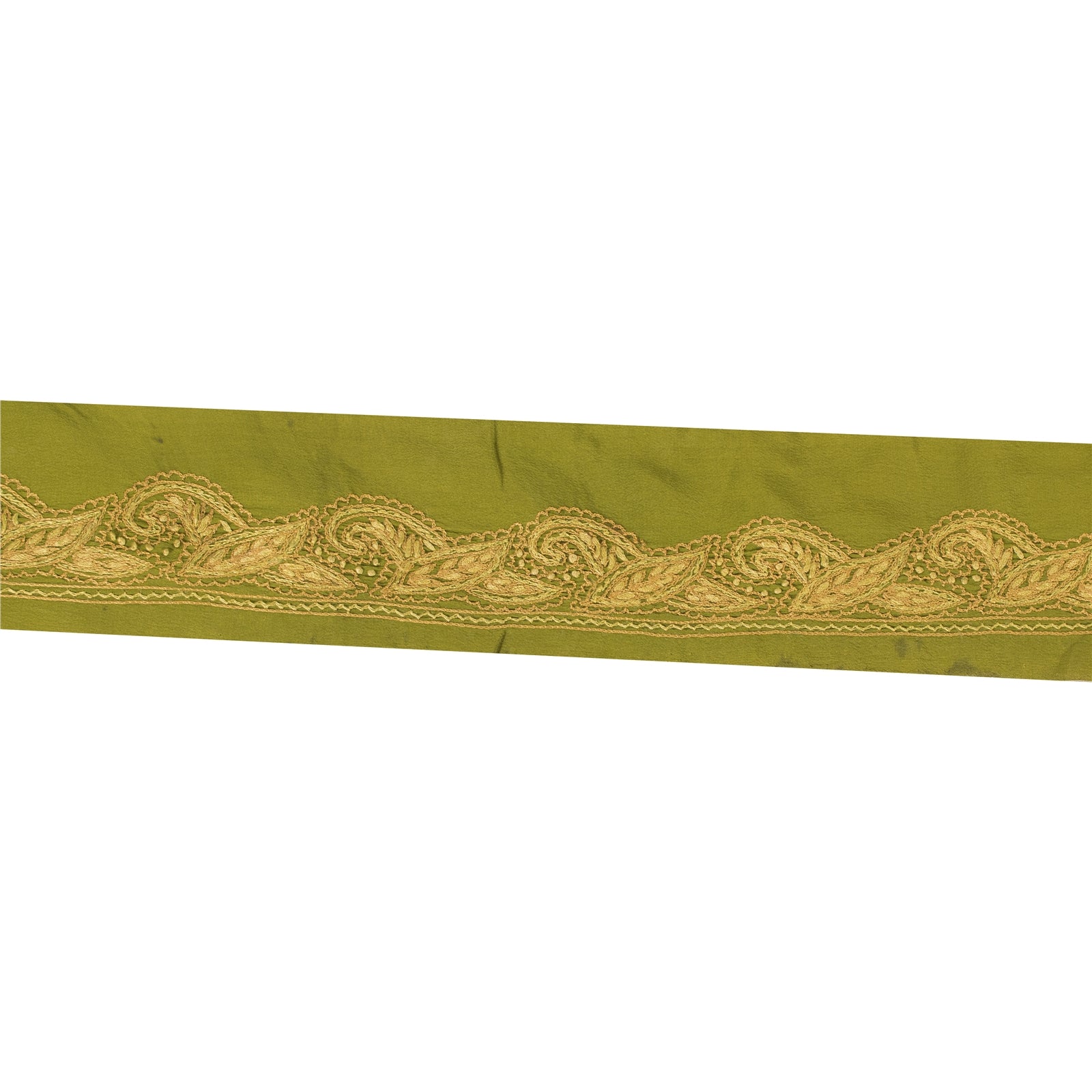 Sanskriti Vintage 1 YD Sari Border Hand Embroidered Craft Trim Ribbon Green Lace