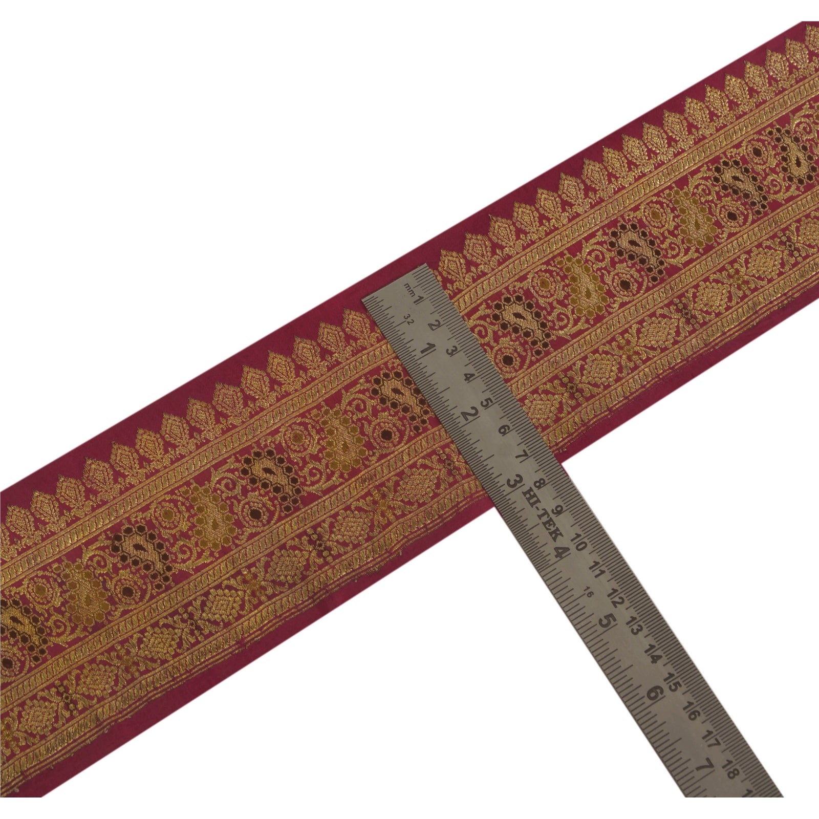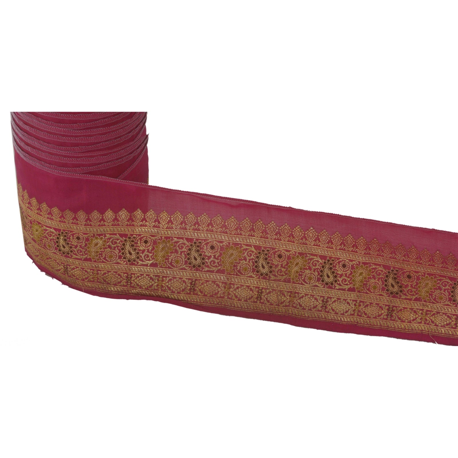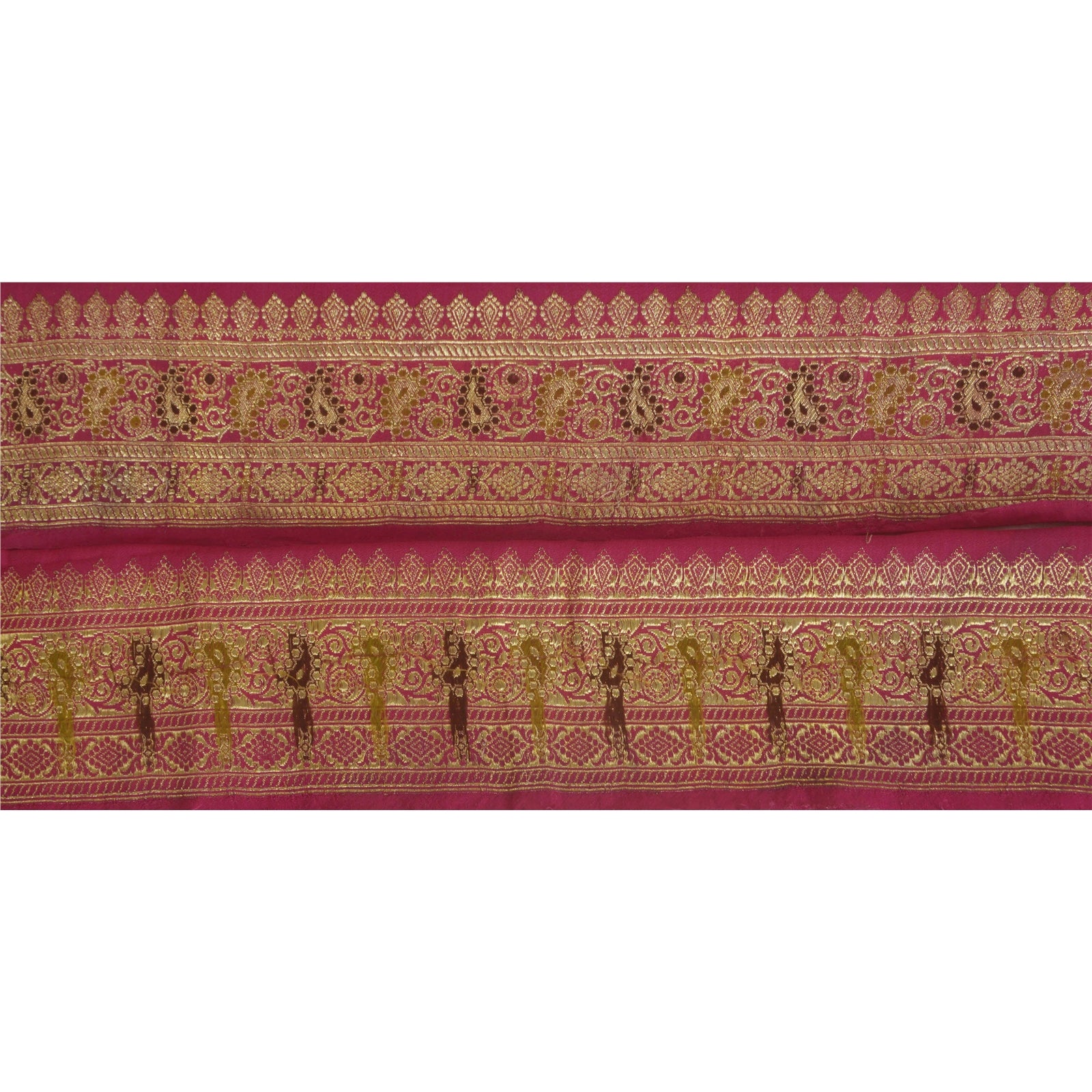 Sanskriti Vintage 1 Yd Trim Sari Border Woven Brocade Craft Sewing Pink Lace