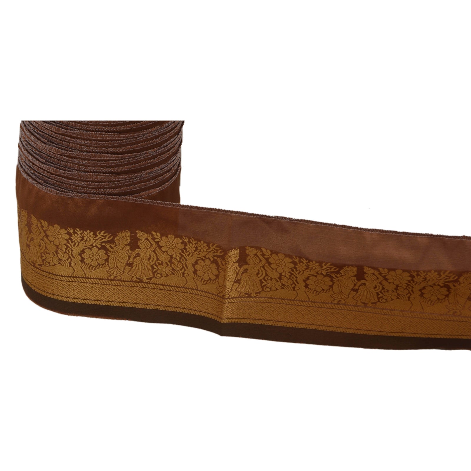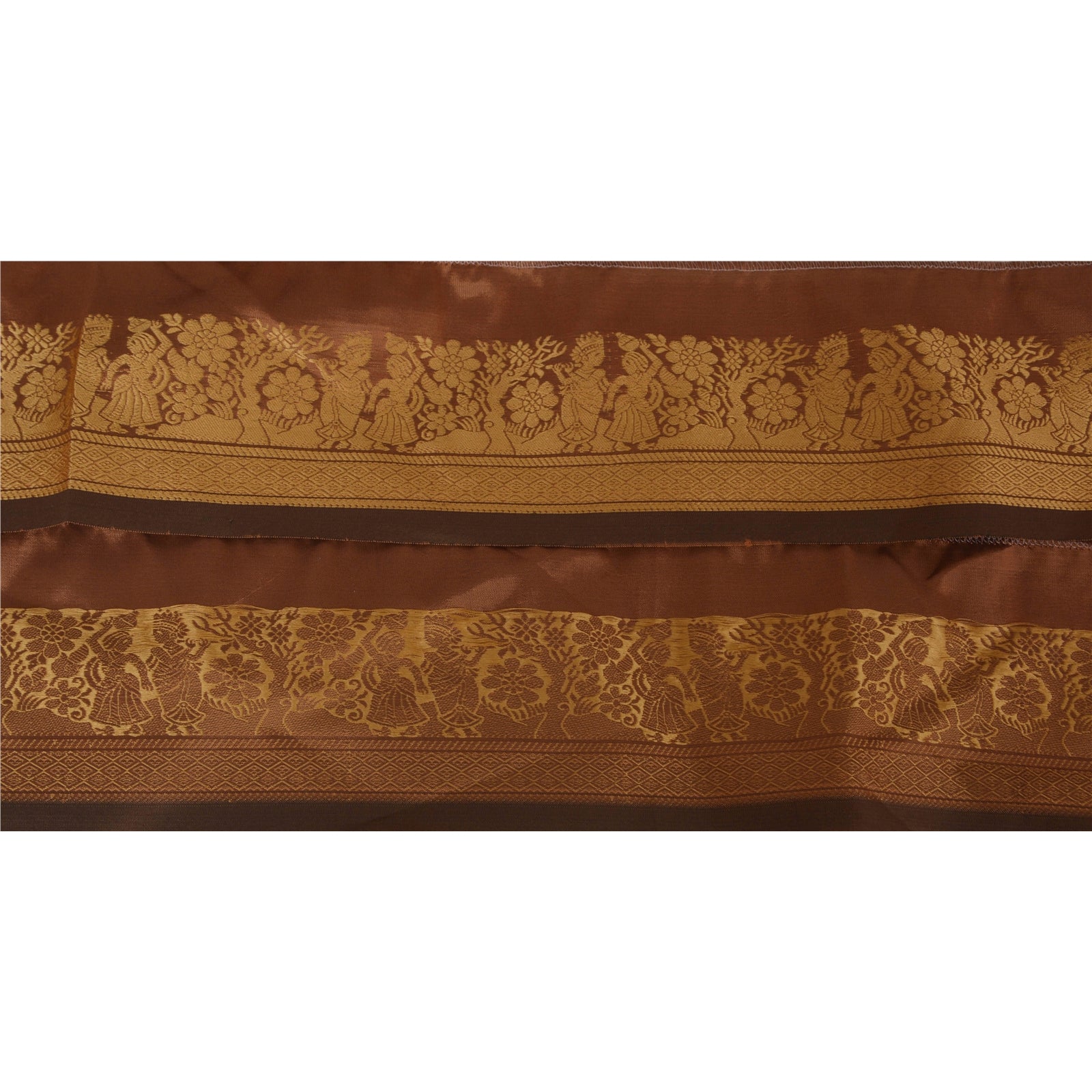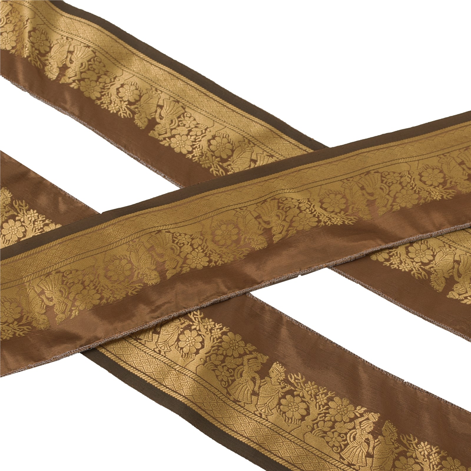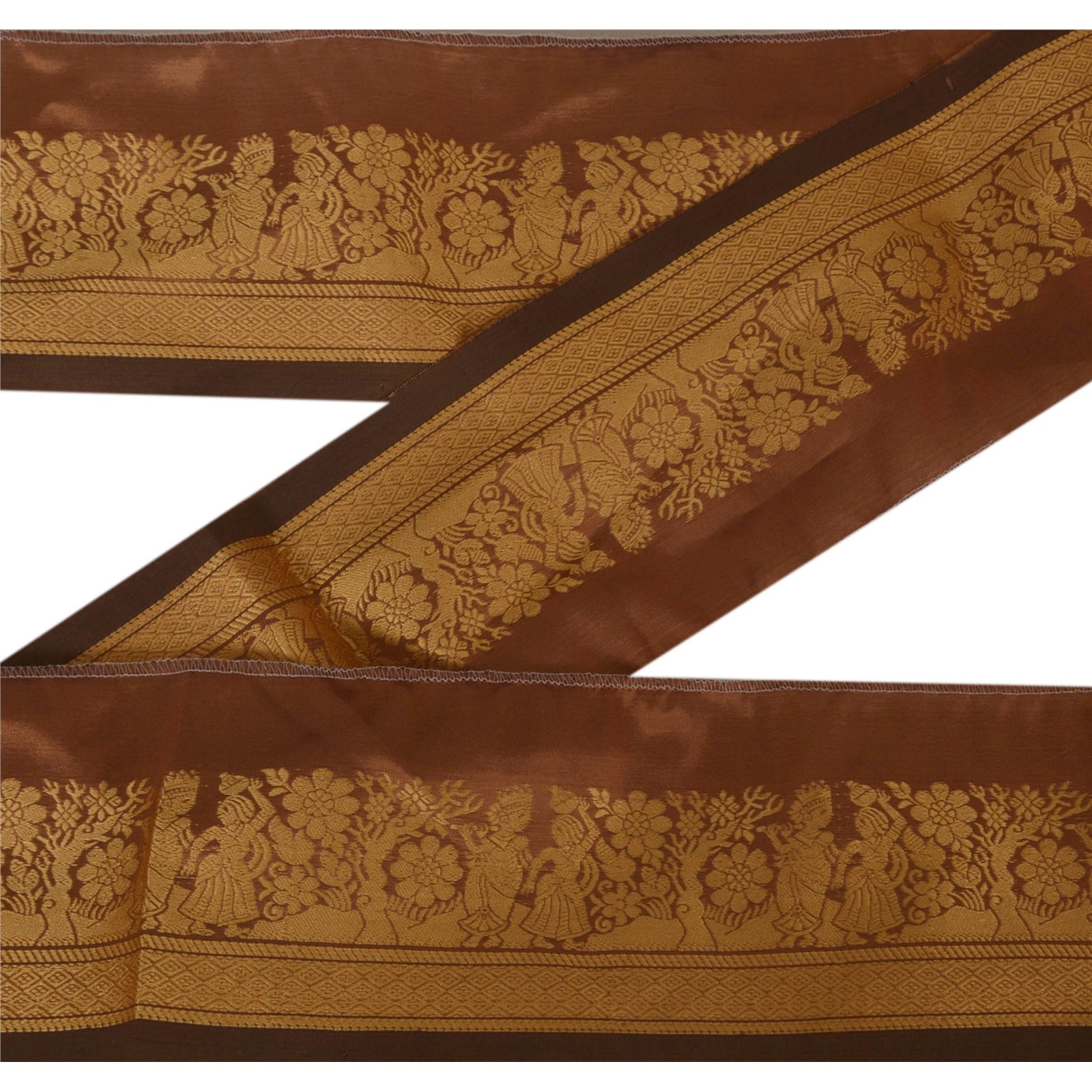 Sanskriti Vintage 1YD Sari Border Baluchari Woven Epic Design Craft Brown Lace