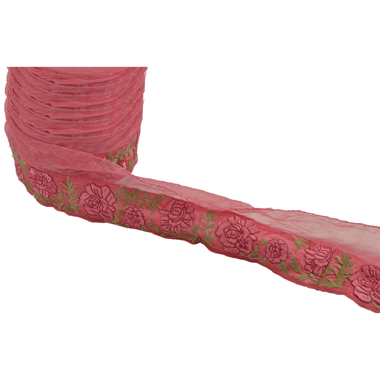 Amazing chiffon silk embroidered sari border in pink color highlighting thread work. Border has beautiful floral patterns painstakingly embroidered with pink, maroon, thread thread work. WOW!! an awesome one of a kind versatile border. 1 Quantity = 1 Yard