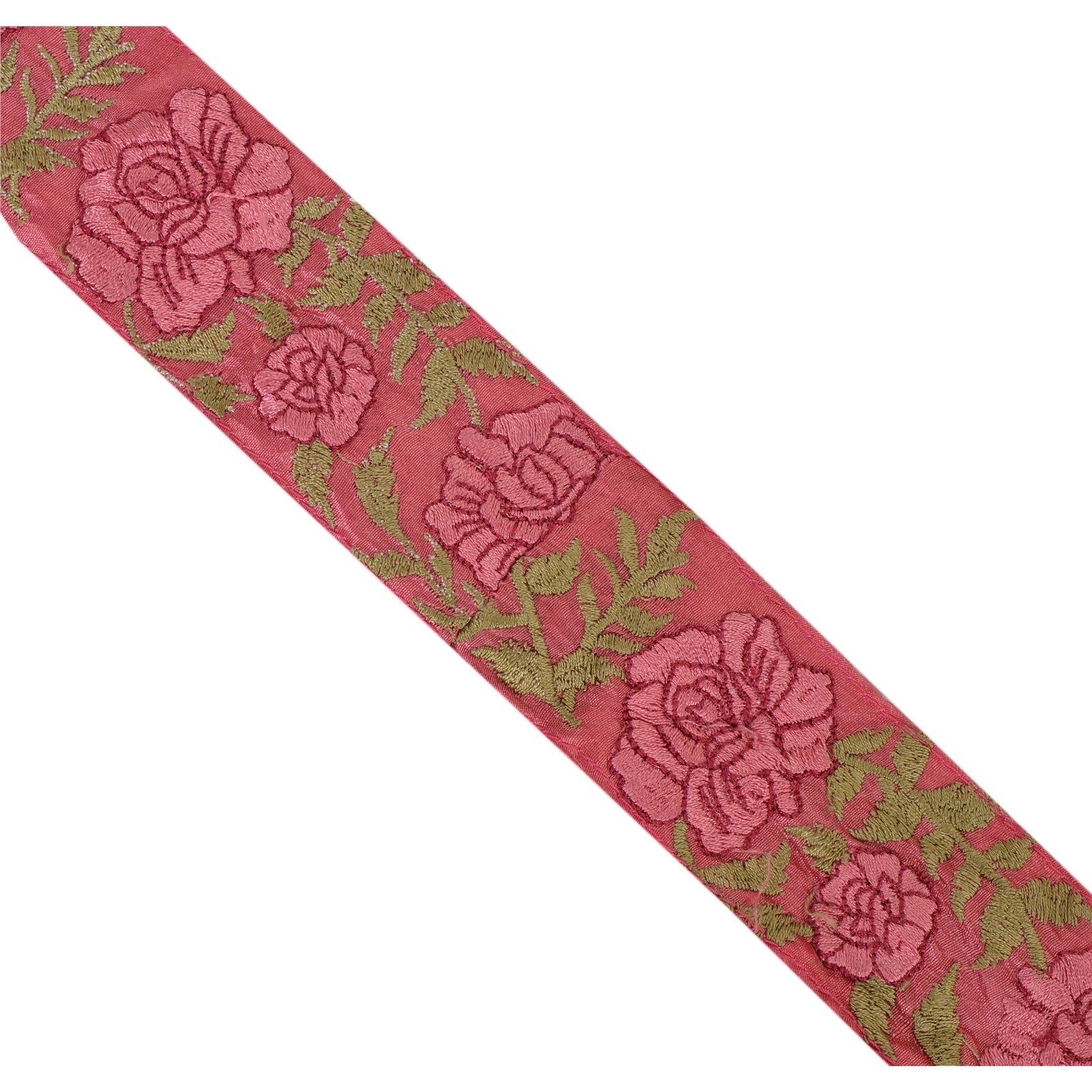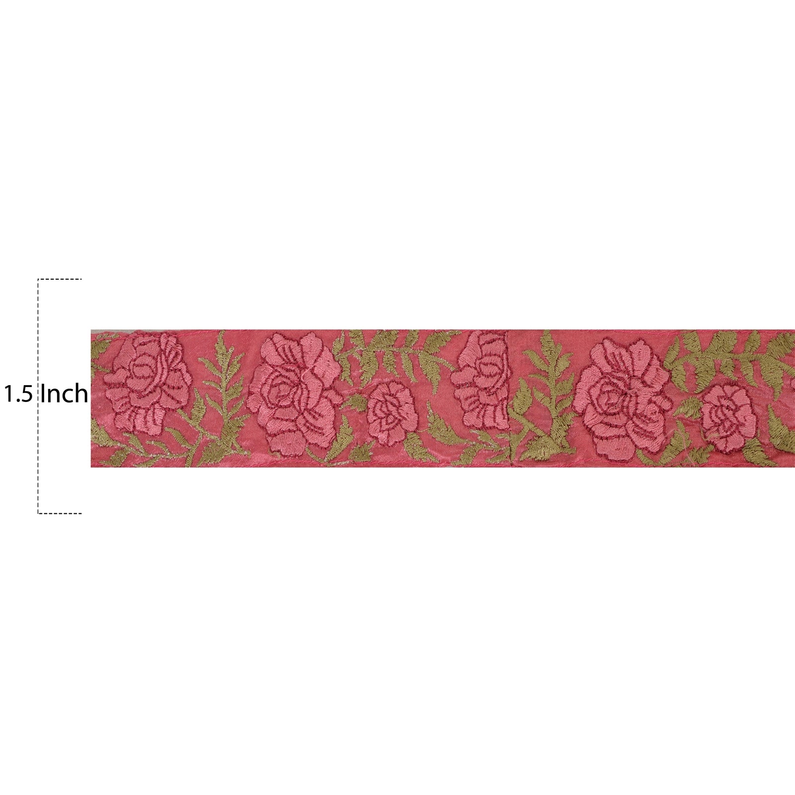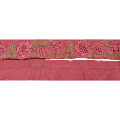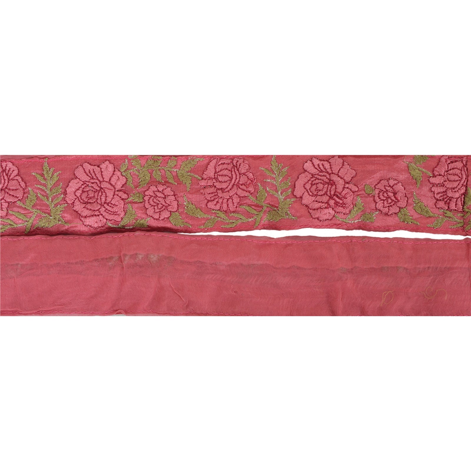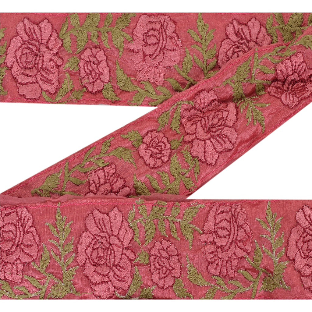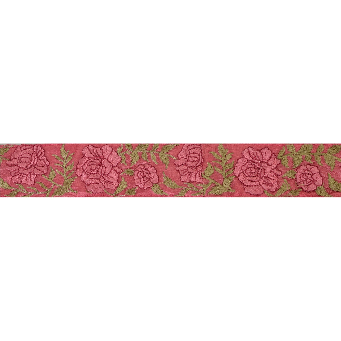 Sanskriti Vintage 1Yd Sari Border Embroidered Indian Trim Ribbon Pink Craft Lace