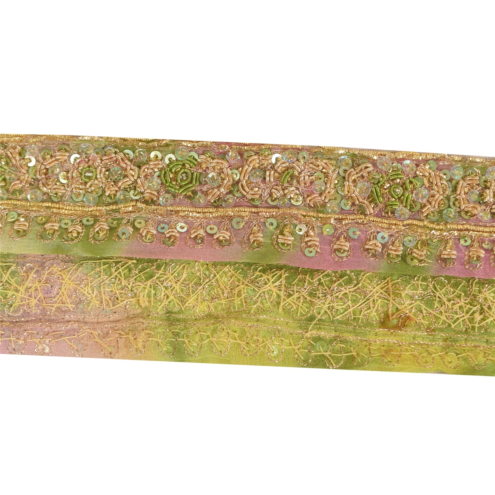 Sanskriti Vintage 1YD Sari Border Hand Beaded ZardoziTrim Sewing Craft Pink Lace