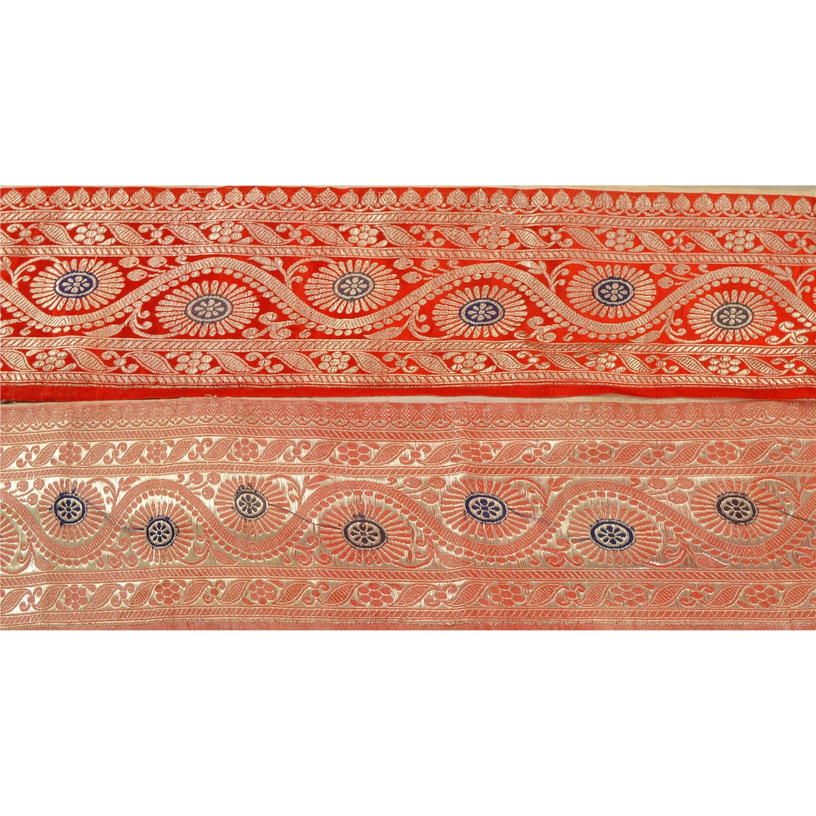 Sanskriti Vintage 1 Yd Trim Red Sari Border Woven Brocade Craft Sewing Zari Lace