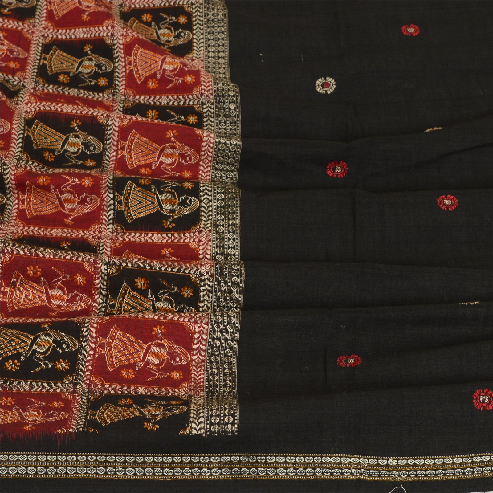 Sanskriti Vintage Black Blend Cotton Dupatta Long Stole Woven Baluchari Scarves
