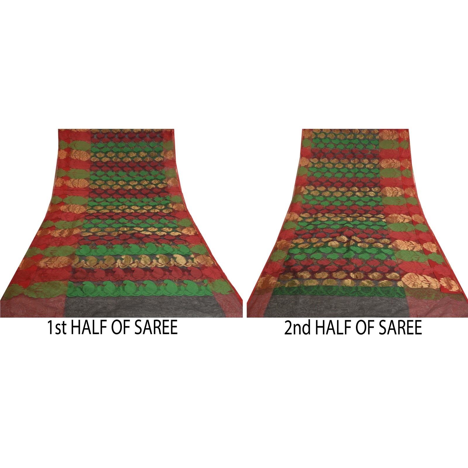 THE ITEM COLOR OR SHADE MAY BE DARKER OR LIGHTER THAN THE PICTURE.' Beautiful black colored net mesh hand -woven sari. Pallu & border has woven thread work with paisley & floral design which is embellished with golden zari work. The center of the saree has similar woven thread & zari paisley design. This saree can be used for various crafting ideas too. Use it for dress designing, as a throw, as window dressing, upholstery, table linen and much more. Let your creative juices flow. 'International buyers please note: Import duties, taxes, and charges are not included in the item price or postage cost. These charges are the buyer's responsibility. Please check with your country's customs office to determine what these additional costs will be prior to bidding or buying. Buyer will pay custom duty/tax. It is calculated and charged differently by every country. As a seller I do not have any control over it. VAT or sales tax is calculated by the platform at the time of checkout. Customs charge is payable at the time of delivery.'