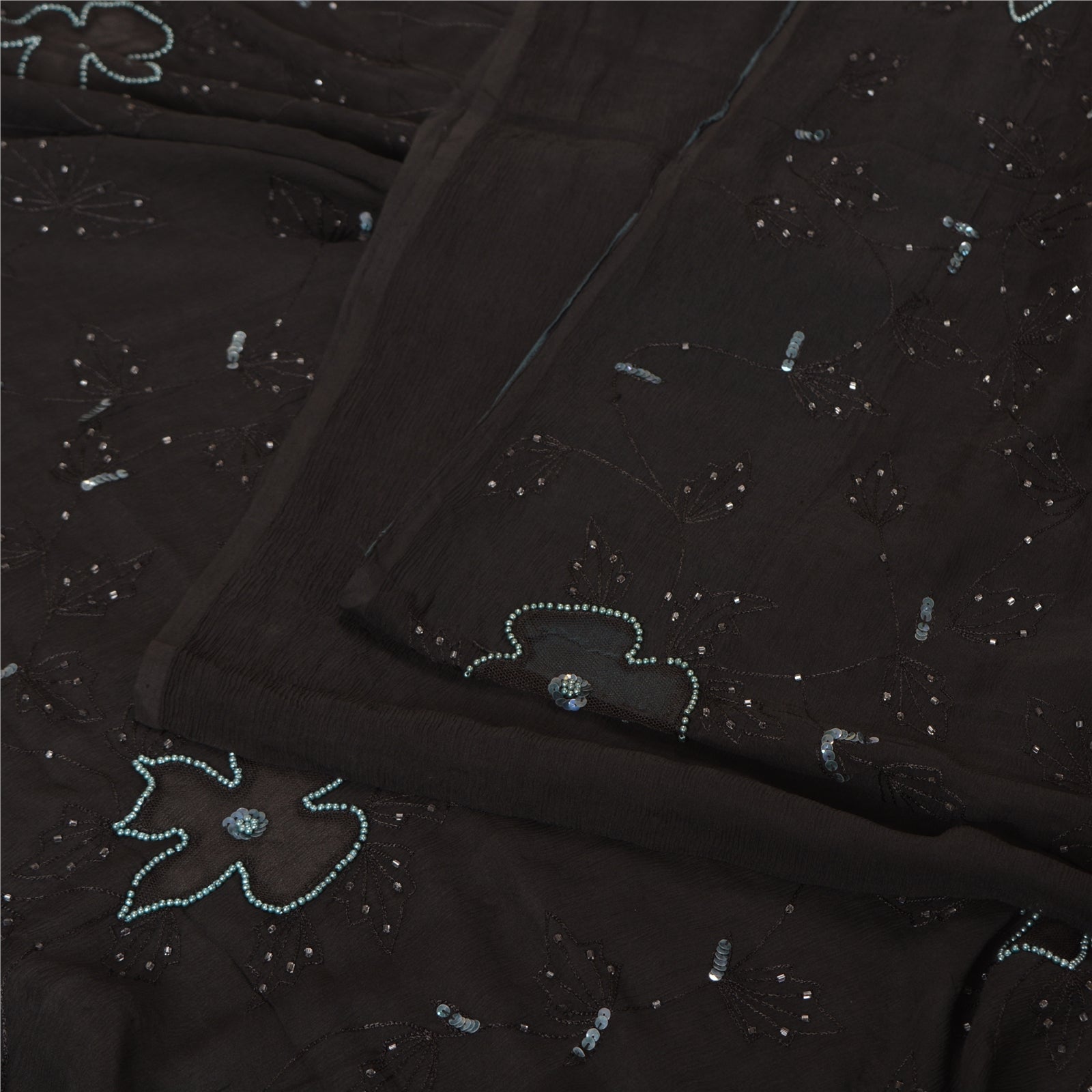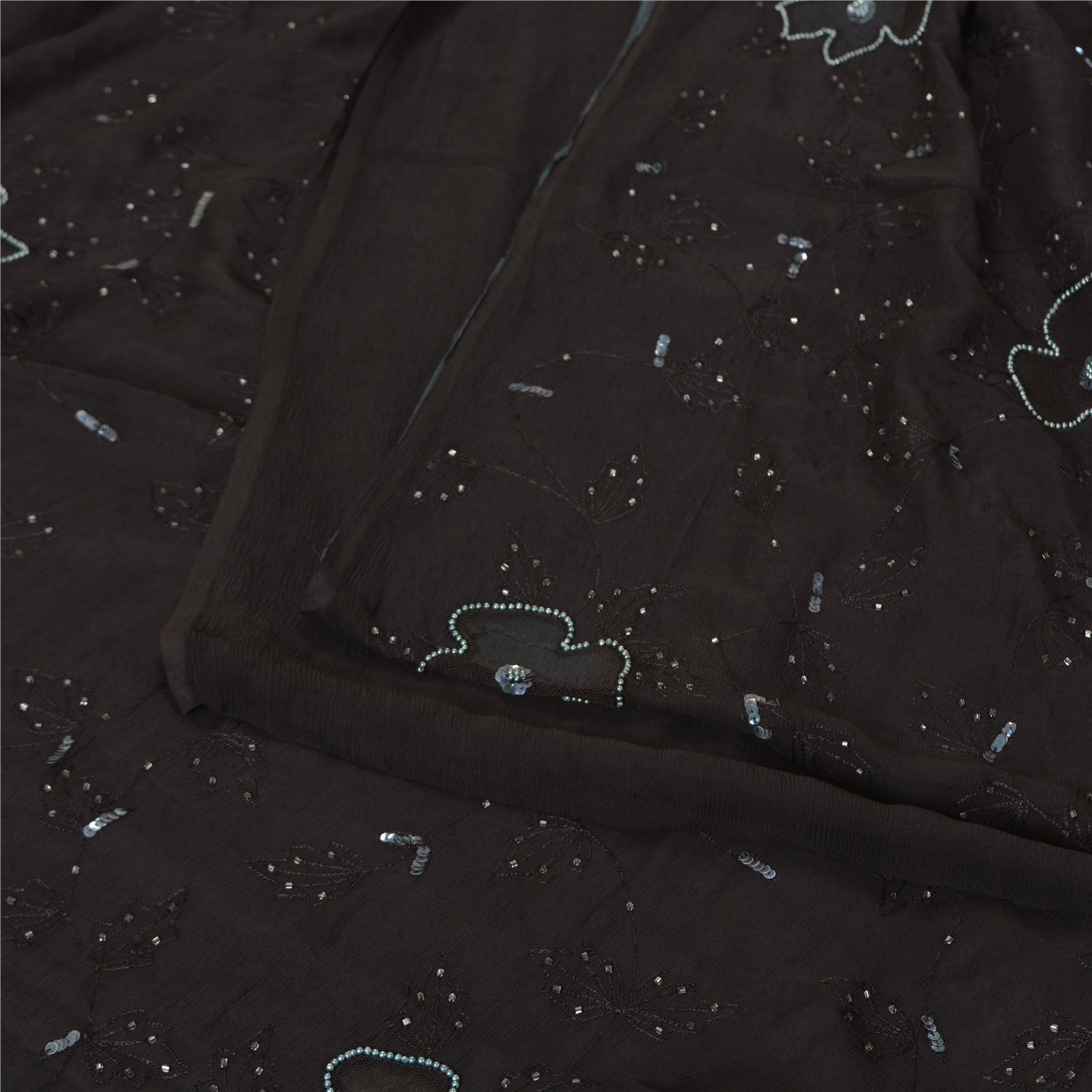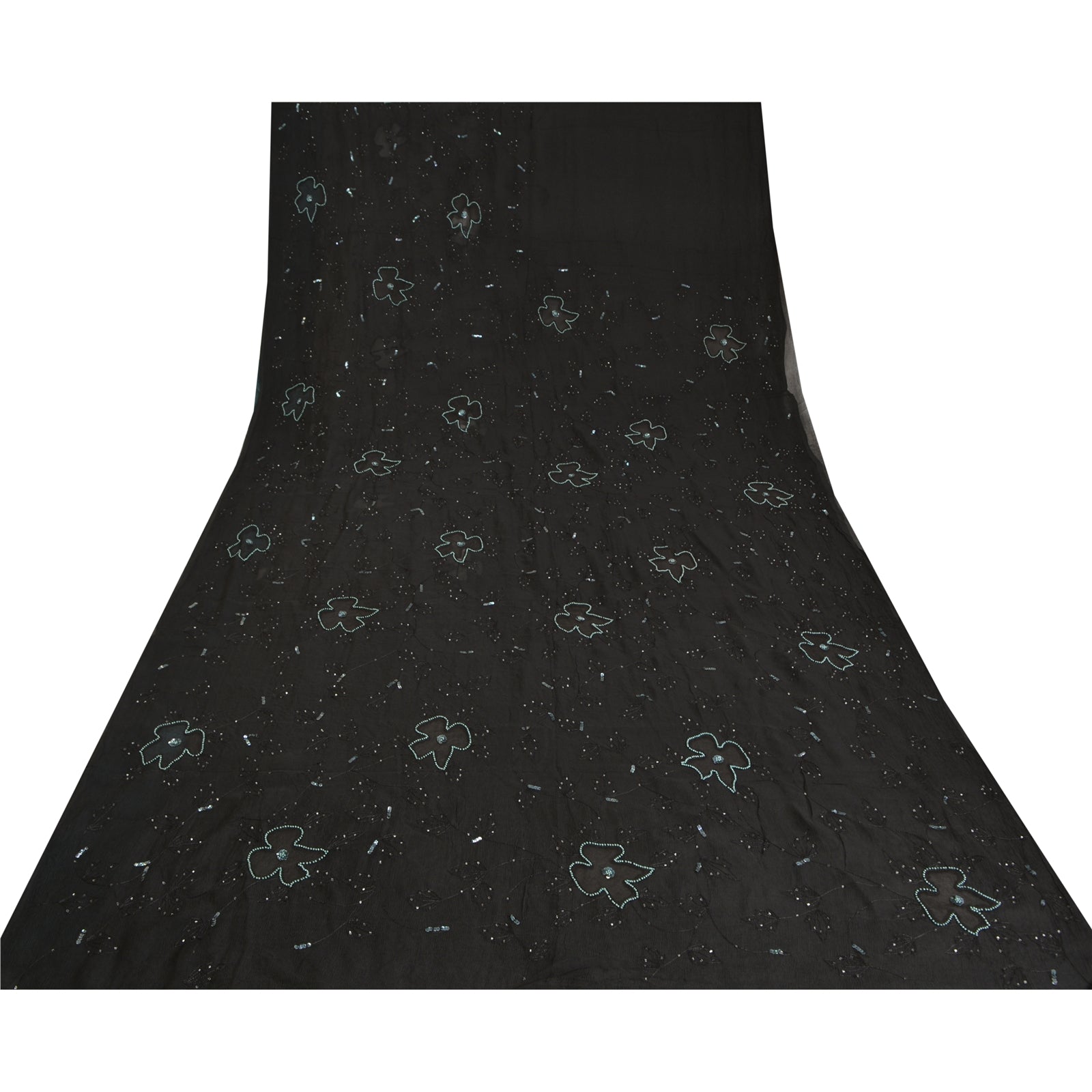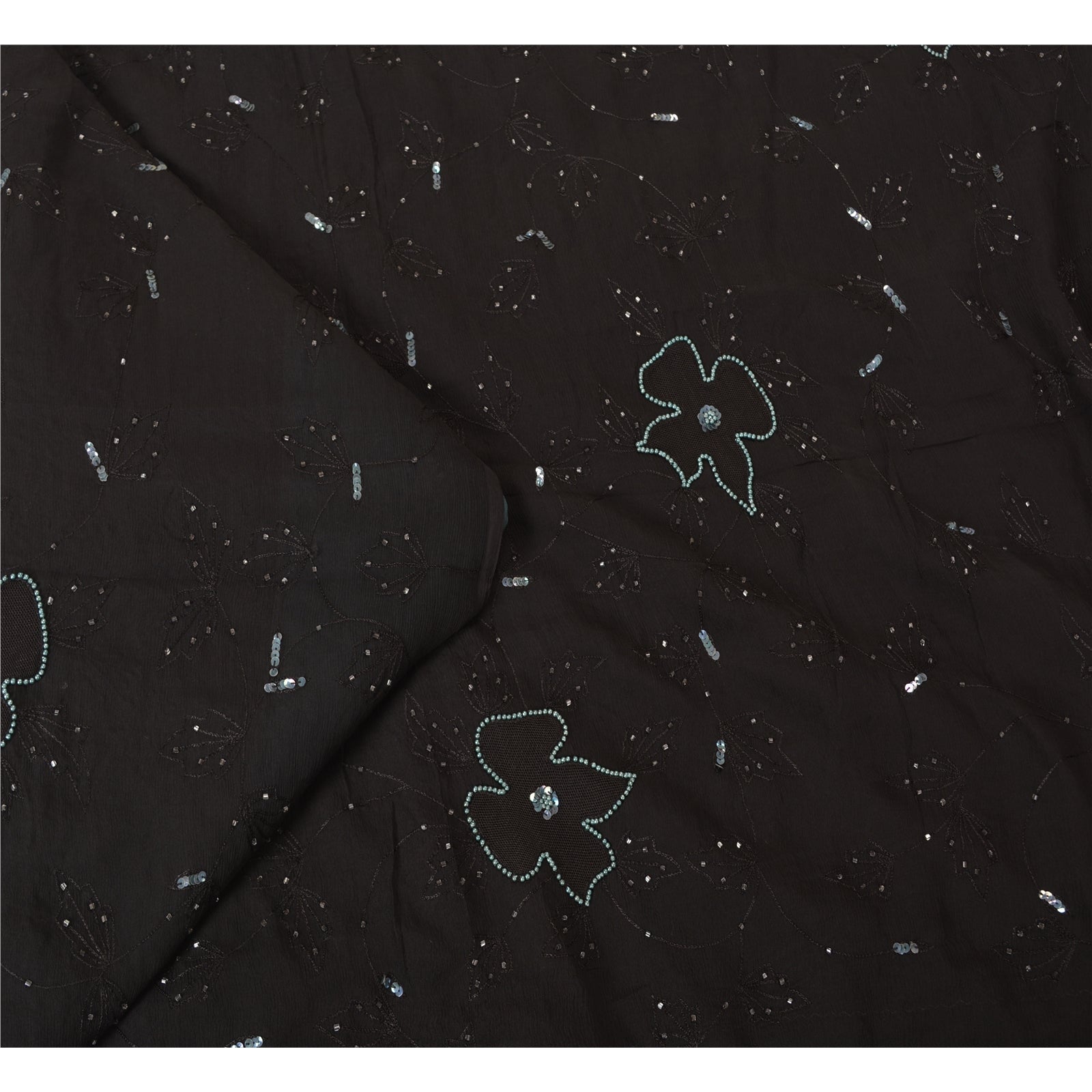 THE ITEM COLOR OR SHADE MAY BE DARKER OR LIGHTER THAN THE PICTURE.' Outstanding black colored pure chiffon silk hand embroidered saree. All over sari has floral design embroidered black thread work embellished with white glass beads, green sequins & pearl like beads work. This saree can be used for various crafting ideas too. Use it for dress designing, as a throw, as window dressing, upholstery, table linen and much more. Let your creative juices flow! 'International buyers please note: Import duties, taxes, and charges are not included in the item price or postage cost. These charges are the buyer's responsibility. Please check with your country's customs office to determine what these additional costs will be prior to bidding or buying. Buyer will pay custom duty/tax. It is calculated and charged differently by every country. As a seller I do not have any control over it. VAT or sales tax is calculated by the platform at the time of checkout. Customs charge is payable at the time of delivery.