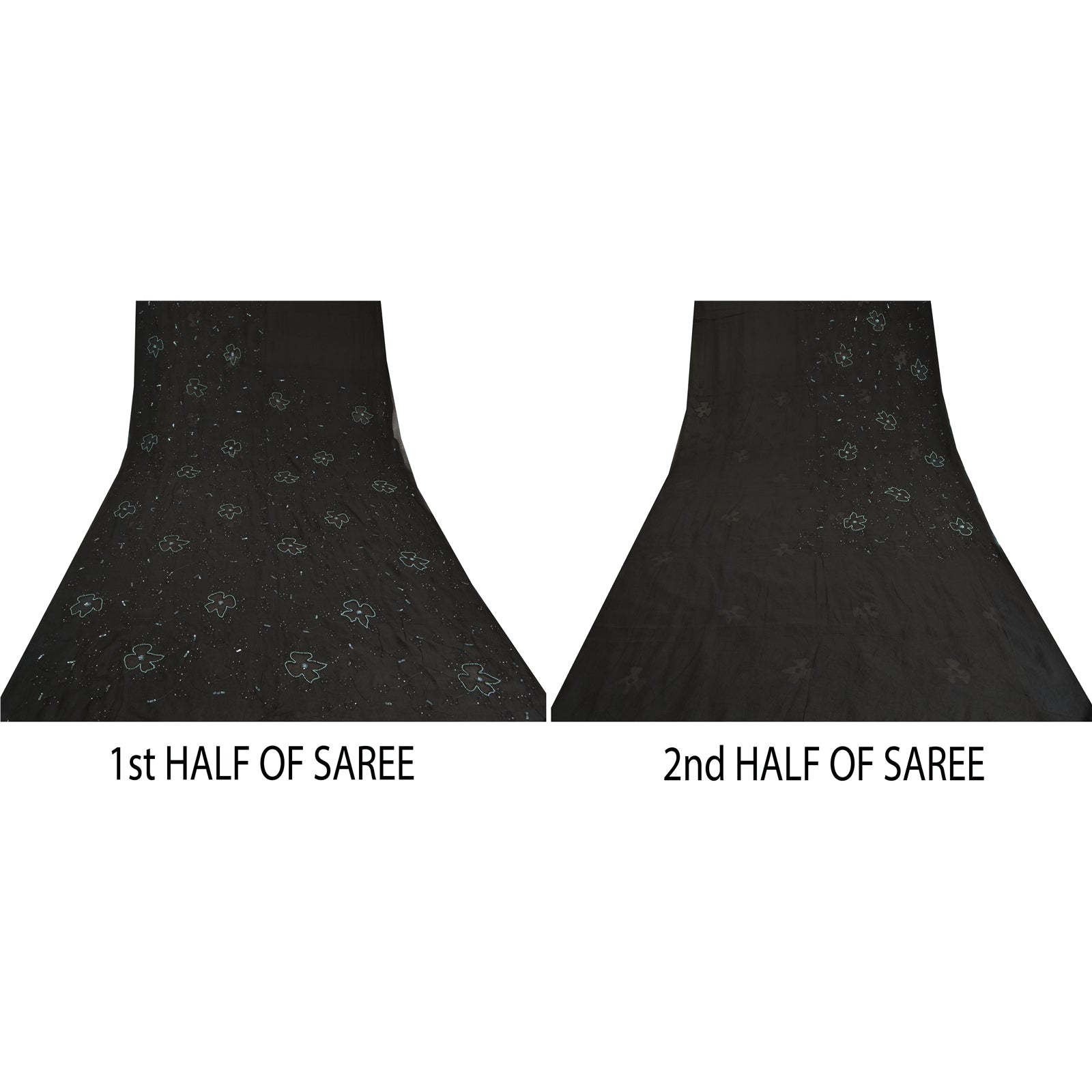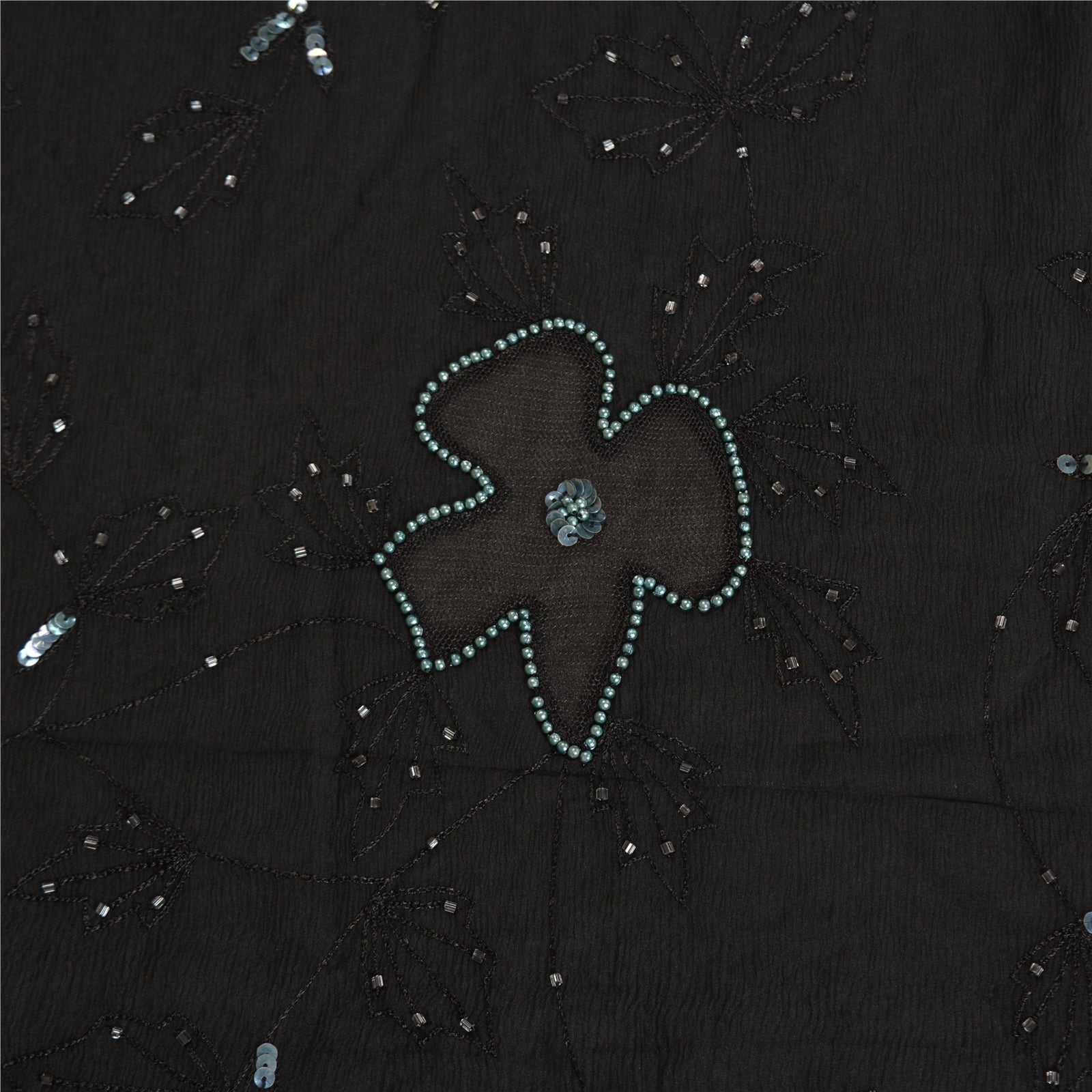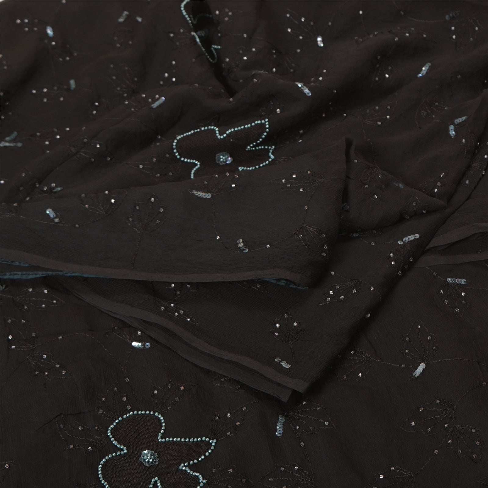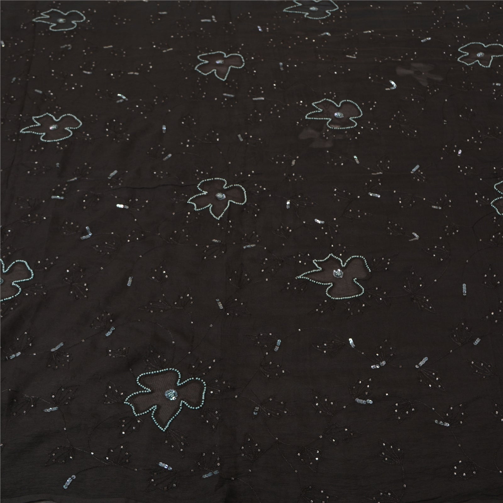 THE ITEM COLOR OR SHADE MAY BE DARKER OR LIGHTER THAN THE PICTURE.' Outstanding black colored pure chiffon silk hand embroidered saree. All over sari has floral design embroidered black thread work embellished with white glass beads, green sequins & pearl like beads work. This saree can be used for various crafting ideas too. Use it for dress designing, as a throw, as window dressing, upholstery, table linen and much more. Let your creative juices flow! 'International buyers please note: Import duties, taxes, and charges are not included in the item price or postage cost. These charges are the buyer's responsibility. Please check with your country's customs office to determine what these additional costs will be prior to bidding or buying. Buyer will pay custom duty/tax. It is calculated and charged differently by every country. As a seller I do not have any control over it. VAT or sales tax is calculated by the platform at the time of checkout. Customs charge is payable at the time of delivery.