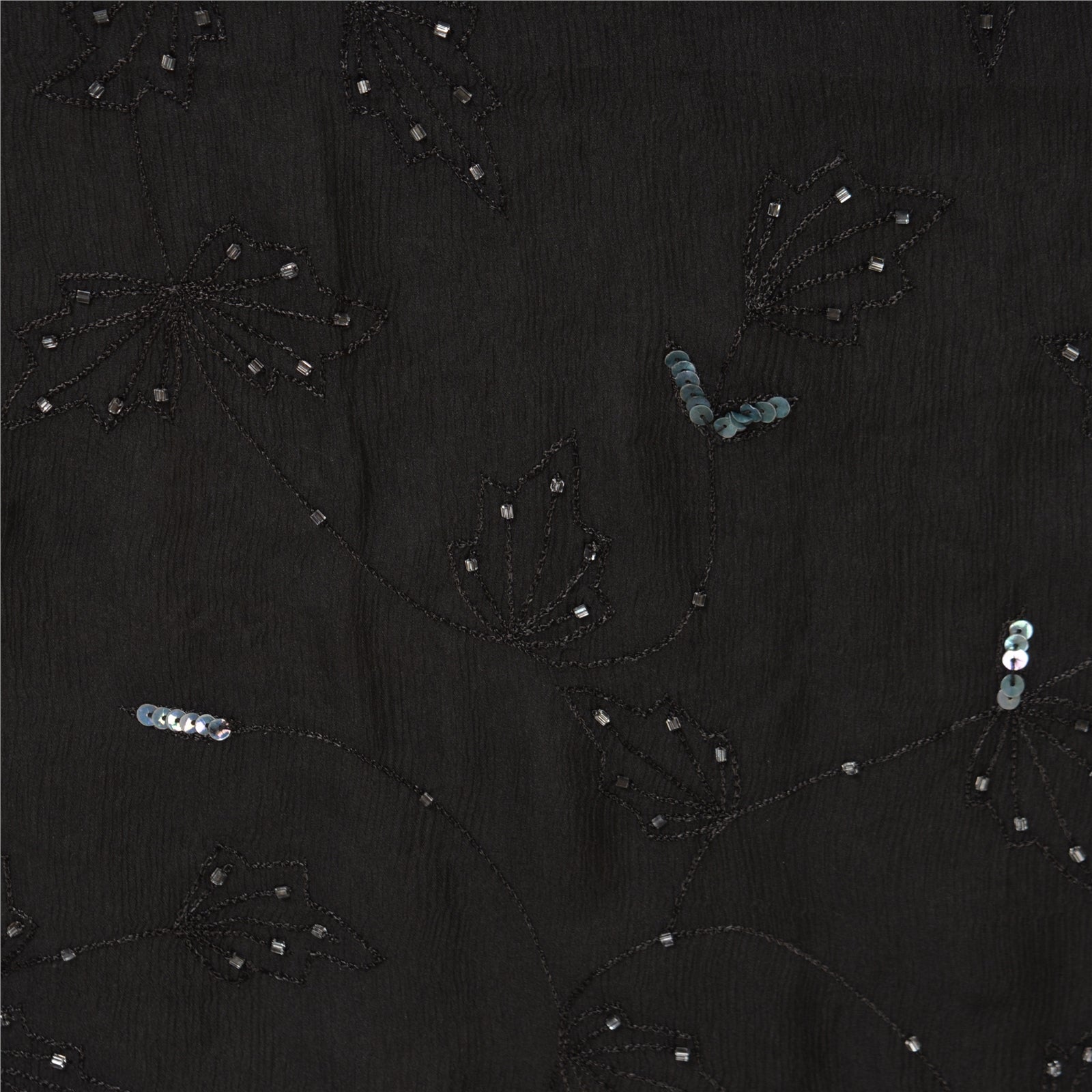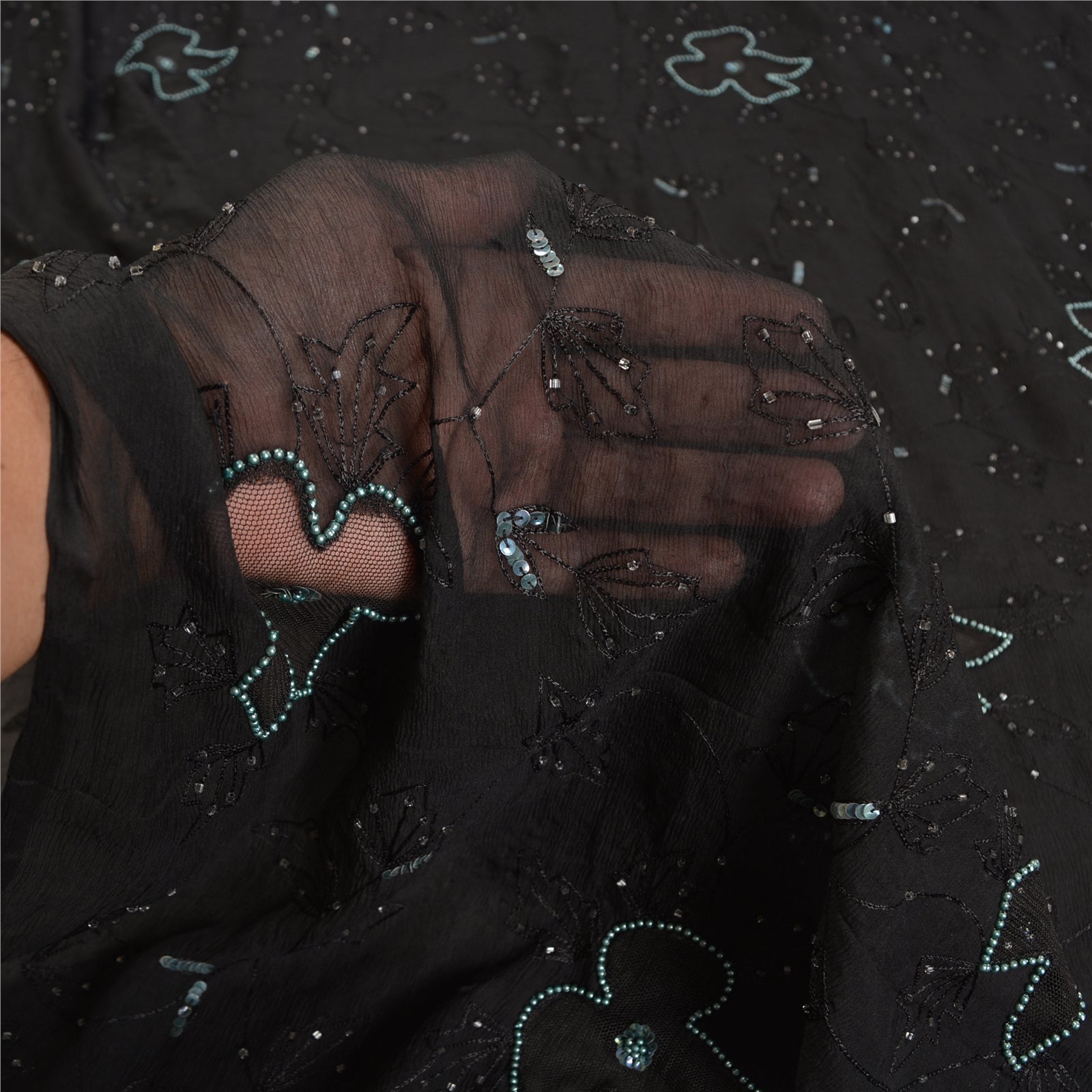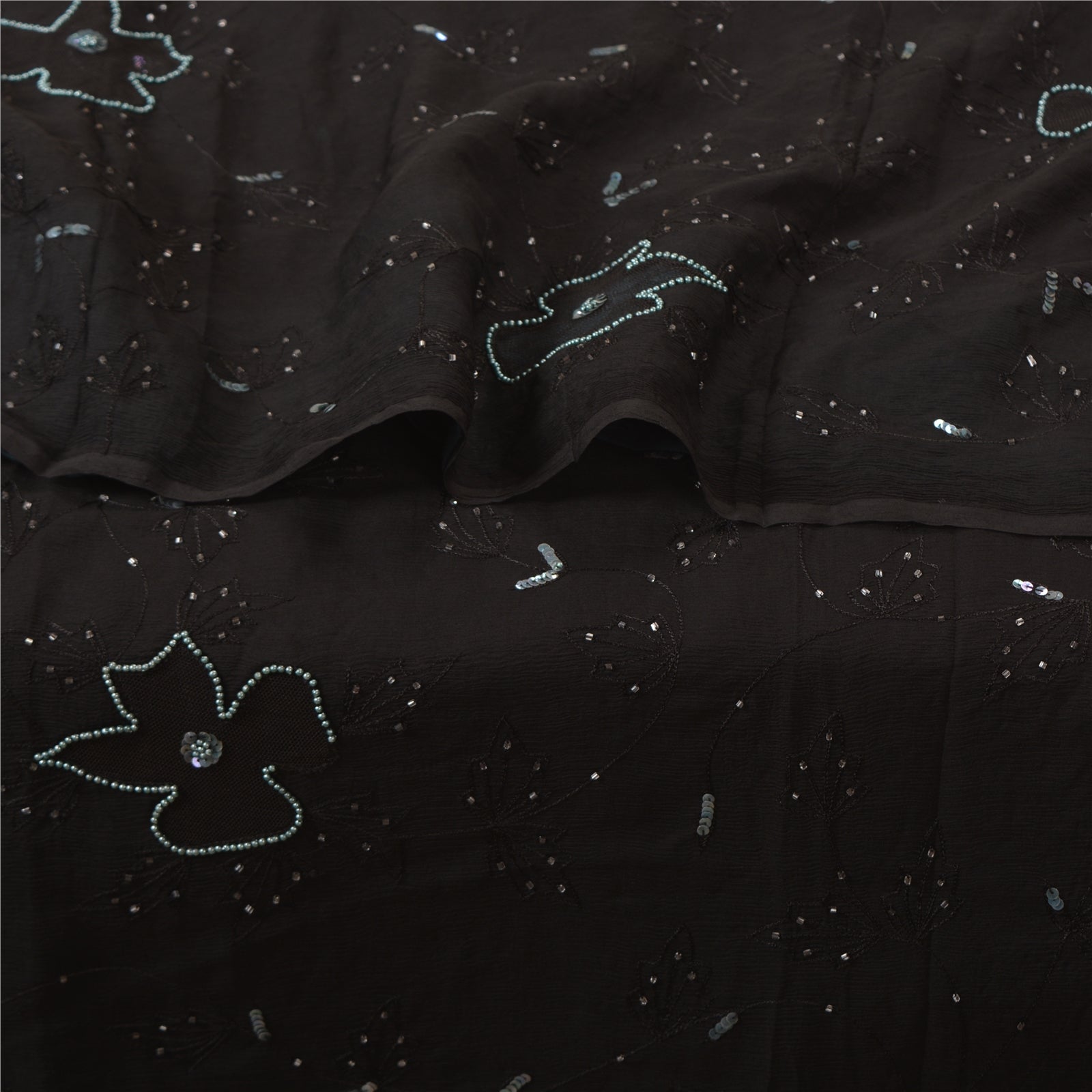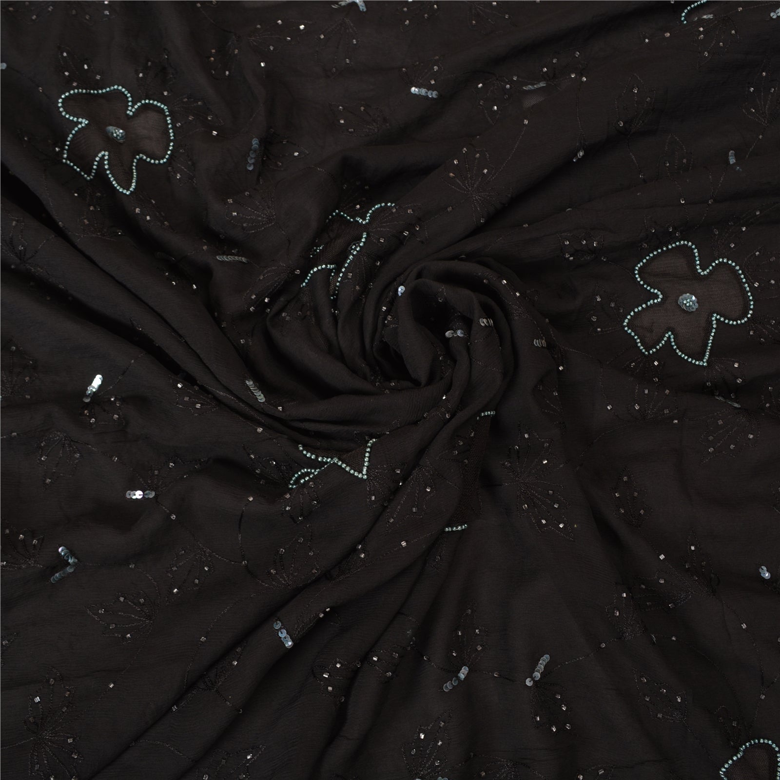 THE ITEM COLOR OR SHADE MAY BE DARKER OR LIGHTER THAN THE PICTURE.' Outstanding black colored pure chiffon silk hand embroidered saree. All over sari has floral design embroidered black thread work embellished with white glass beads, green sequins & pearl like beads work. This saree can be used for various crafting ideas too. Use it for dress designing, as a throw, as window dressing, upholstery, table linen and much more. Let your creative juices flow! 'International buyers please note: Import duties, taxes, and charges are not included in the item price or postage cost. These charges are the buyer's responsibility. Please check with your country's customs office to determine what these additional costs will be prior to bidding or buying. Buyer will pay custom duty/tax. It is calculated and charged differently by every country. As a seller I do not have any control over it. VAT or sales tax is calculated by the platform at the time of checkout. Customs charge is payable at the time of delivery.