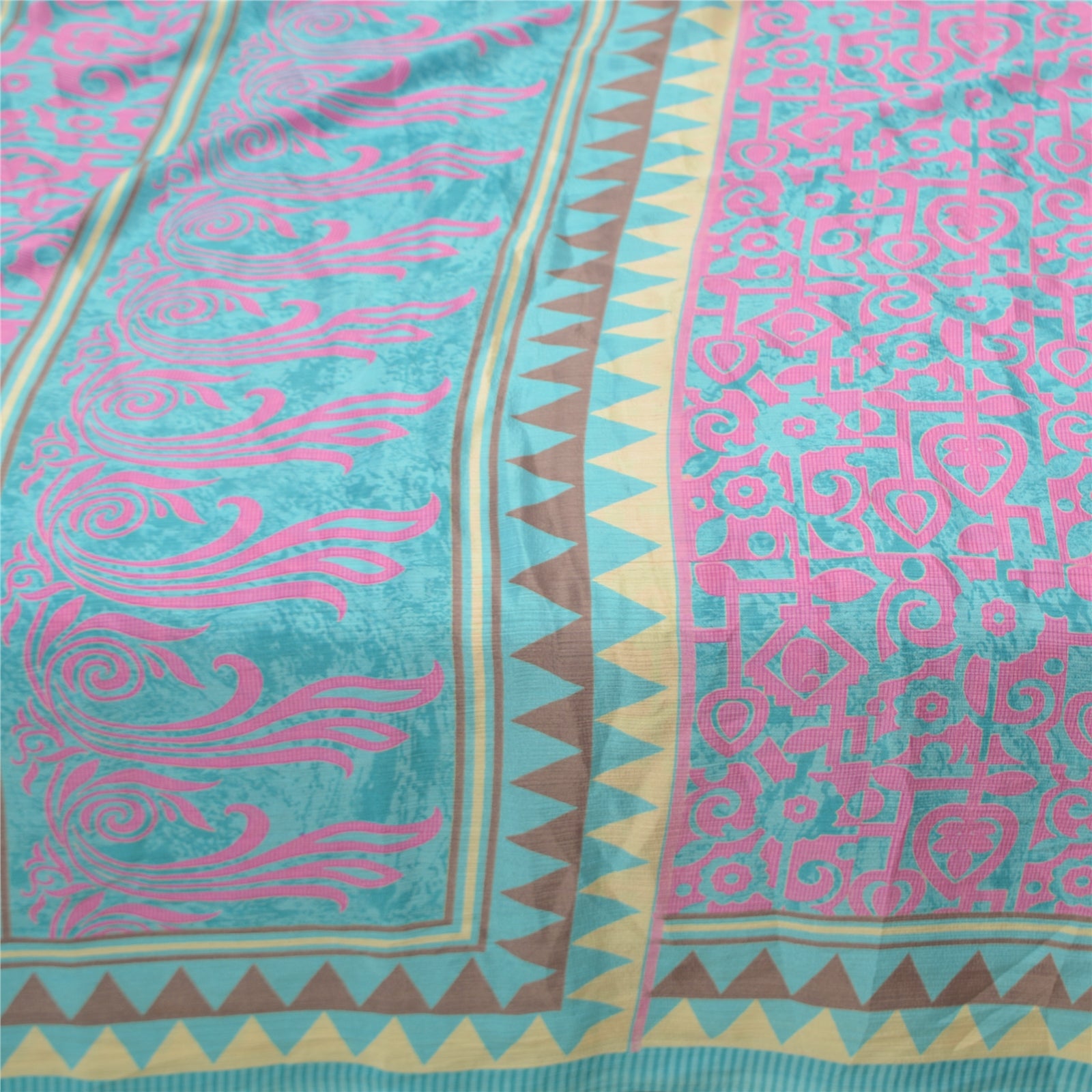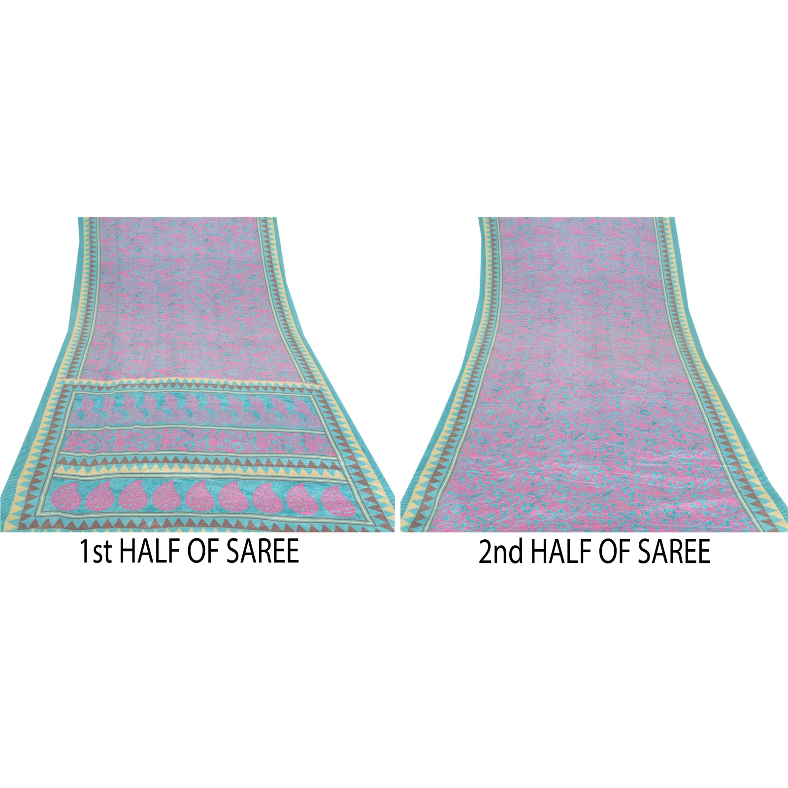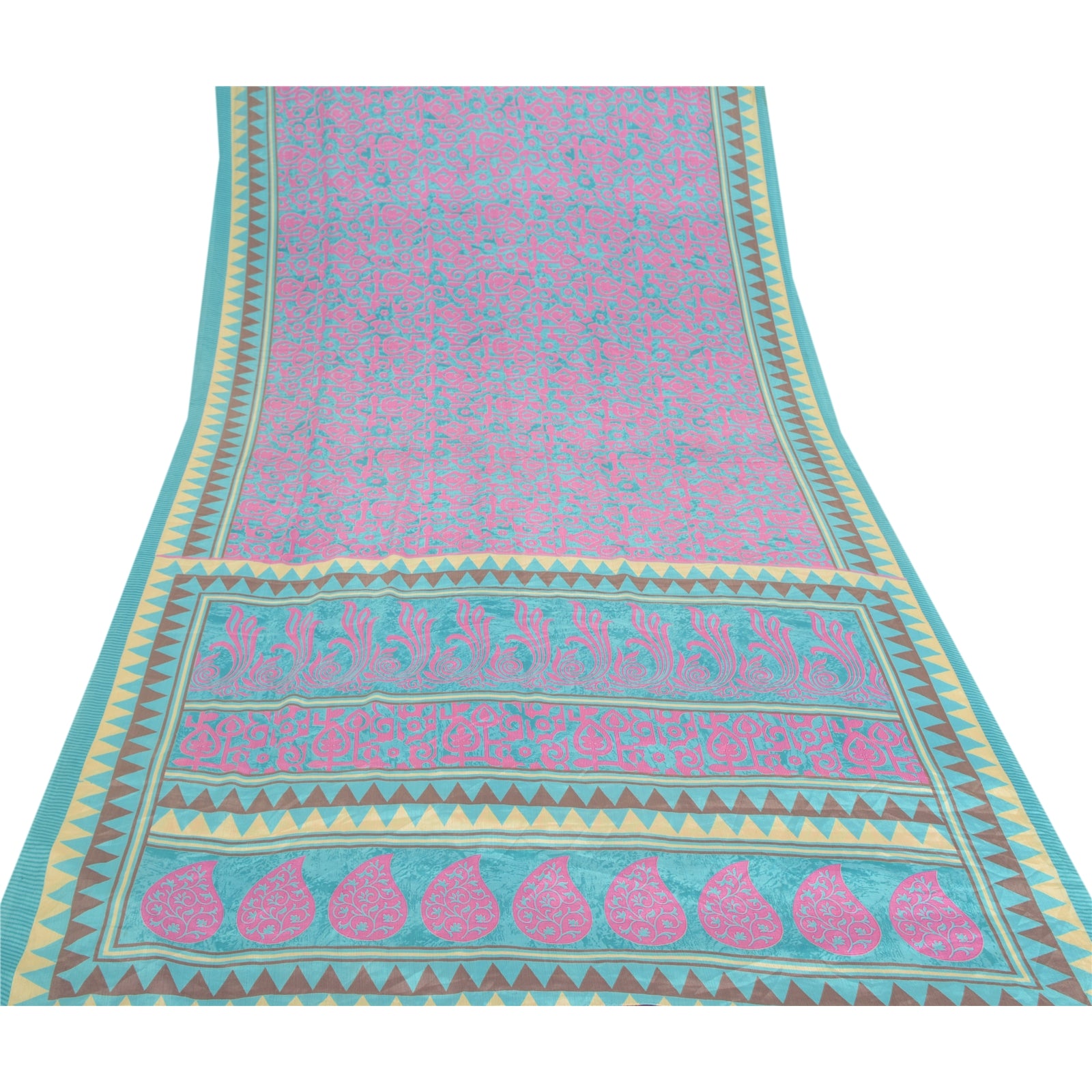 Beautiful blue and pink colored printed moss crepe saree. Pallu & Border has printed floral and triangular design. Floral design in center part of sari. What is special about this saree? Nice floral design with extremely smooth moss crepe base Sustainable Fabric is really enhancing the beauty of the saree. This unique vintage saree can be used for various crafting ideas even if you don't want to use it as a sari. Design a dress, use it as a throw, as window dressing, upholstery, sarongs, table linen and much more. Let your creative juices flow and use this decorated Sustainable Fabric in multiple fashion. Please note - Buyers from Australia are required to pay postage. Registered air mail to Australia is temporarily suspended due to the pandemic. Once it goes back to normal we'll revert to free shipping. For now, we are using Aramex and DHL to ship orders. These services are expensive but faster compared to regular mail. Thank you for your support. If you are buying in bulk we will refund whatever excess is left. Contact us after that purchase. For USA buyers - Single item ships via registered air mail, buy 1 more to get FedEx.