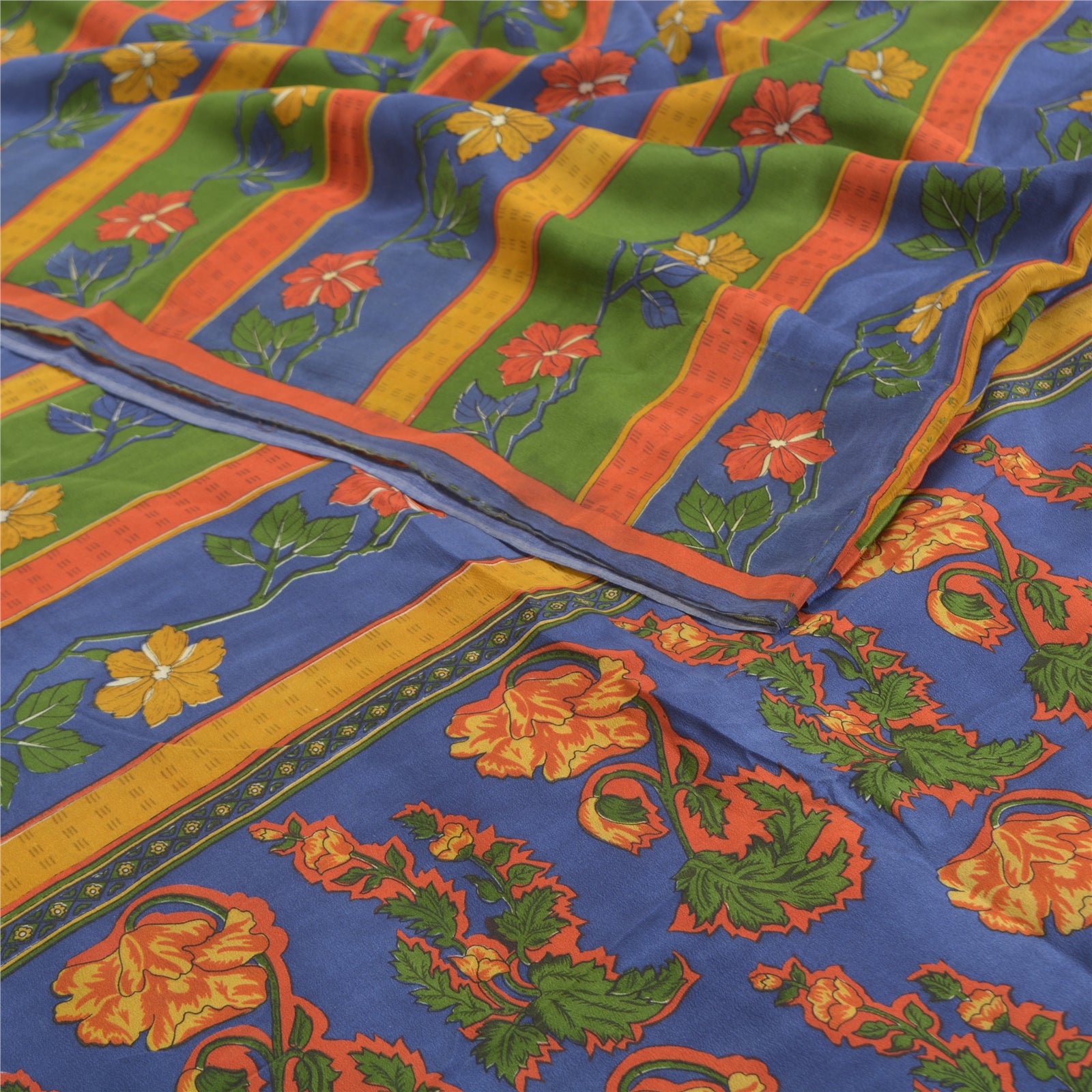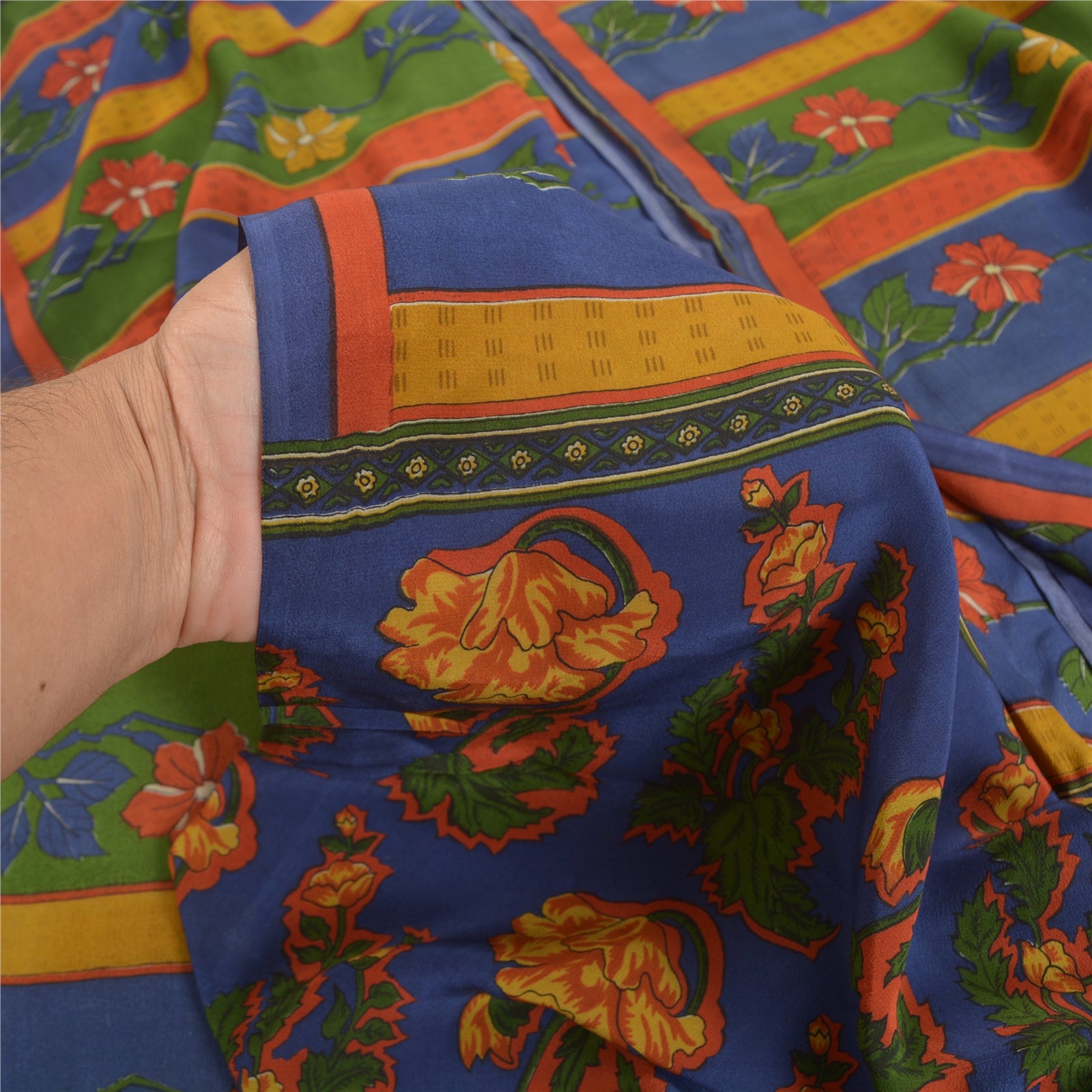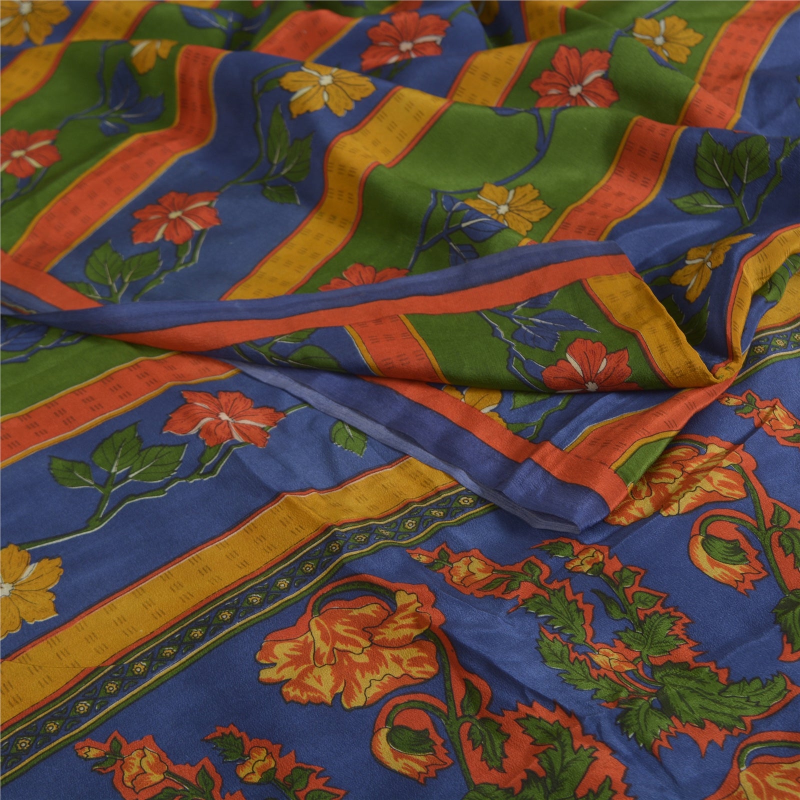 Sanskriti Vintage Blue Sarees Pure Cerpe Silk Printed Sari Craft Sewing Sustainable Fabric