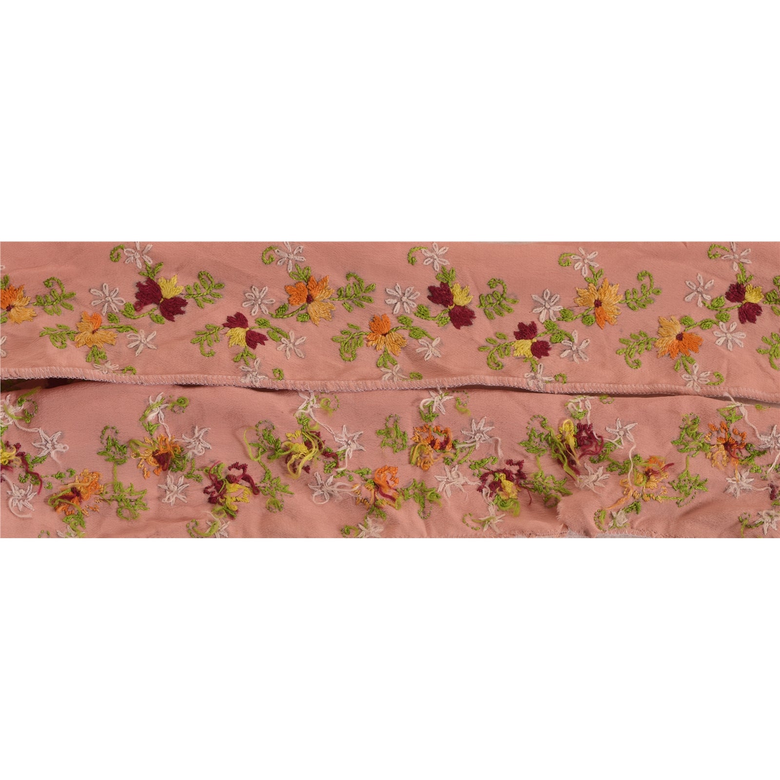 Sanskriti Vintage Border Hand Embroidered 1 Yard Trim Sewing Pink Craft Lace