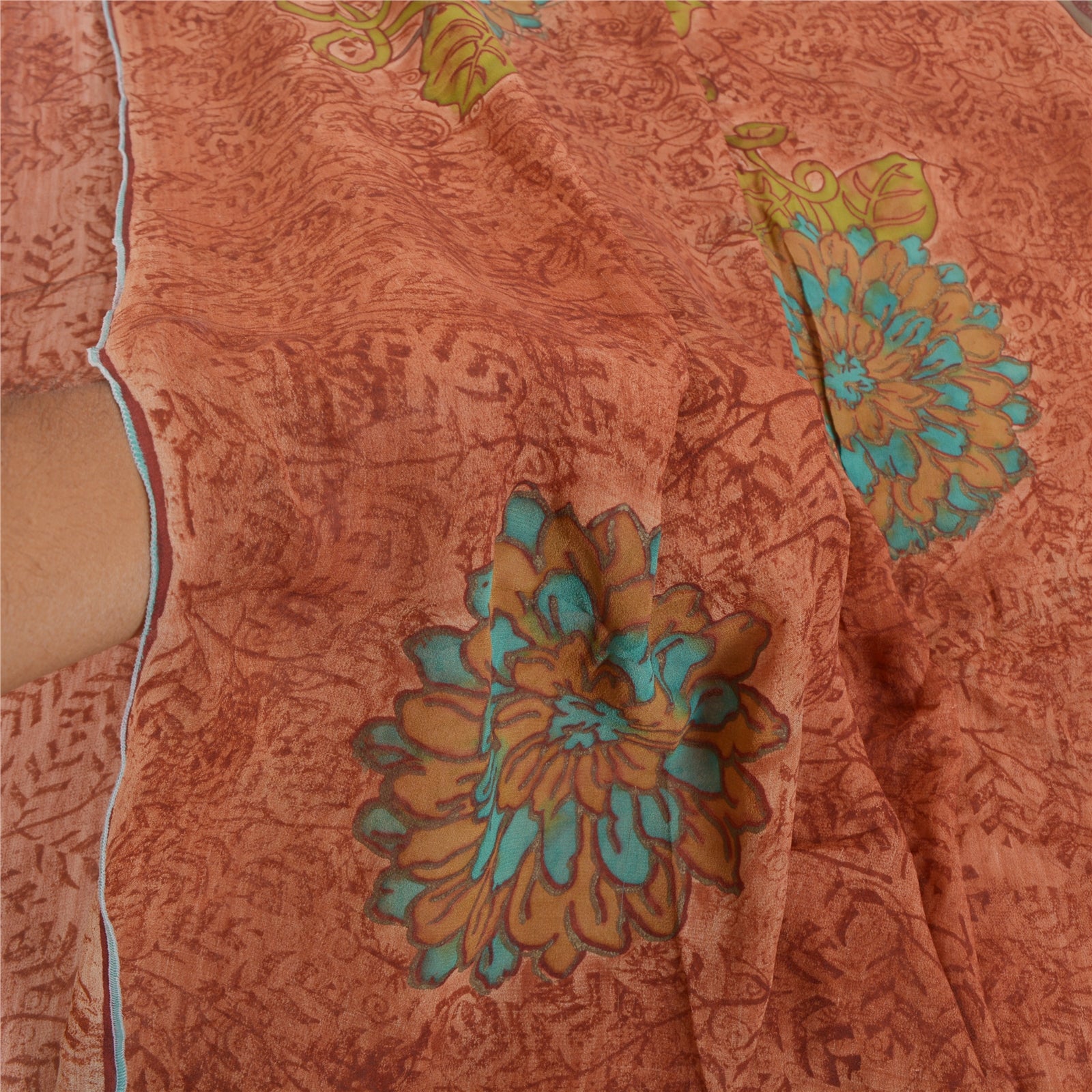 Sanskriti Vintage Brown Sarees Pure Georgette Silk Printed Sari 5YD Craft Sustainable Fabric