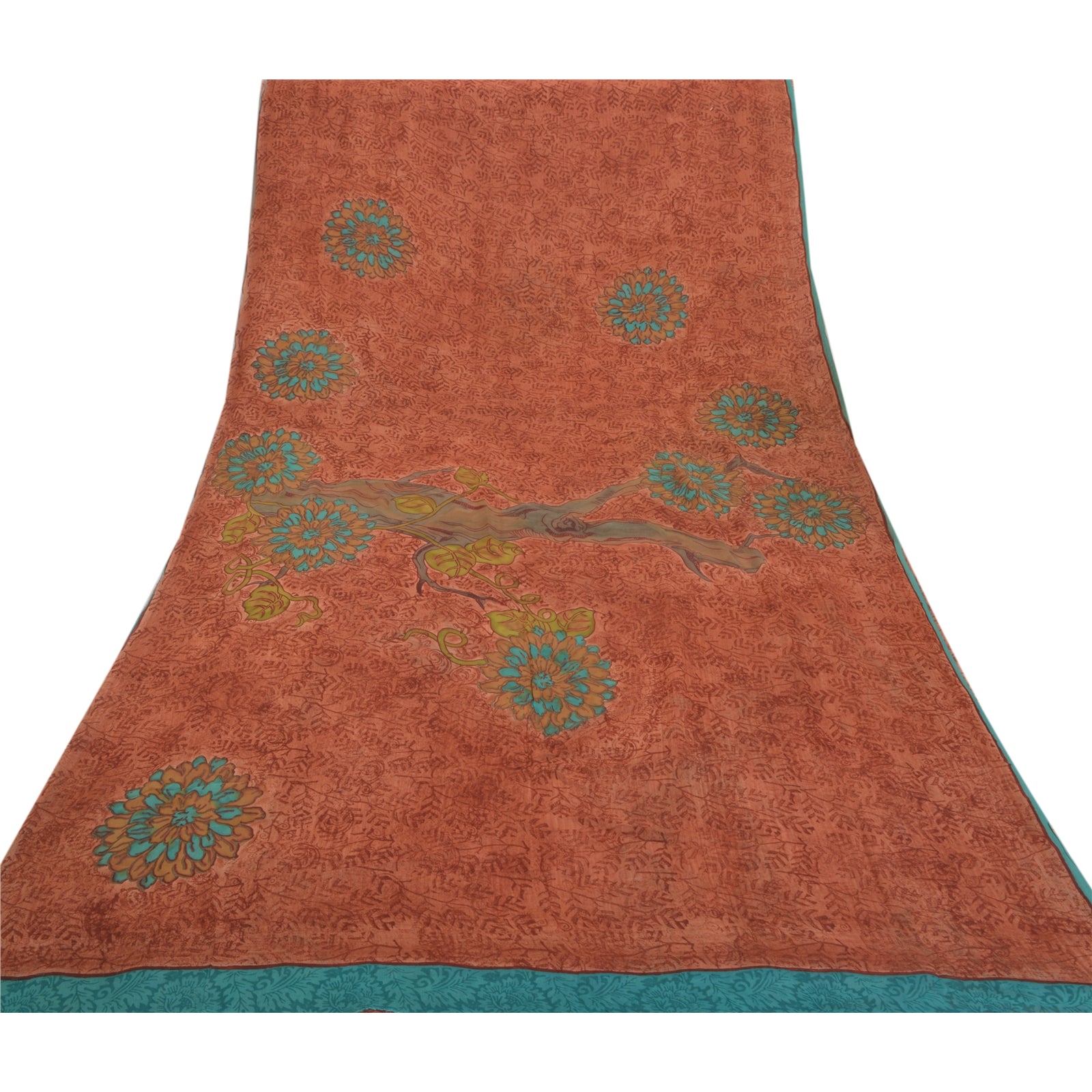 • Awesome brown colored printed pure georgette silk saree. • Pallu & Border has printed floral, leaf & tree design. • Similar design in center part of sari. This unique vintage saree can be used for various crafting ideas even if you don't want to use it as a sari. Design a dress, use it as a as window dressing, upholstery, sarongs, throw, dress making and table linen much more. Let your creative juices flow and use this decorated Sustainable Fabric in multiple fashion.