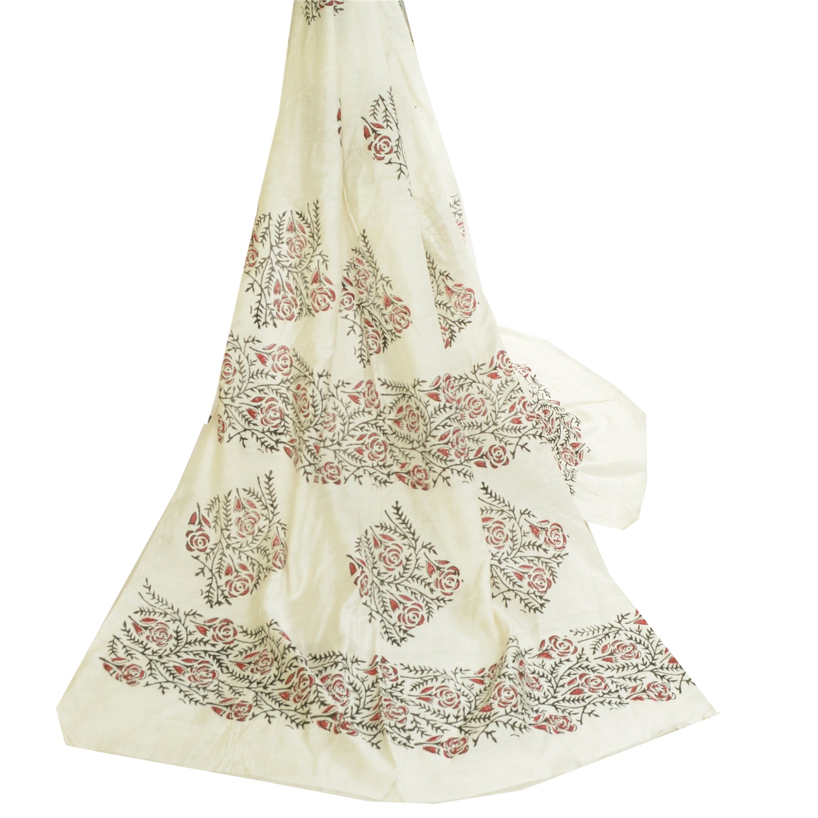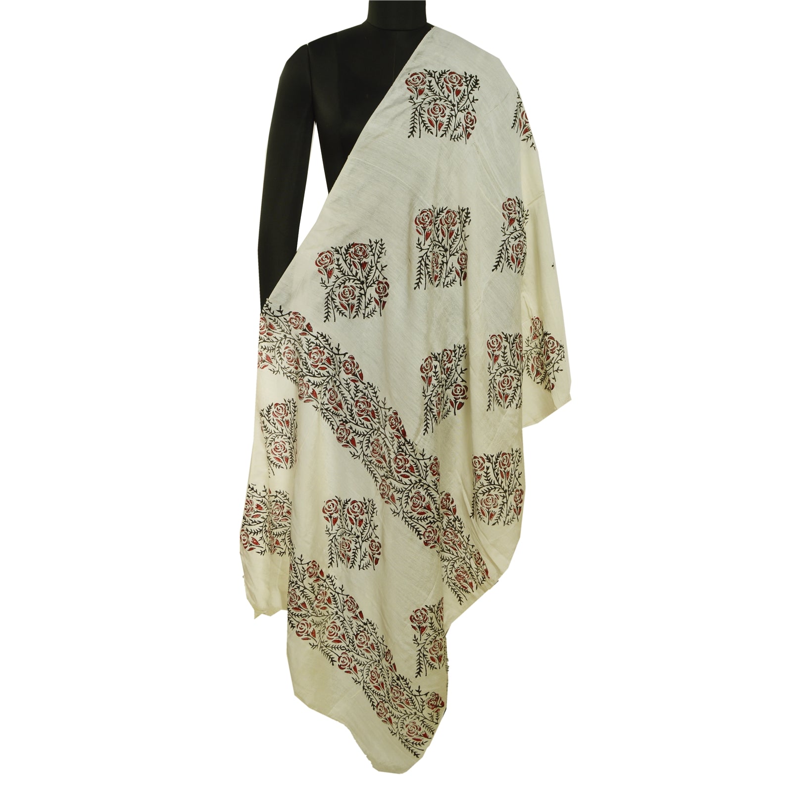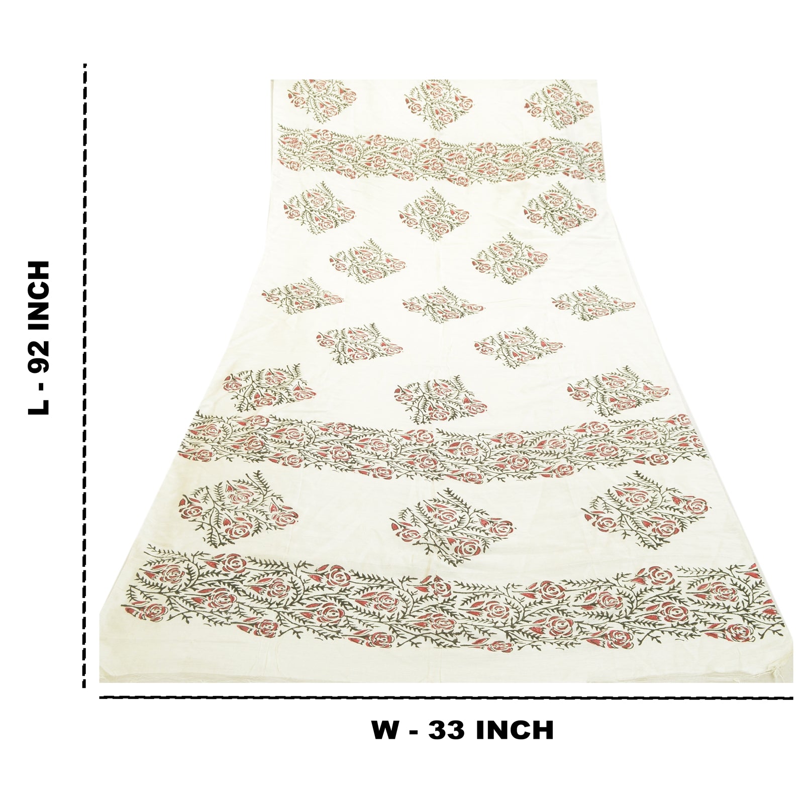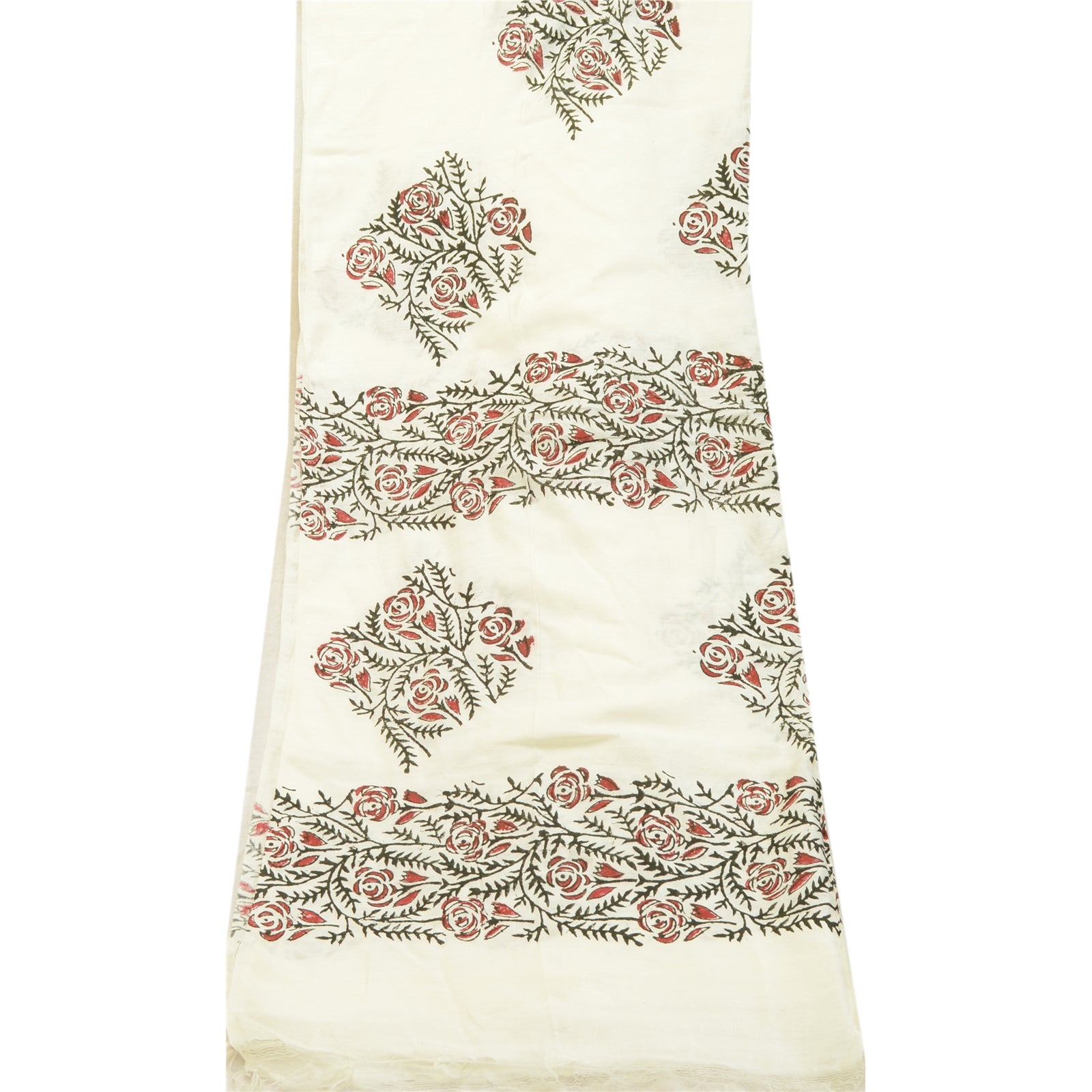 Sanskriti Vintage Cotton Long Dupatta Stole White Block Printed Wrap Scarves