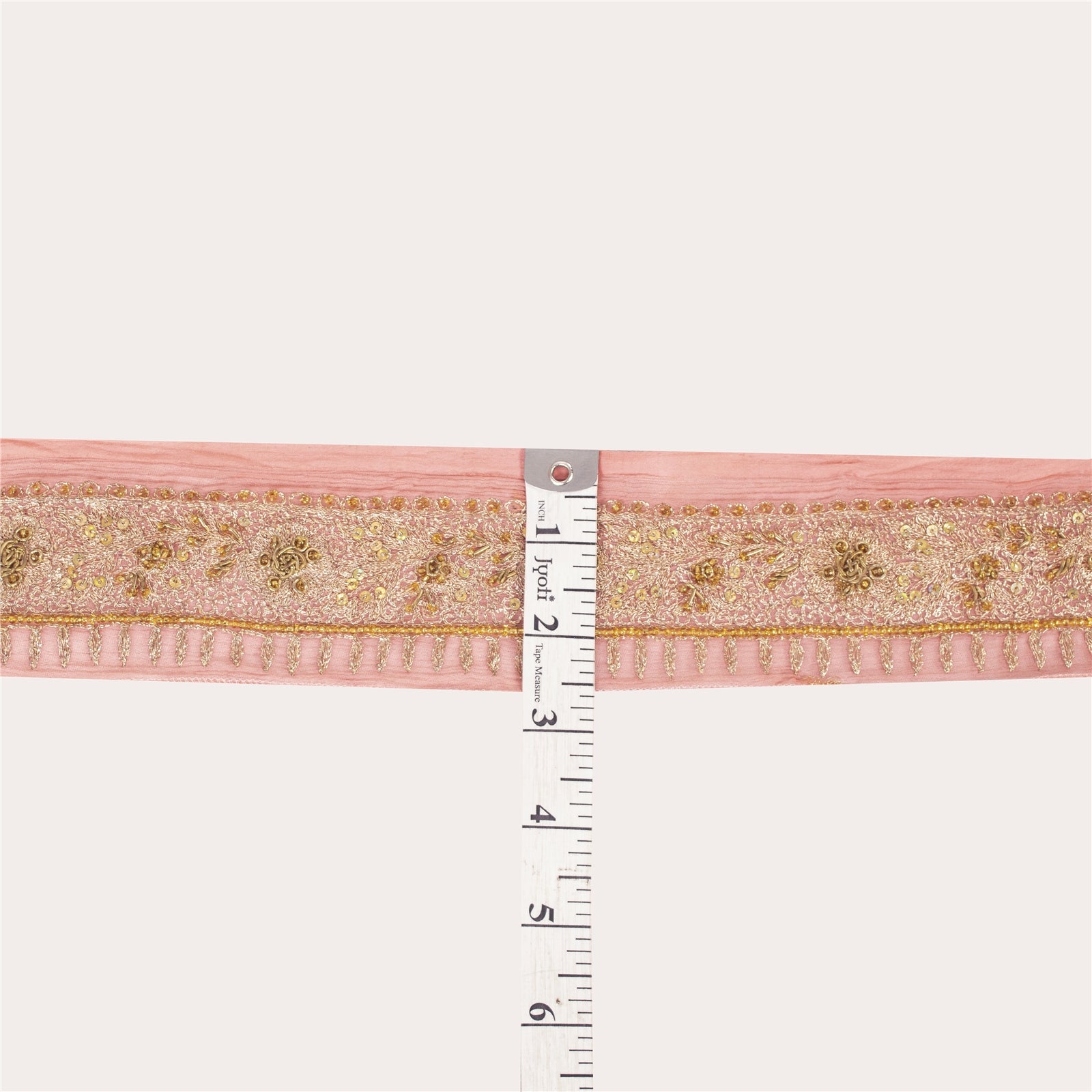 Sanskriti Vintage Craft Trims 1YD Saree/Sari Border Peach Hand Beaded Zari Lace