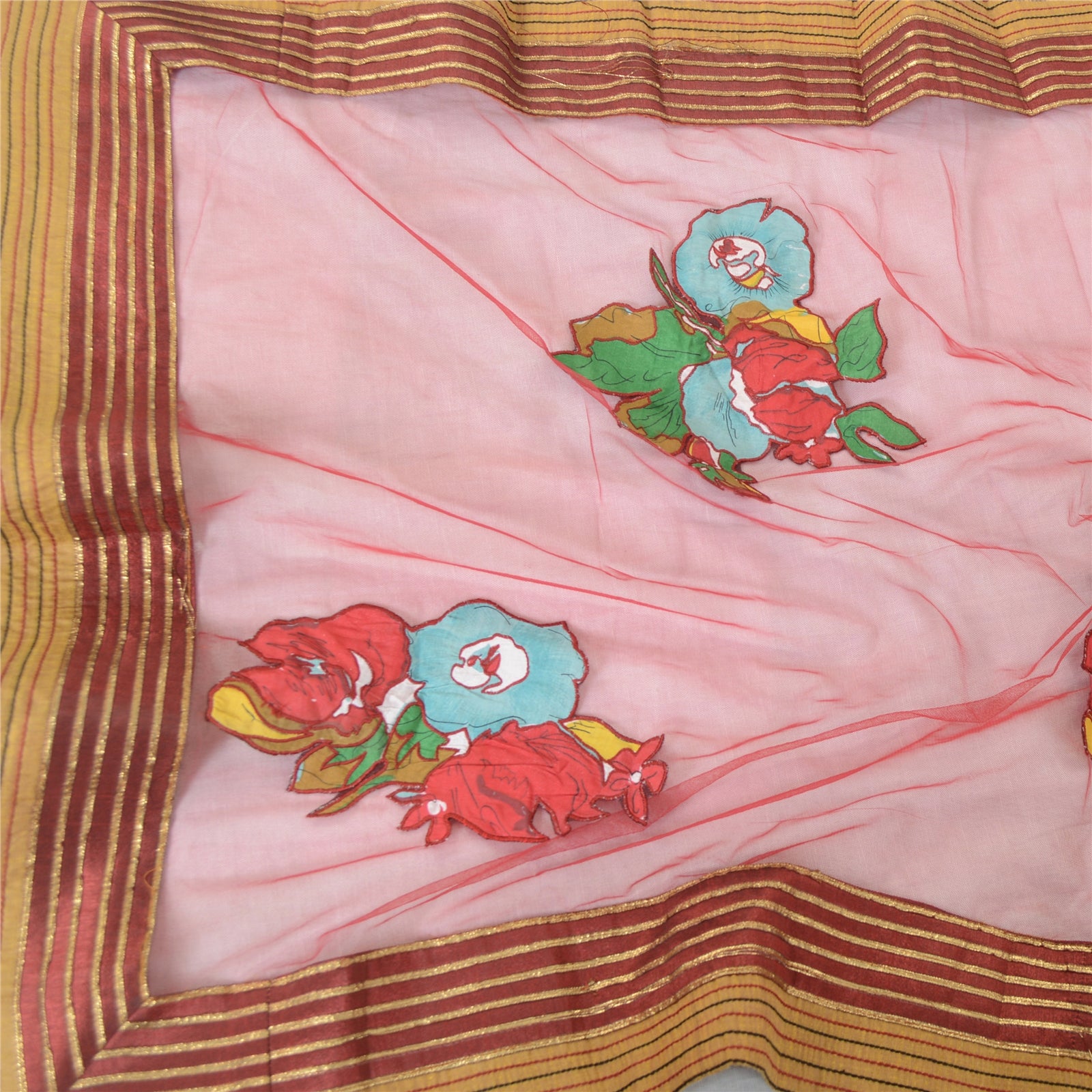 THE ITEM COLOR OR SHADE MAY BE DARKER OR LIGHTER THAN THE PICTURE.' Beautiful dark red colored net embroidered long scarf/dupatta. The center portion features has floral design with multi color appliqué work . Border of the dupatta has maroon/mustard fabric patch work golden gota work . This item's Beauty Factor Alluring border with maroon & mustard fabric patch work on dark red color base fabric is really enhancing the beauty of the dupatta. This dupatta/stole can be used for various crafting ideas too. Use it for dress designing, as a throw, as window dressing, upholstery, table linen and much more. Let your creative juices flow. Shipping note: International buyers please note: Import duties, taxes, and charges are not included in the item price or postage cost. These charges are the buyer's responsibility. Please check with your country's customs office to determine what these additional costs will be prior to bidding or buying. Buyer will pay custom duty/tax. It is calculated and charged differently by every country. As a seller I do not have any control over it. VAT or sales tax is calculated by the platform at the time of checkout. Customs charge is payable at the time of delivery.'
