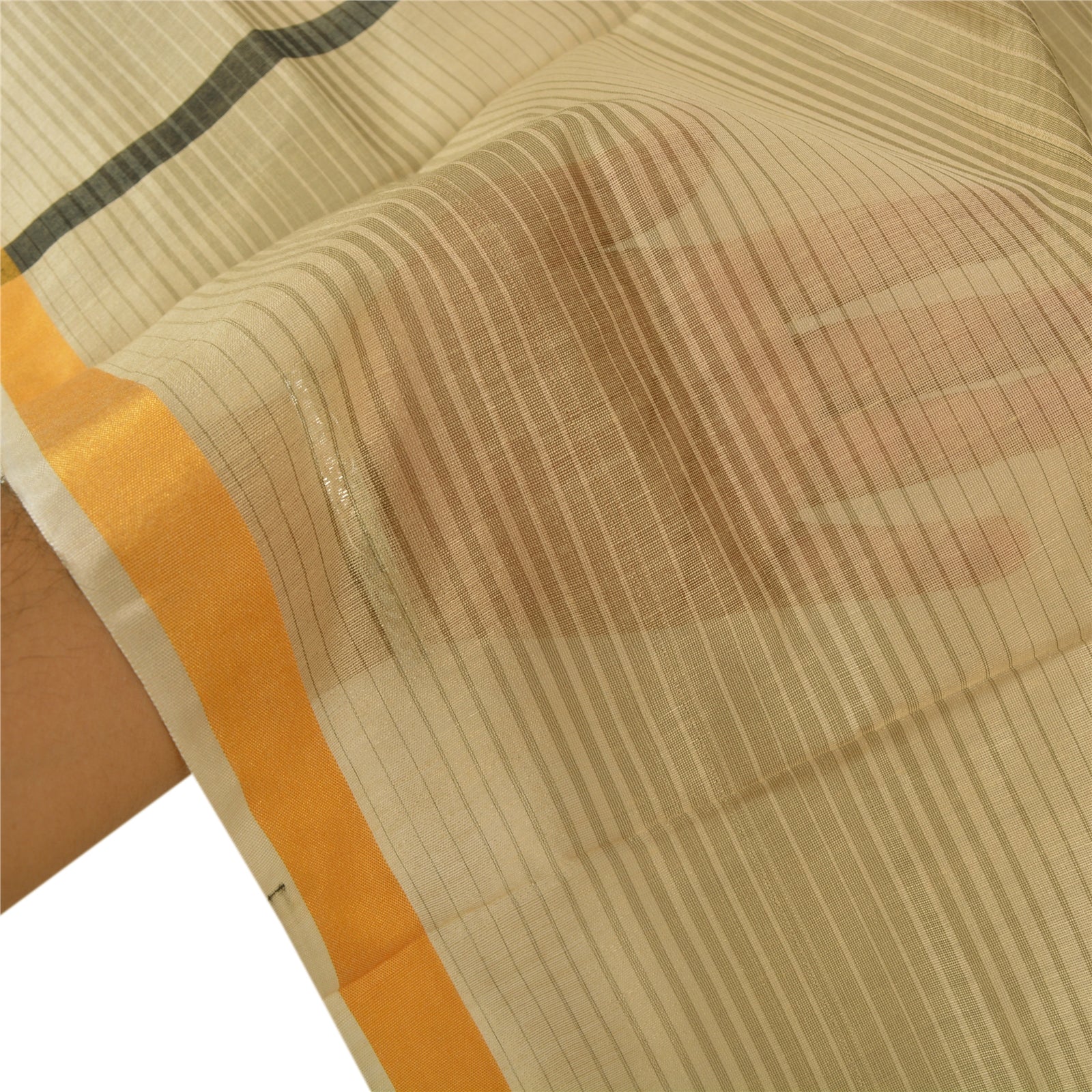 Sanskriti Vintage Dupatta Long Stole Art Silk Ivory Hijab Woven Soft Scarves