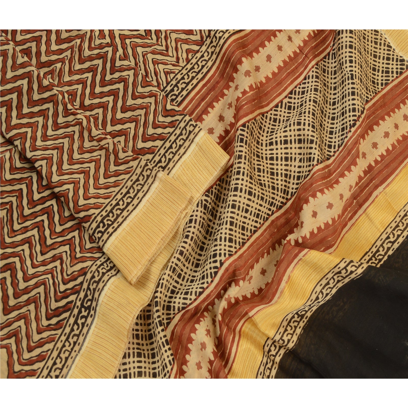 Sanskriti Vintage Dupatta Long Stole Cotton Silk Hijab Block Printed Scarves
