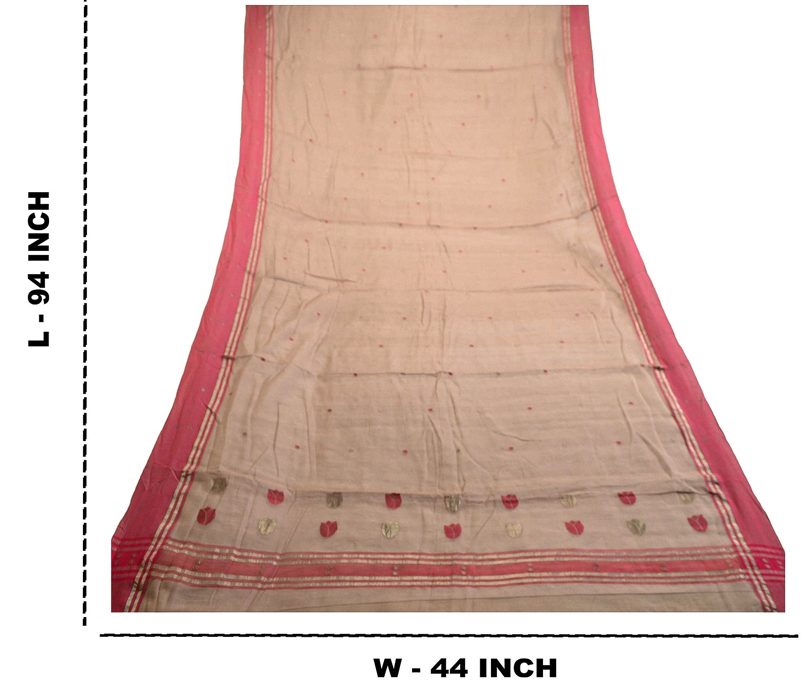 Beautiful shade‑of‑pink cotton–silk (blend) dupatta with a hand‑woven floral center and a refined border embellished with metallic silver zari and pink thread work—adding a gentle, festive shimmer. Ideal for styling or for creative reuse in slow‑fashion projects.