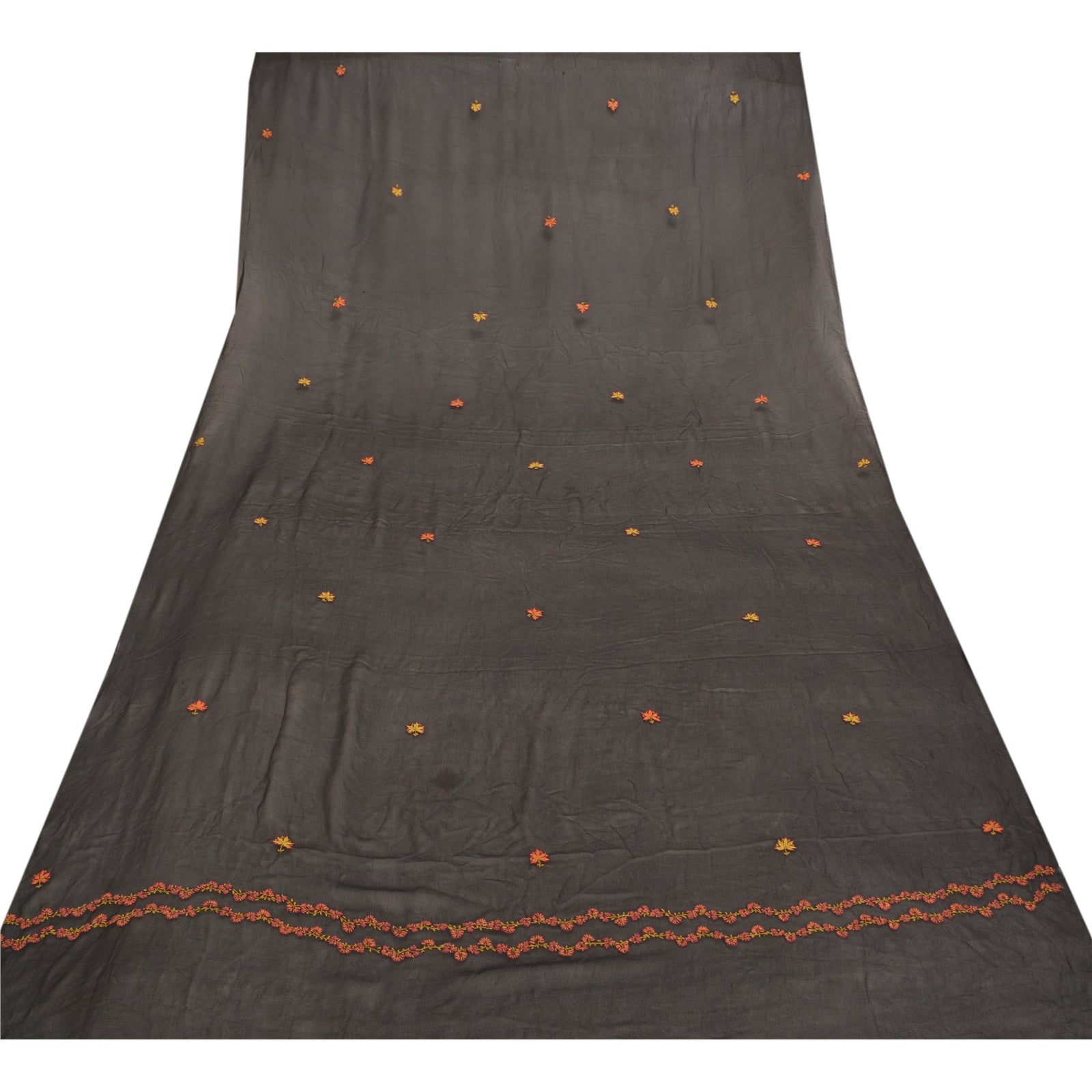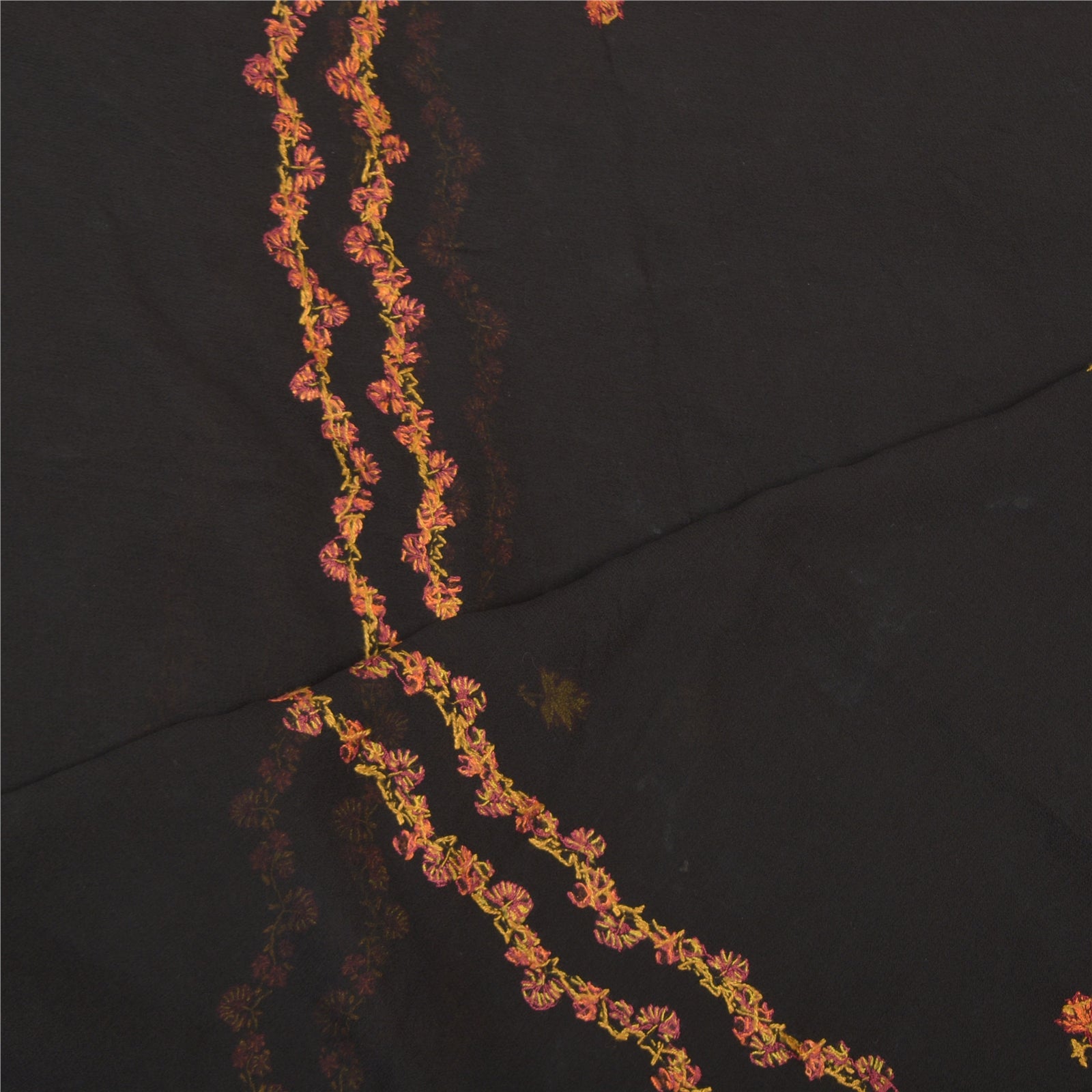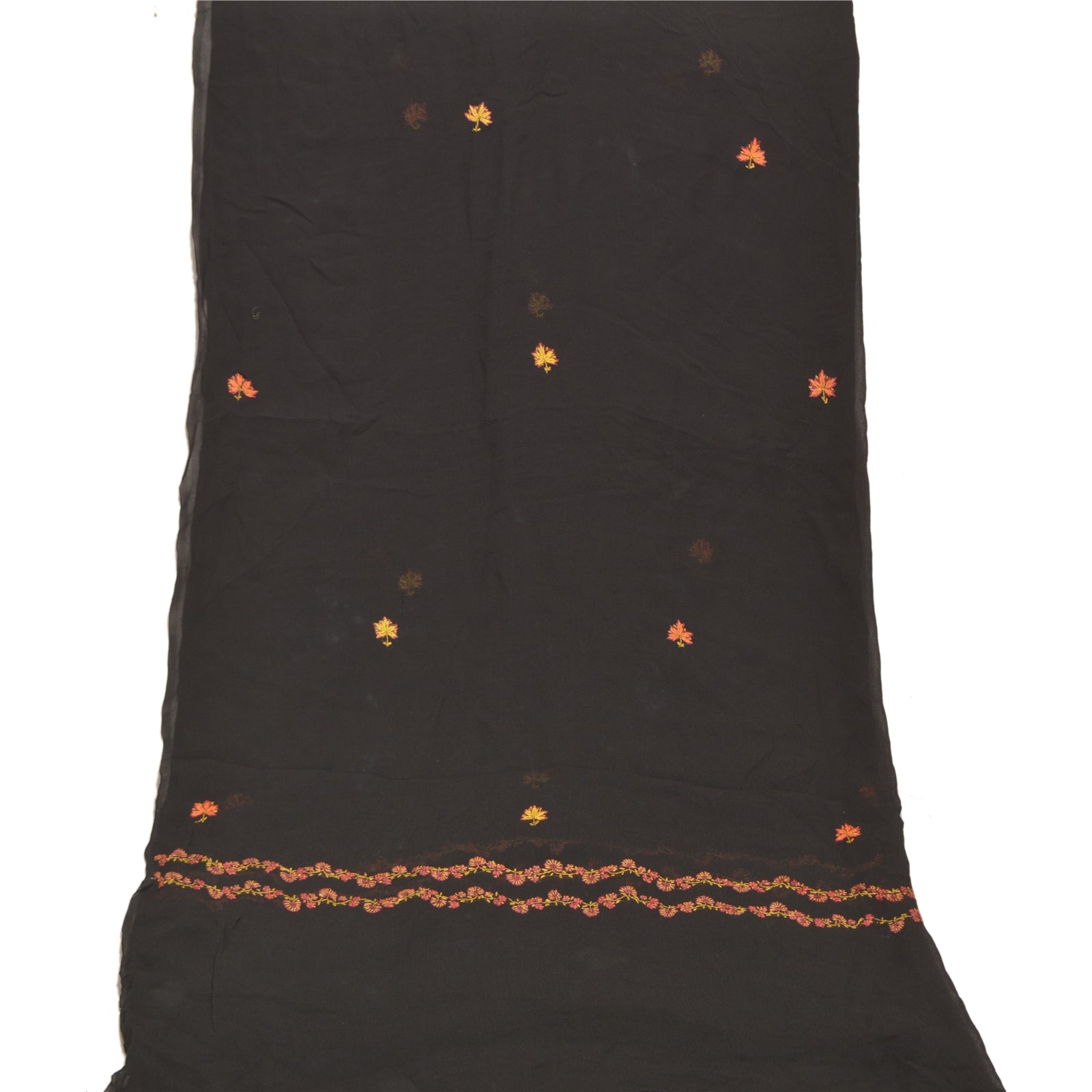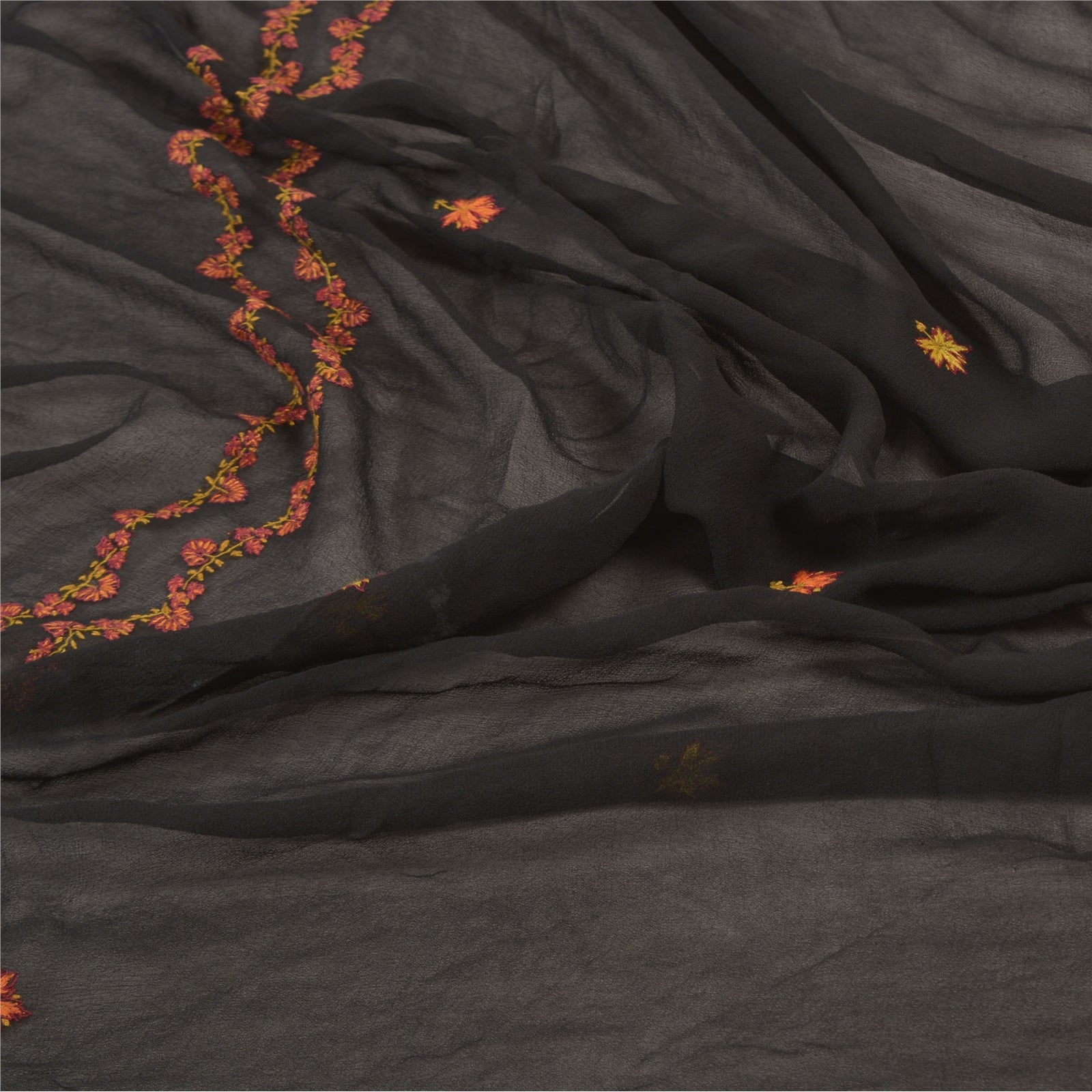 Sanskriti Vintage Dupatta Long Stole Georgette Black Hand Embroidered Suzani