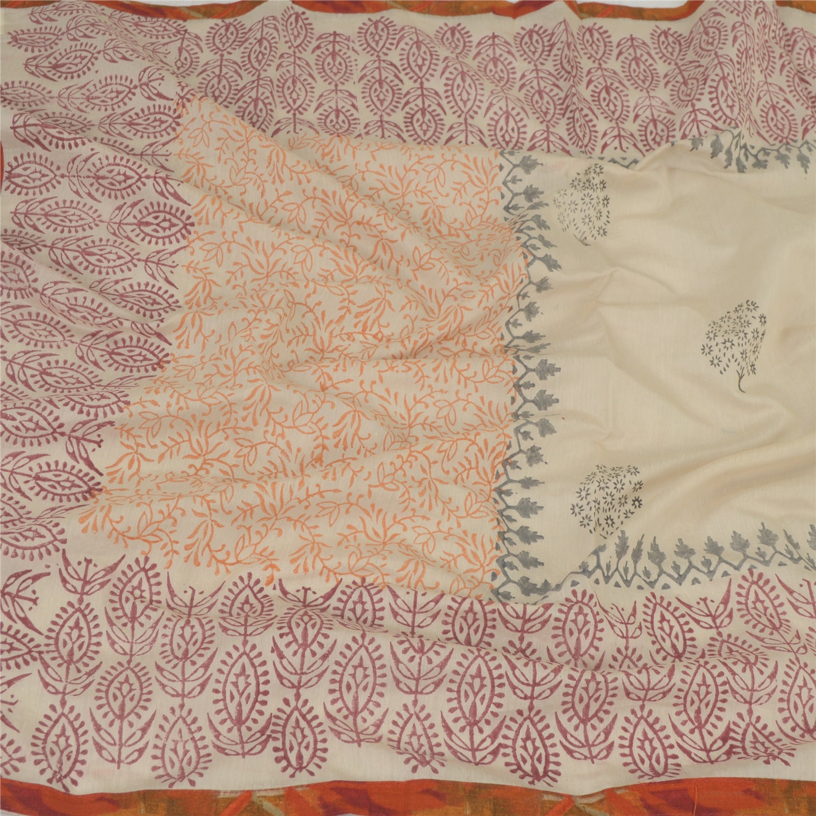 Sanskriti Vintage Dupatta Long Stole Ivory Hand Block Printed Scarves