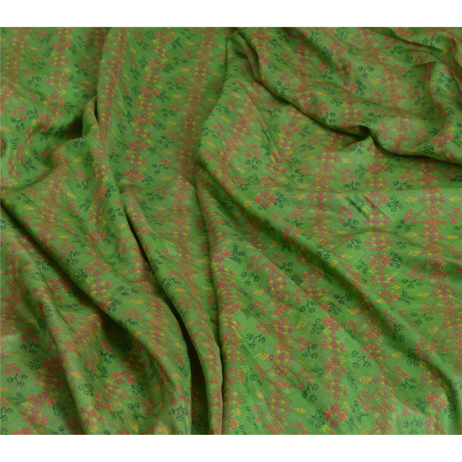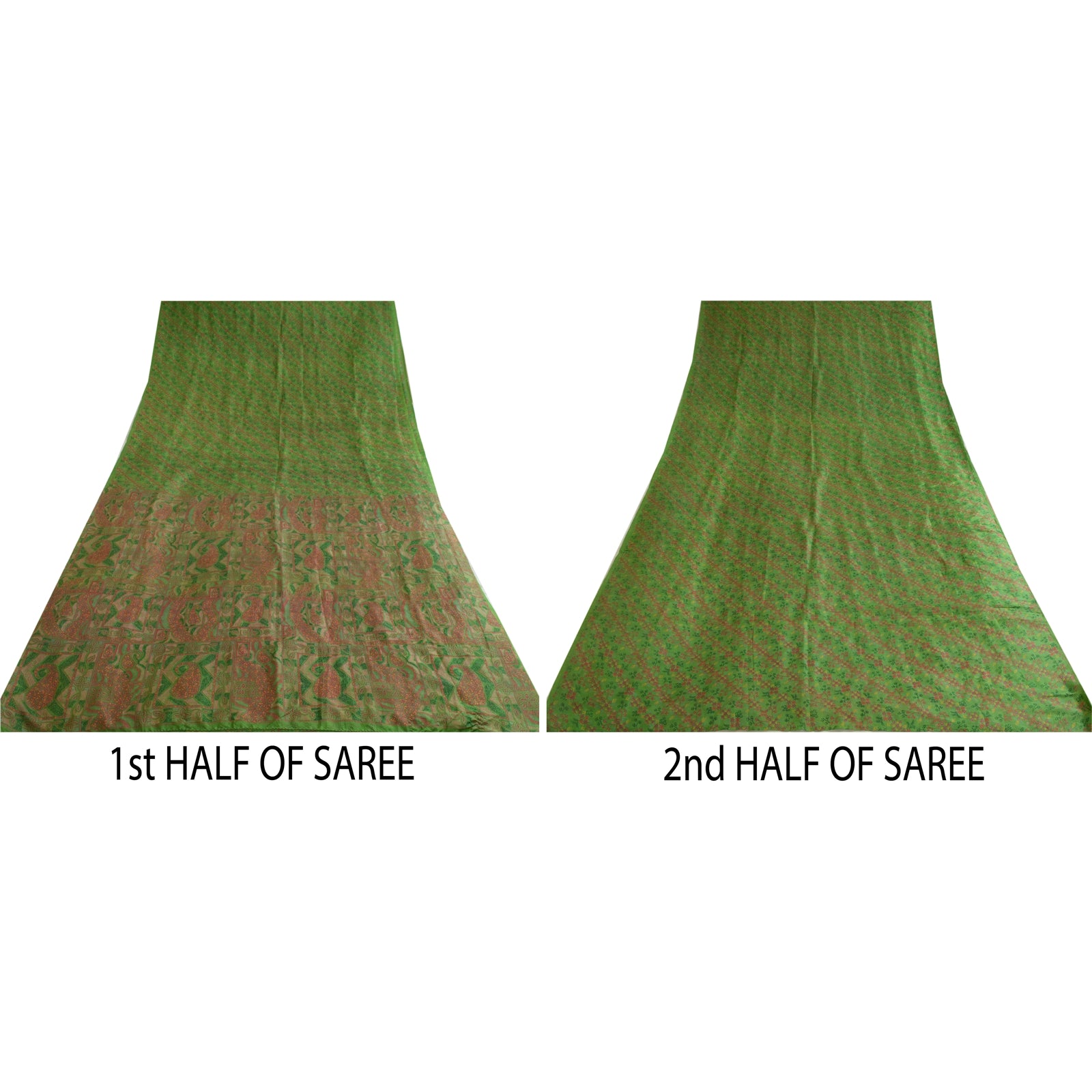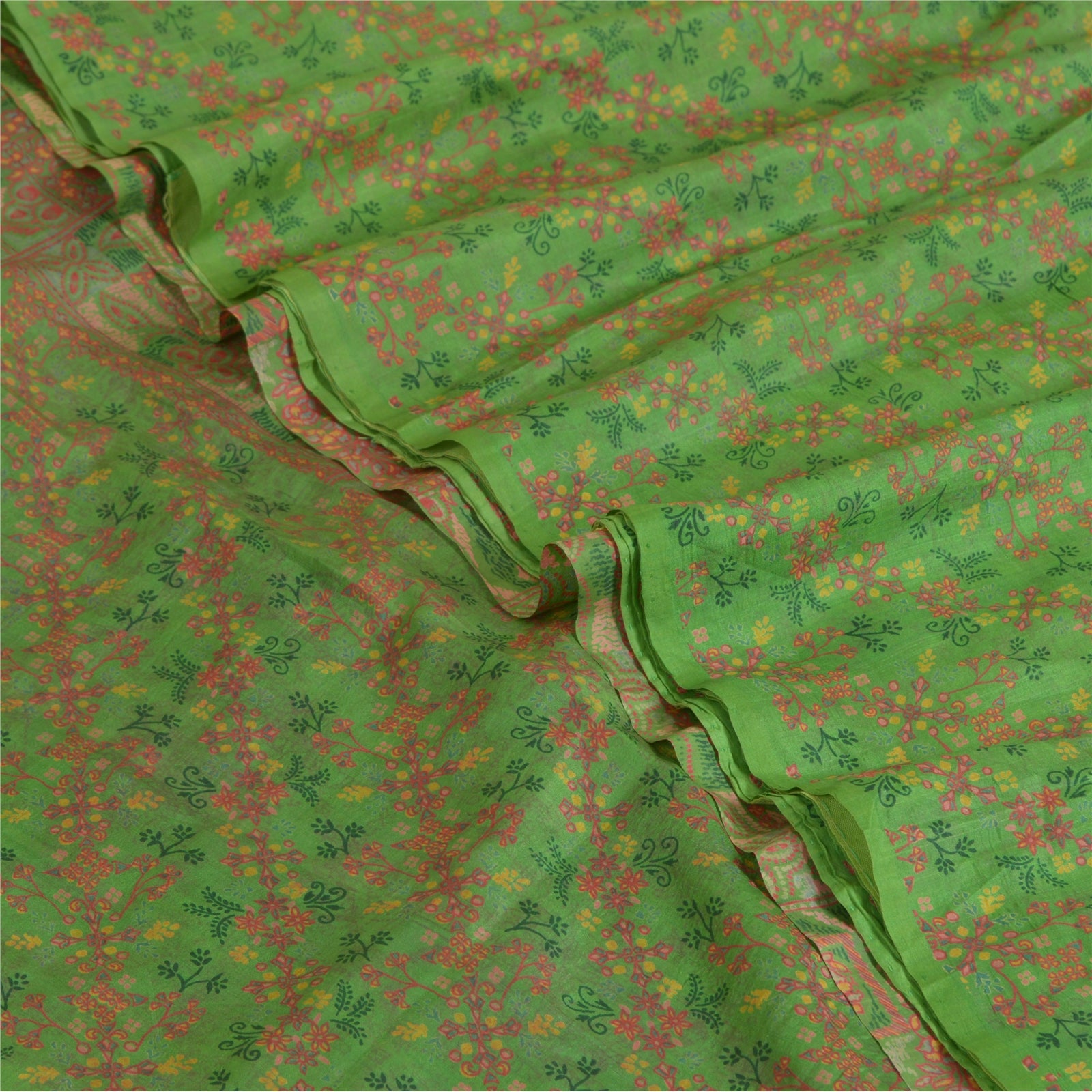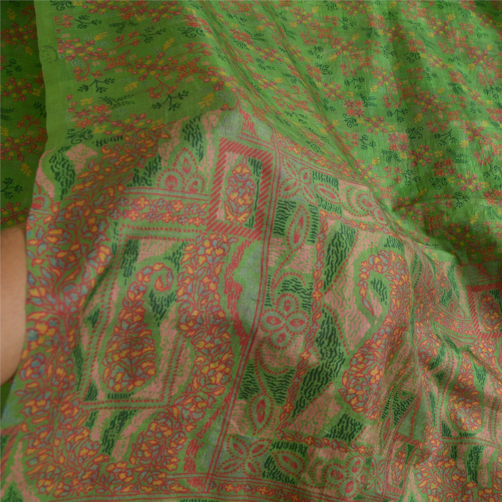 Sanskriti Vintage Green Indian Sarees 100% Pure Silk Printed Sari Craft Sustainable Fabric