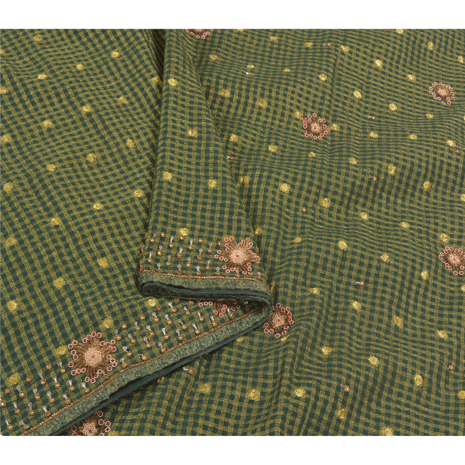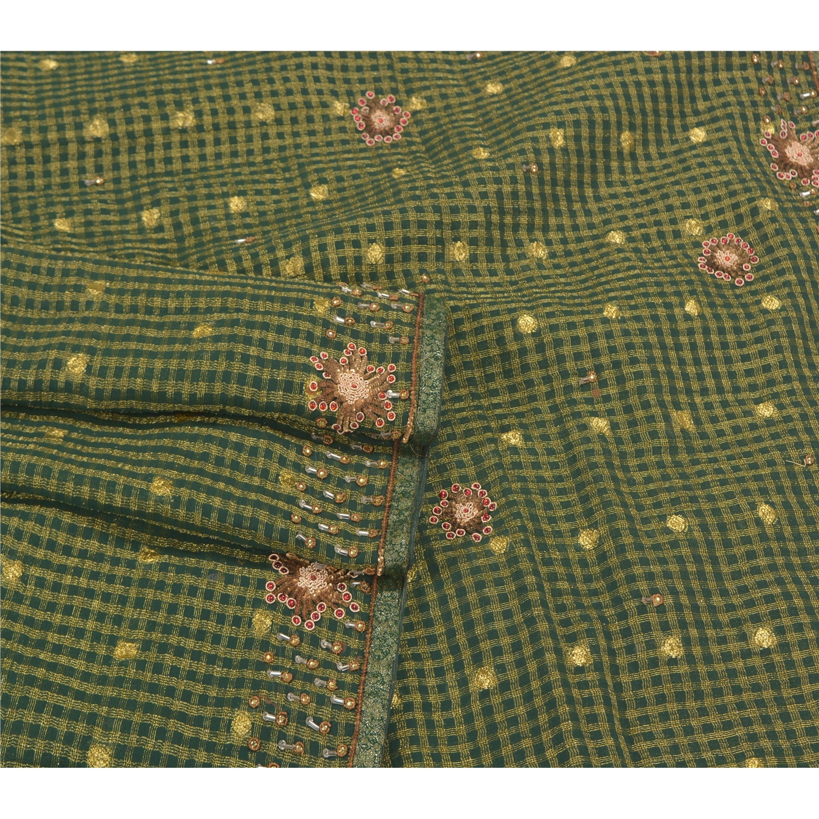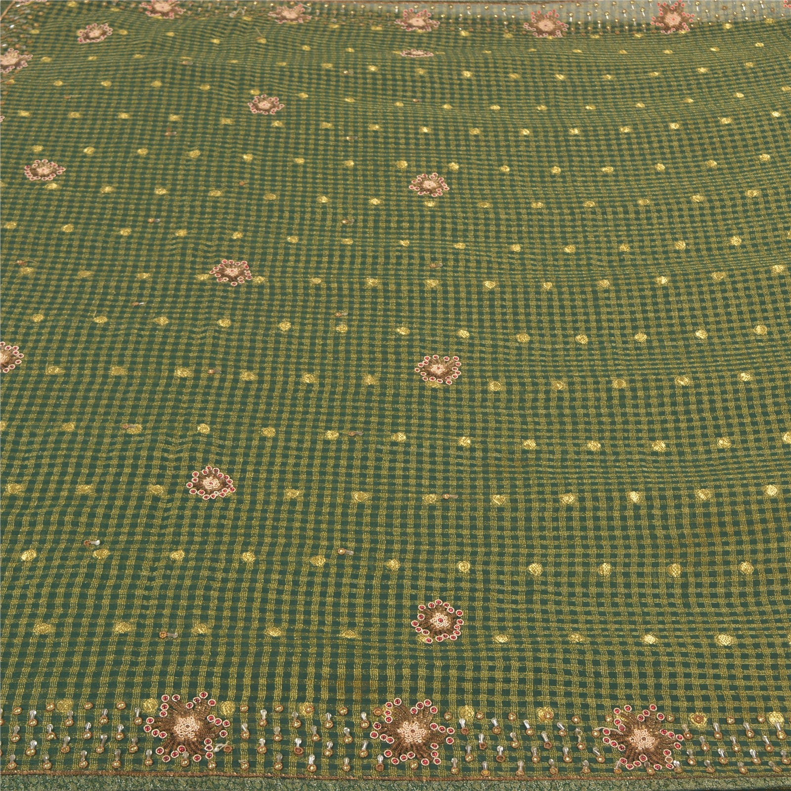 Sanskriti Vintage Green Indian Sarees Cotton Hand Beaded Woven Sari Sustainable Fabric