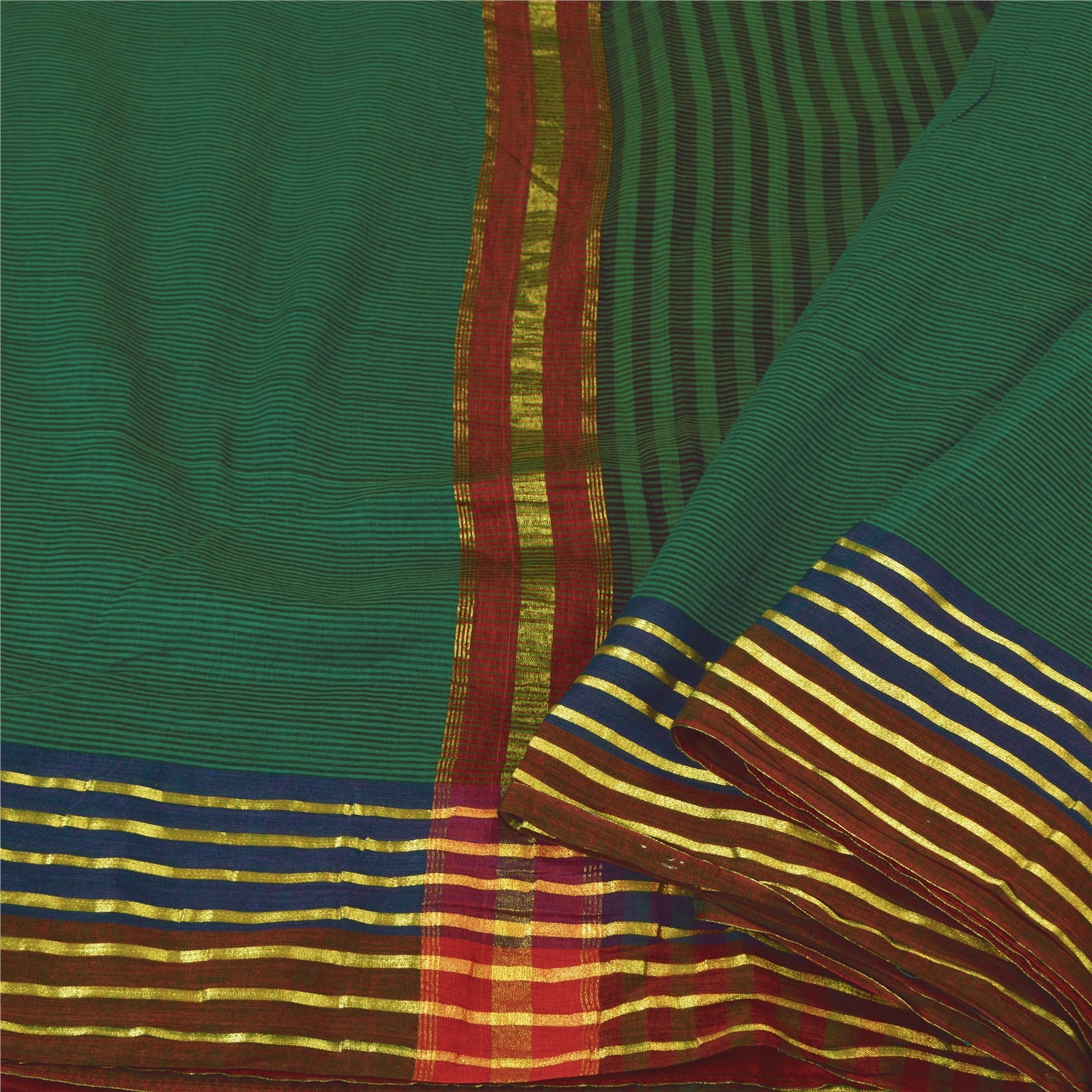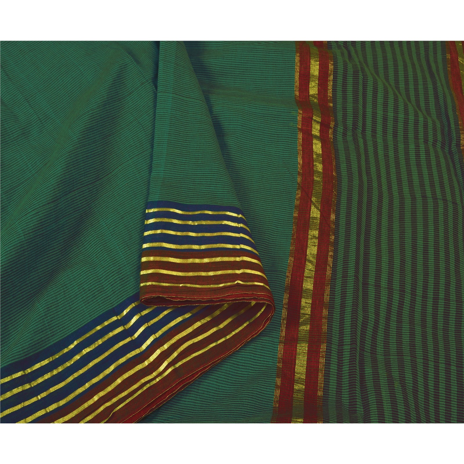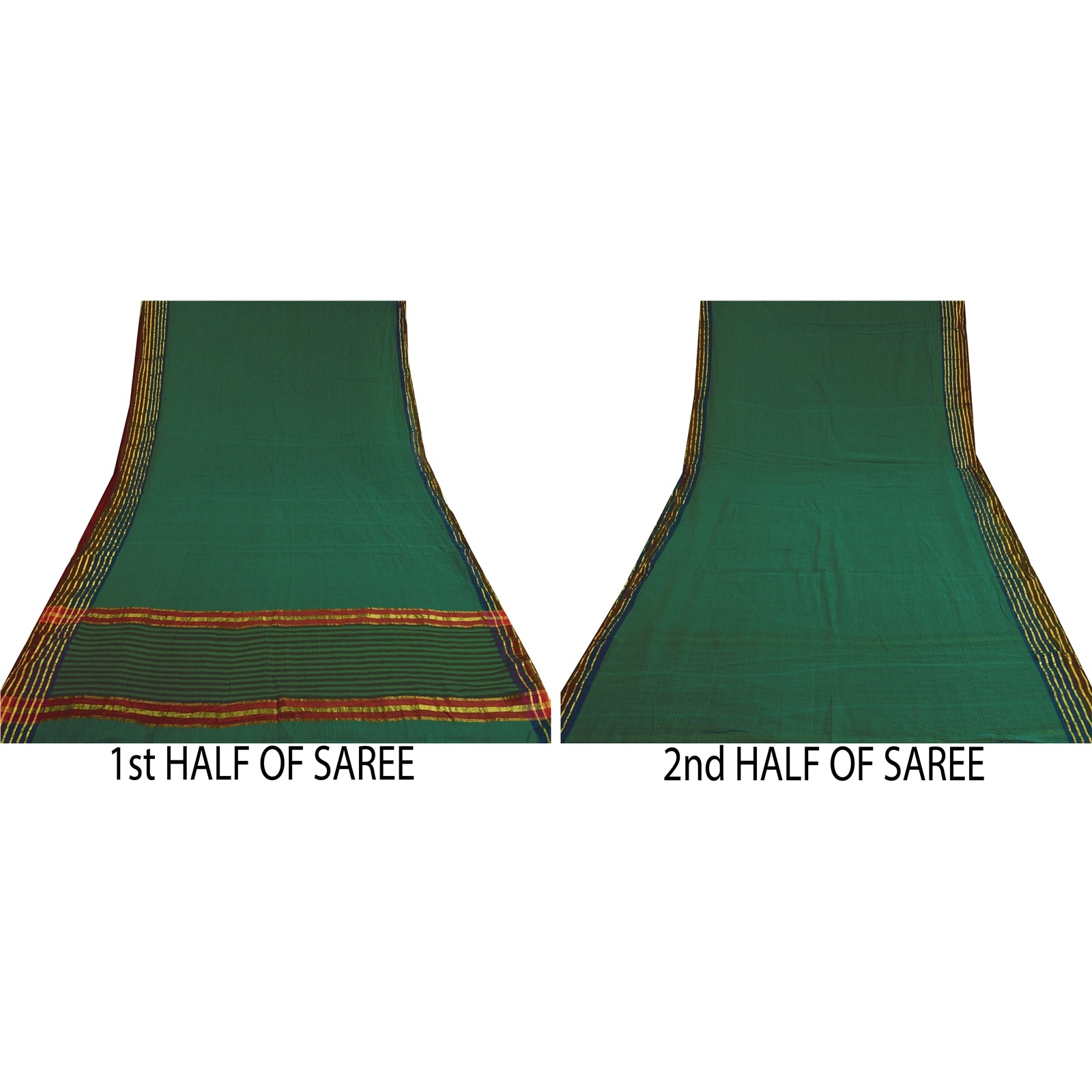 Sanskriti Vintage Green Sarees Cotton Silk Woven Ilkal Premium Sari 5 YD Sustainable Fabric