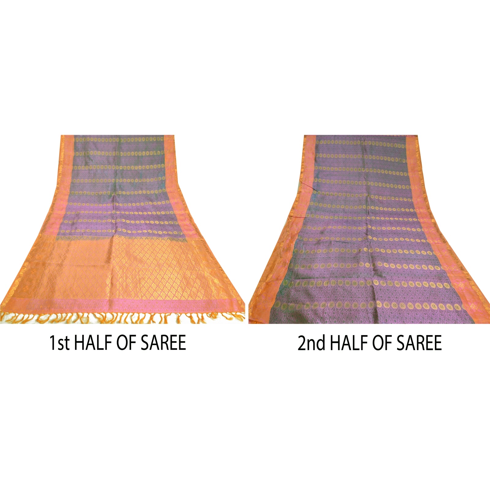 Outstanding pink & green colored 100% pure silk woven saree. Pallu & Border Features are floral pattern embellished with golden zari woven work. You can see purple woven thread & golden zari work in center part of saree. . What is special about this saree? Pretty embroidery with floral design on peach & blue color base Sustainable Fabric is really enhancing the beauty of the saree. This unique vintage saree can be used for various crafting ideas even if you don't want to use it as a sari. Design a dress, use it as a throw, as window dressing, upholstery, sarongs, table linen and much more. Let your creative juices flow and use this decorated Sustainable Fabric in multiple fashion. 'International buyers please note: Import duties, taxes, and charges are not included in the item price or postage cost. These charges are the buyer's responsibility. Please check with your country's customs office to determine what these additional costs will be prior to bidding or buying. Buyer will pay custom duty/tax. It is calculated and charged differently by every country. As a seller I do not have any control over it. VAT or sales tax is calculated by the platform at the time of checkout. Customs charge is payable at the time of delivery.
