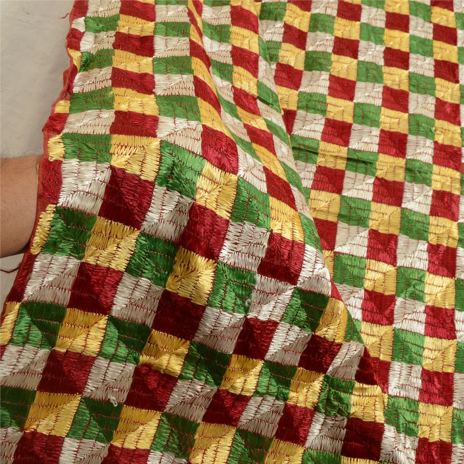 Sanskriti Vintage Hand Embroidered Pure Cotton Dupatta Bagh Phulkari Wrap Stole