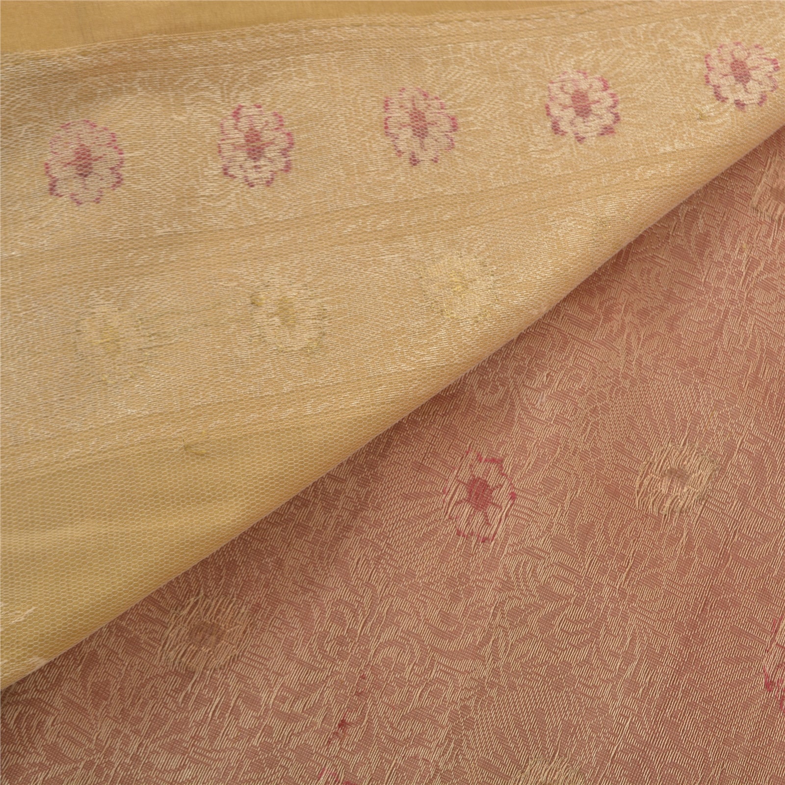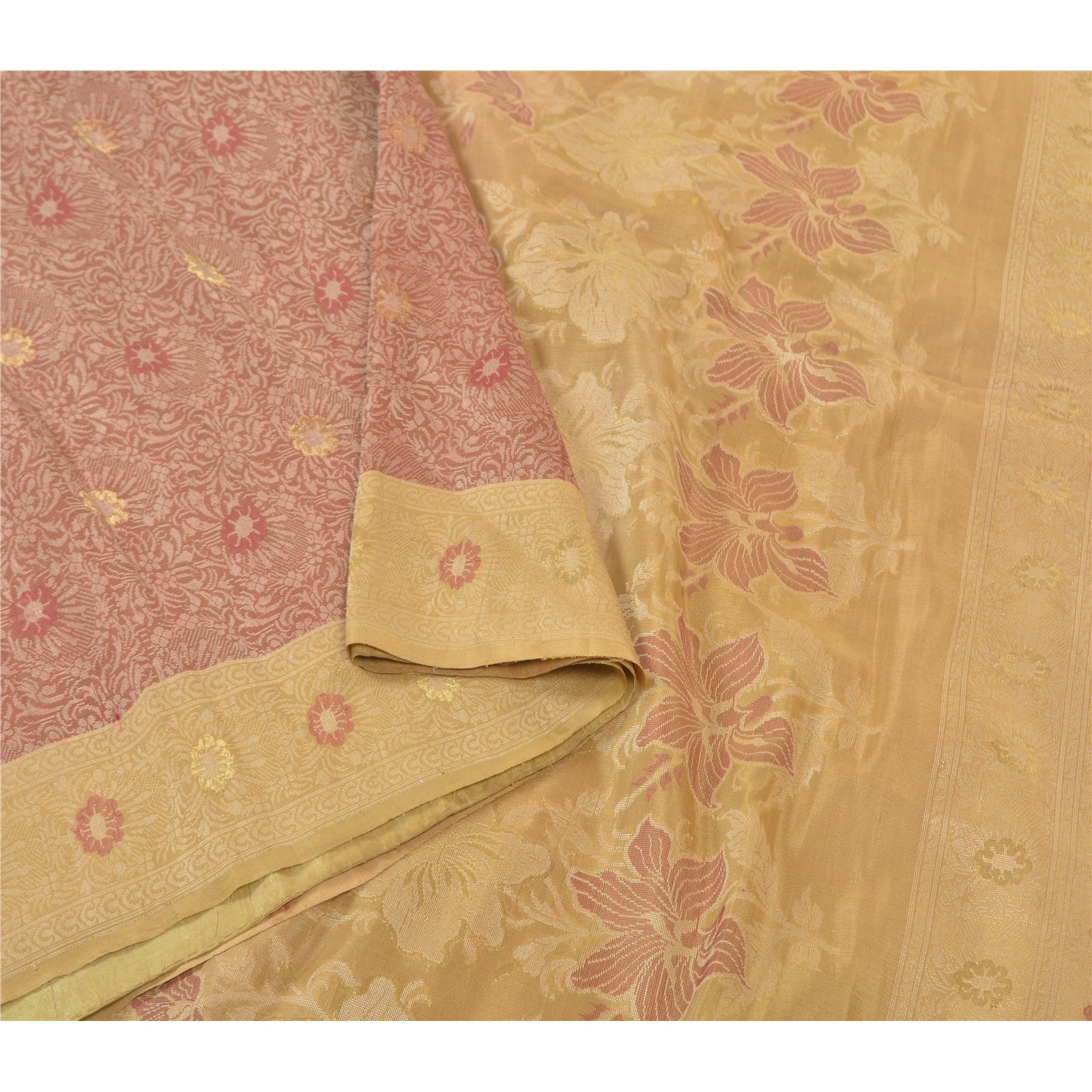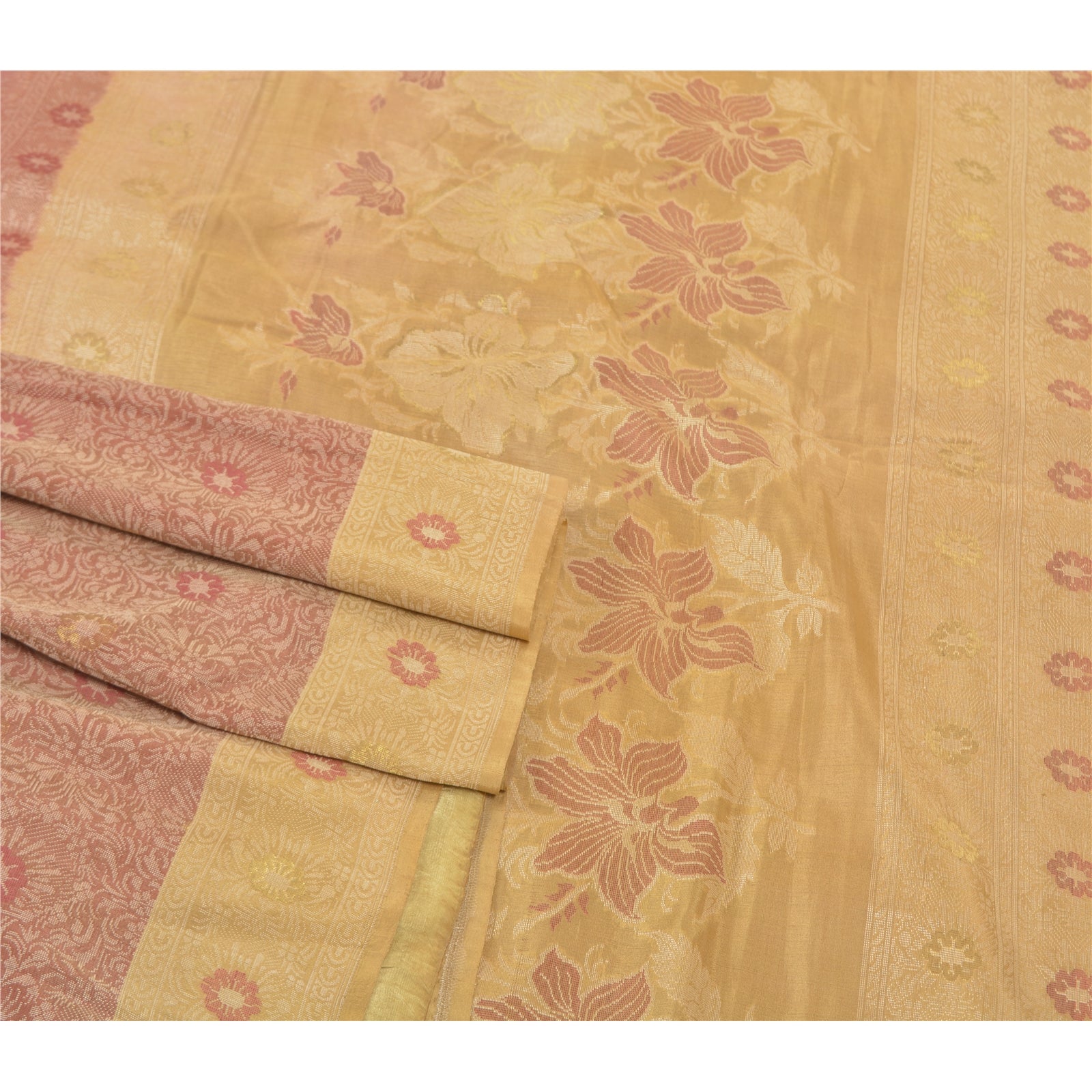 Sanskriti is offeriing you this vintage Elegant Heavy woven Saree In shade of brick red & cream Color. Base Sustainable Fabric Is pure silk adorned With cream, red and golden weaving work Is Making It Even More Special. Floral Design Is Looking beautiful. The woven work is truly making it a unique saree. This unique vintage saree can be used for various crafting ideas even if you don't want to use it as a sari. Design a dress, use it as a throw, as window dressing, upholstery, table linen and much more. Let your creative juices flow and use this decorated Sustainable Fabric in multiple fashion. As the saree is vintage, some mild stains/damages are expected.
