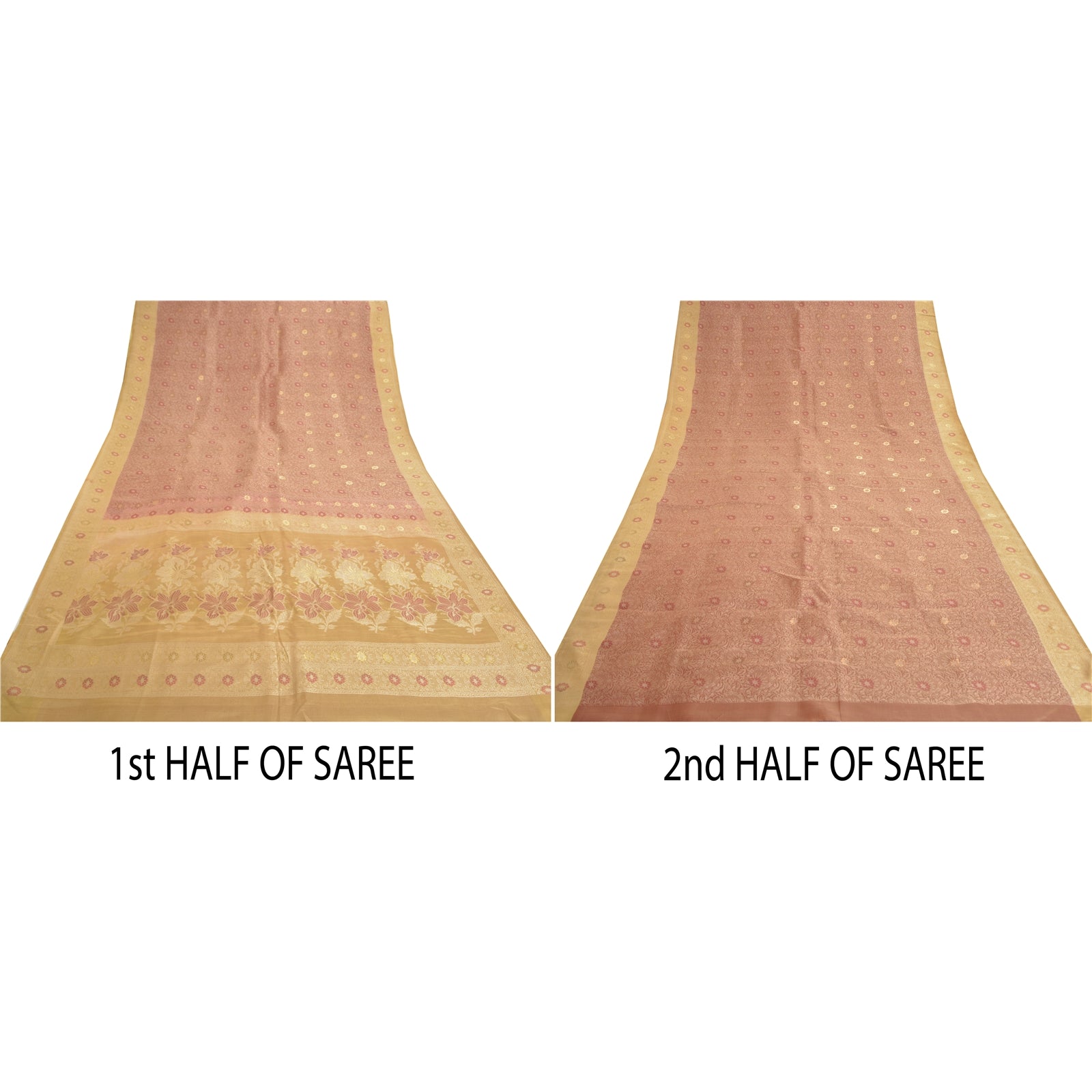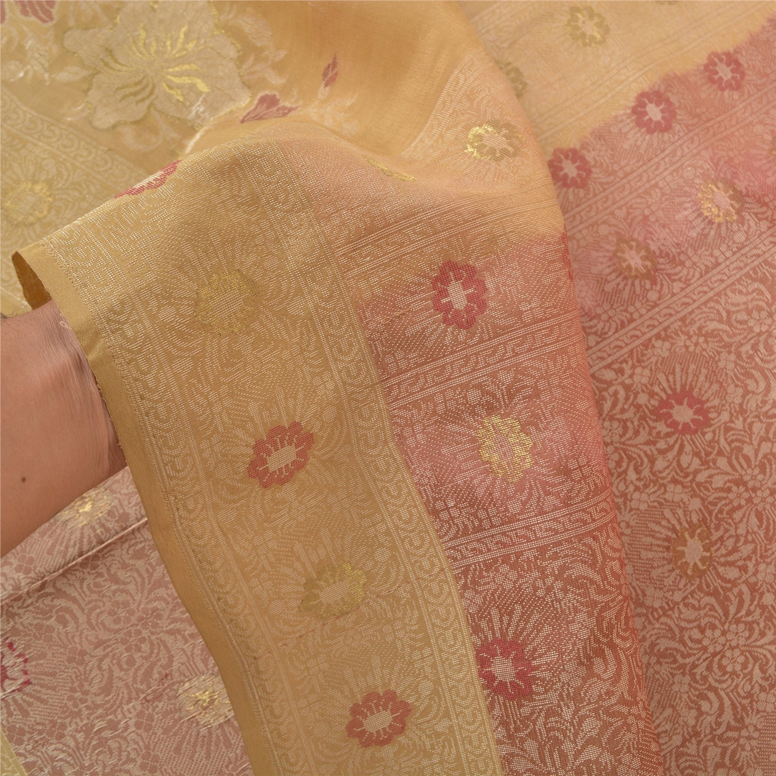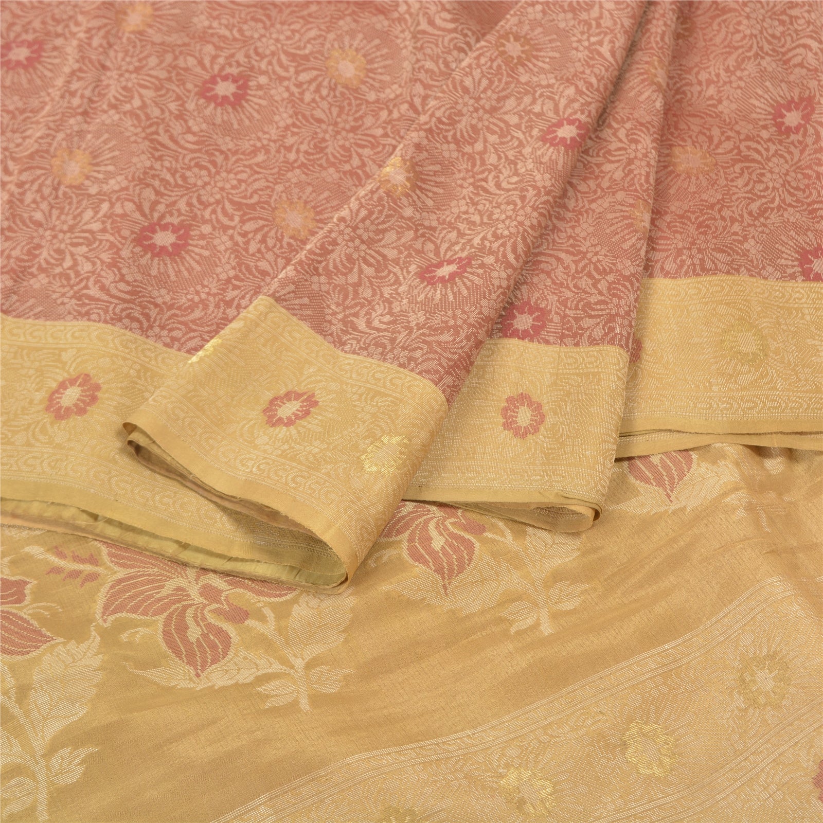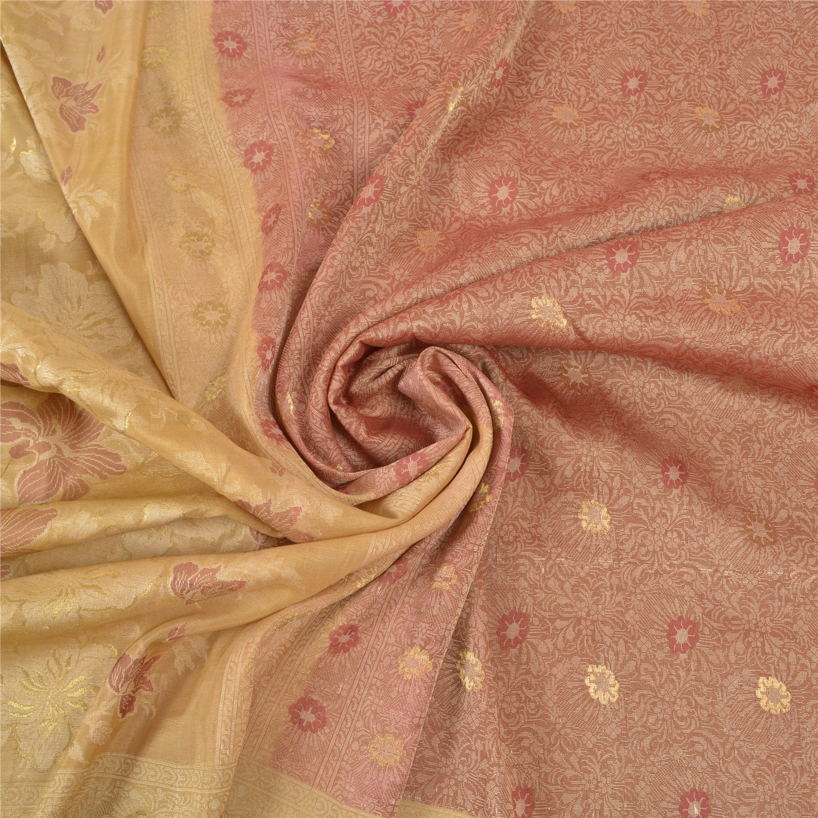 Sanskriti is offeriing you this vintage Elegant Heavy woven Saree In shade of brick red & cream Color. Base Sustainable Fabric Is pure silk adorned With cream, red and golden weaving work Is Making It Even More Special. Floral Design Is Looking beautiful. The woven work is truly making it a unique saree. This unique vintage saree can be used for various crafting ideas even if you don't want to use it as a sari. Design a dress, use it as a throw, as window dressing, upholstery, table linen and much more. Let your creative juices flow and use this decorated Sustainable Fabric in multiple fashion. As the saree is vintage, some mild stains/damages are expected.