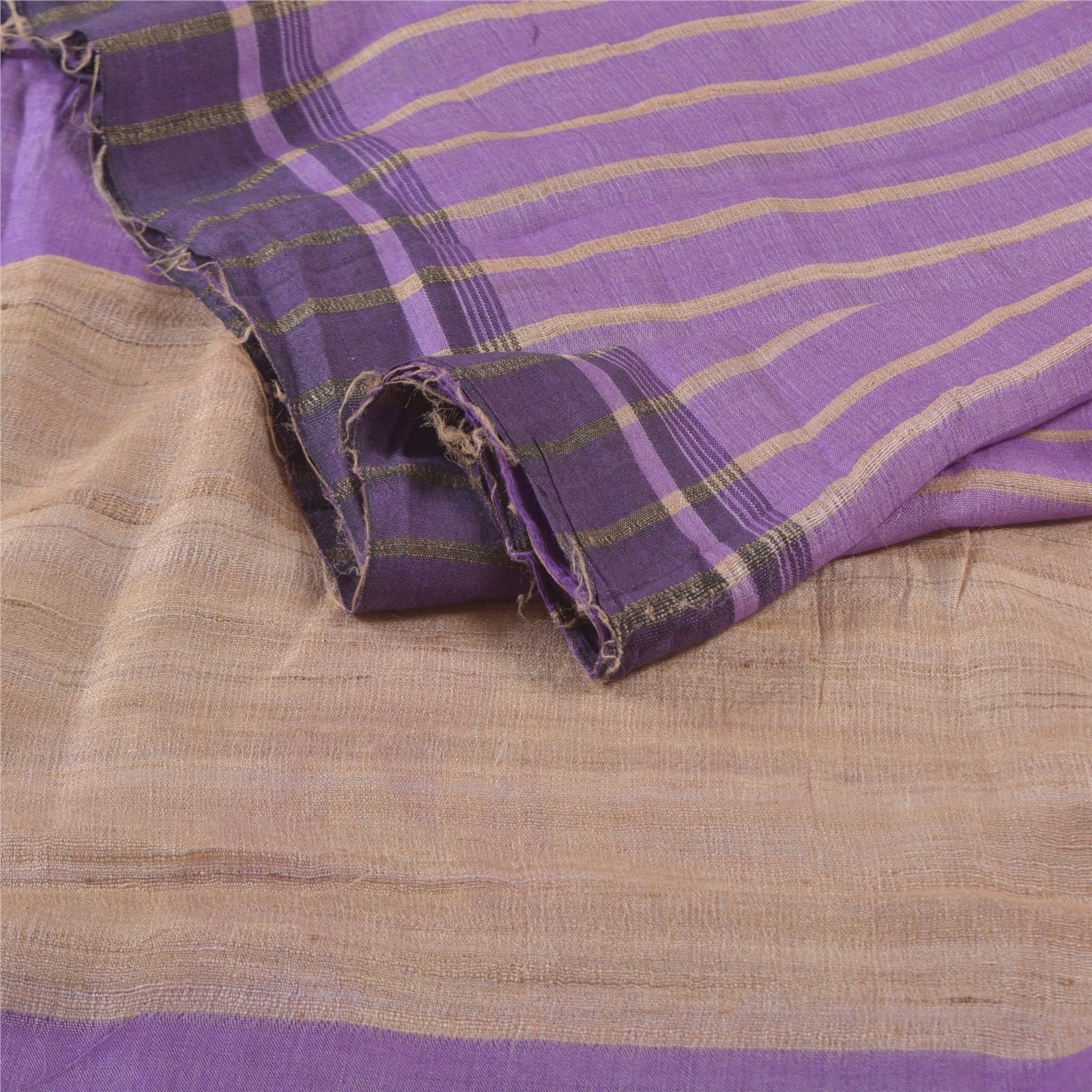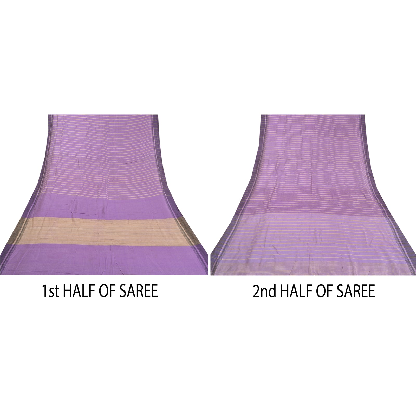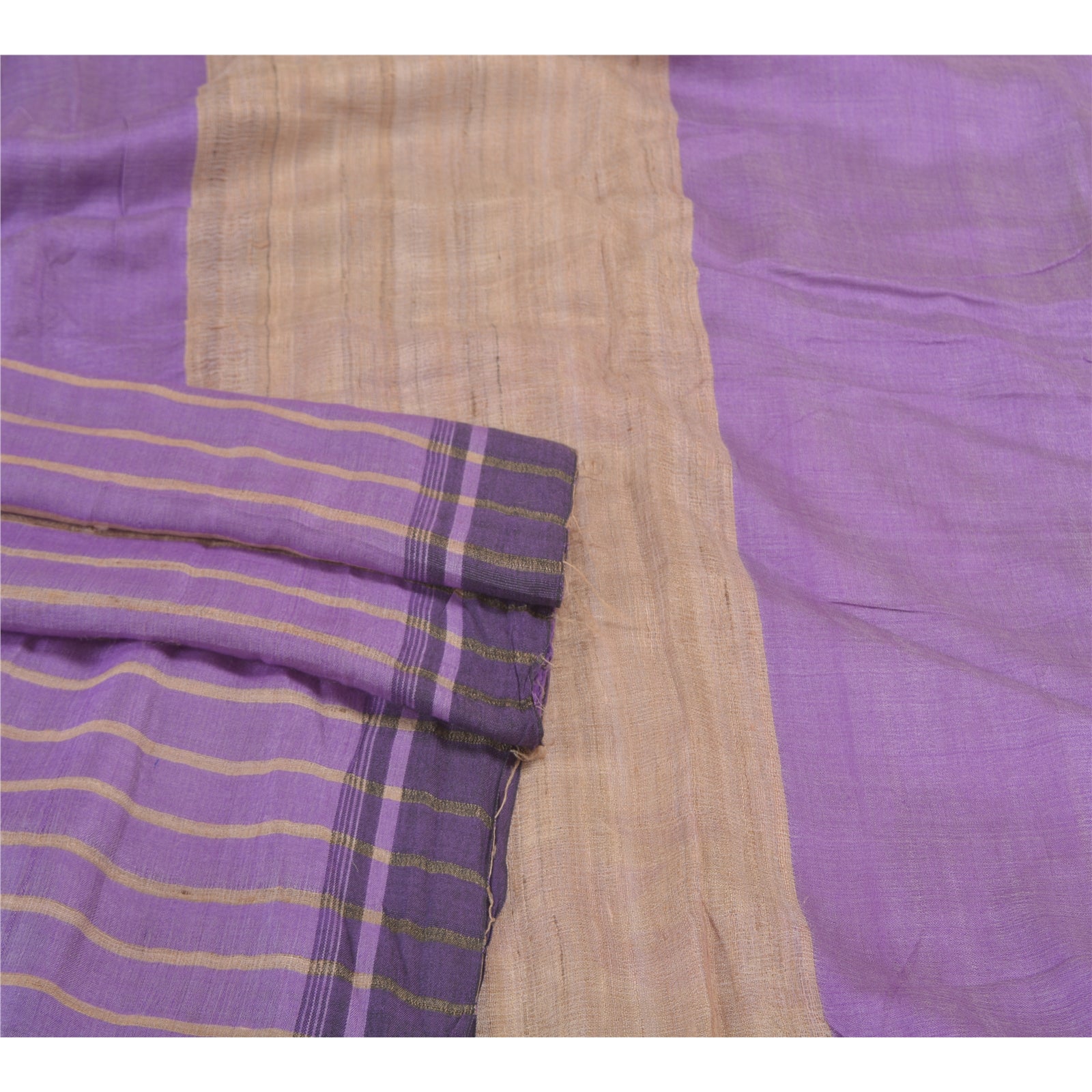Sanskriti Vintage Heavy Sarees Pure Handloom Silk Purple Woven Sari Sustainable Fabric