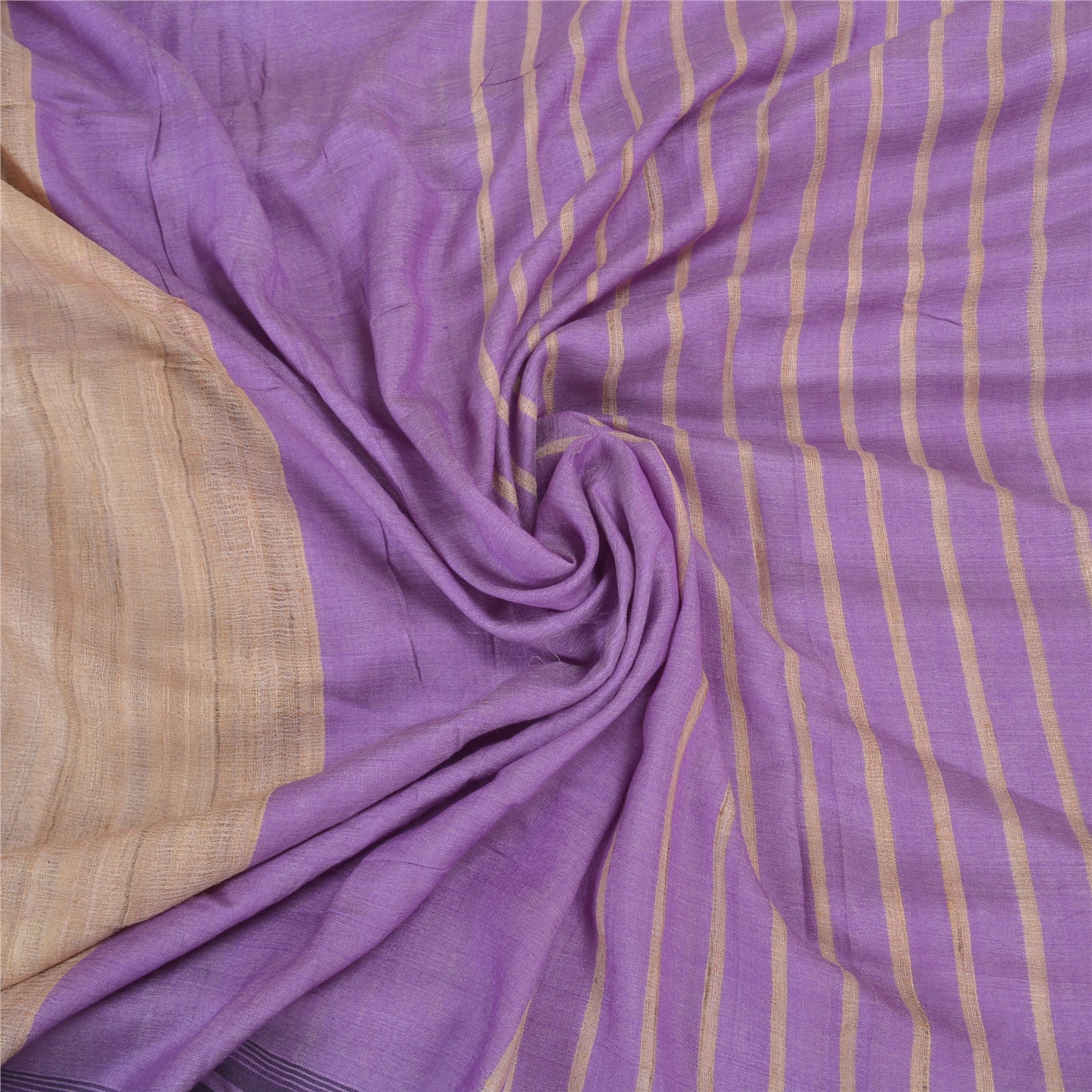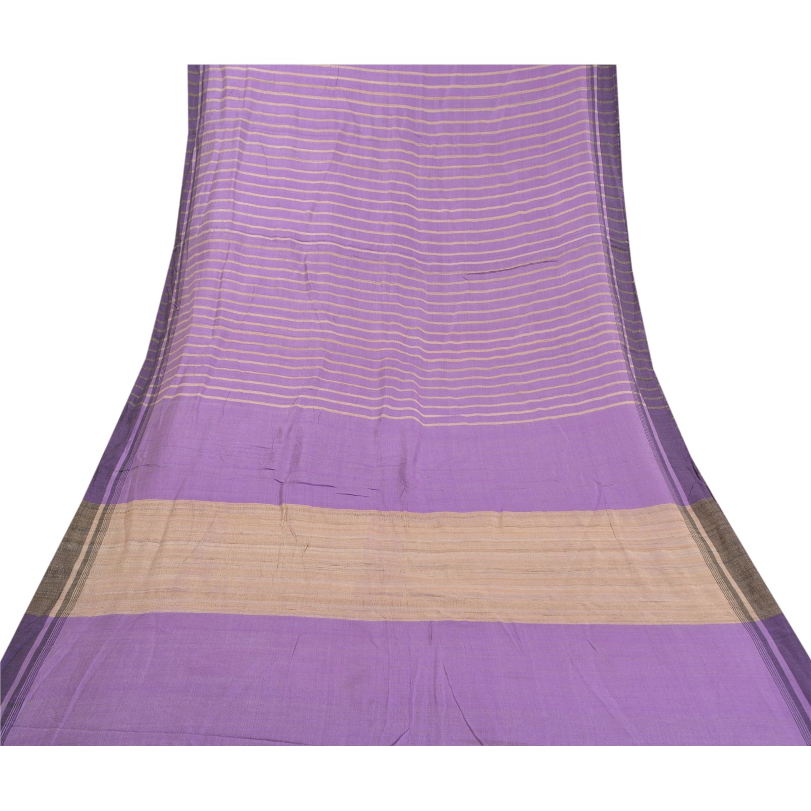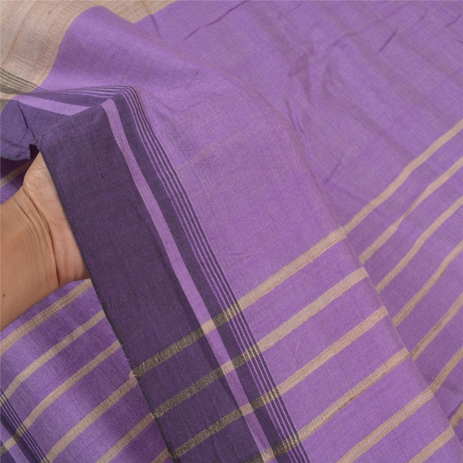 Sanskriti Vintage Heavy Sarees Pure Handloom Silk Purple Woven Sari Sustainable Fabric