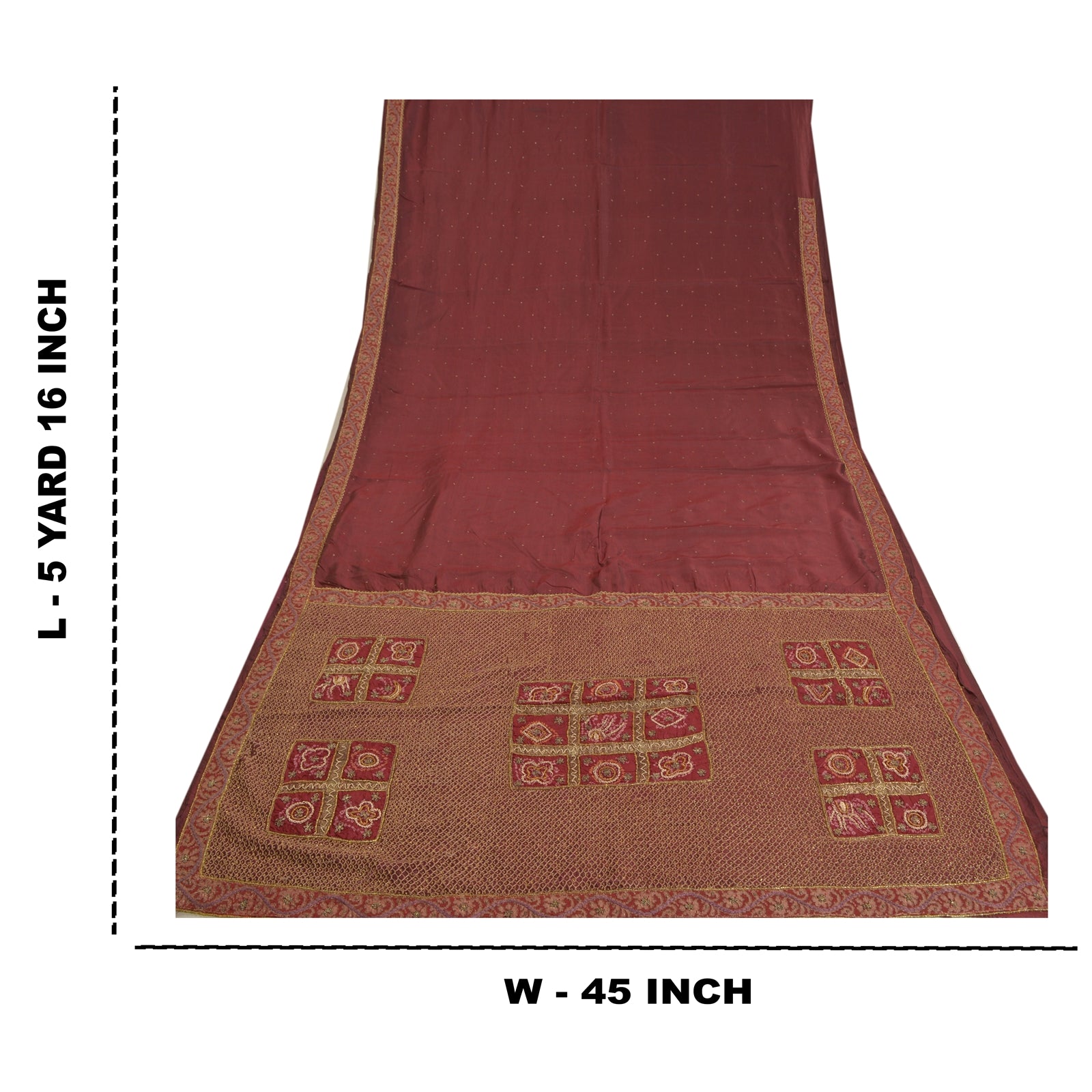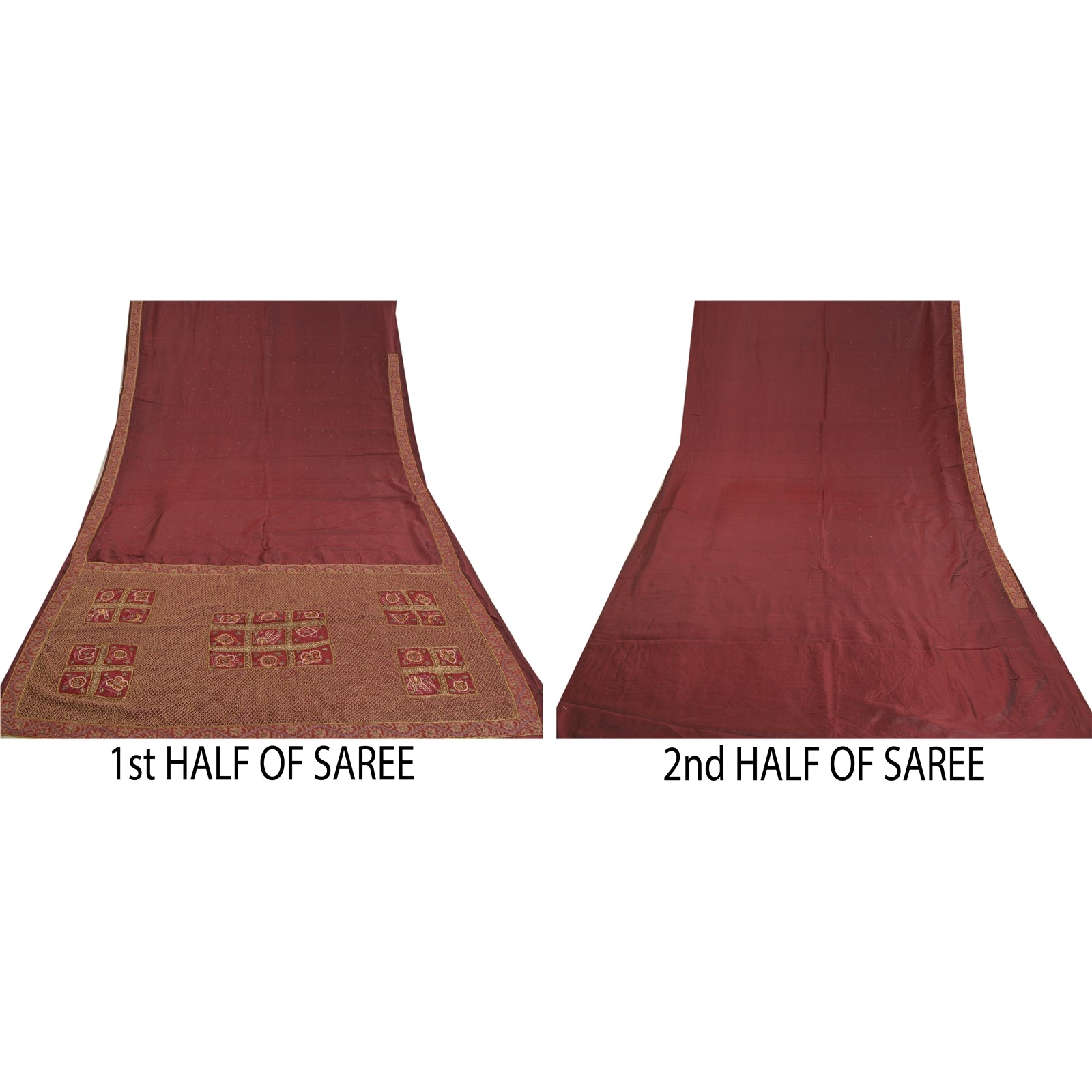 Outstanding dark red colored 100% pure silk hand embroidered Bandhani heavy saree. Pallu & Border features are floral pattern with Bandhani Sustainable Fabric patch work. You can see metallic golden zardozi work, yellow glass beads work. The center part of saree has beaded work. This heavy saree can be used for various crafting ideas too. Use it for dress designing, as a throw, as window dressing, upholstery, table linen and much more. Let your creative juices flow! 'International buyers please note: Import duties, taxes, and charges are not included in the item price or postage cost. These charges are the buyer's responsibility. Please check with your country's customs office to determine what these additional costs will be prior to bidding or buying. Buyer will pay custom duty/tax. It is calculated and charged differently by every country. As a seller I do not have any control over it. VAT or sales tax is calculated by the platform at the time of checkout. Customs charge is payable at the time of delivery.'