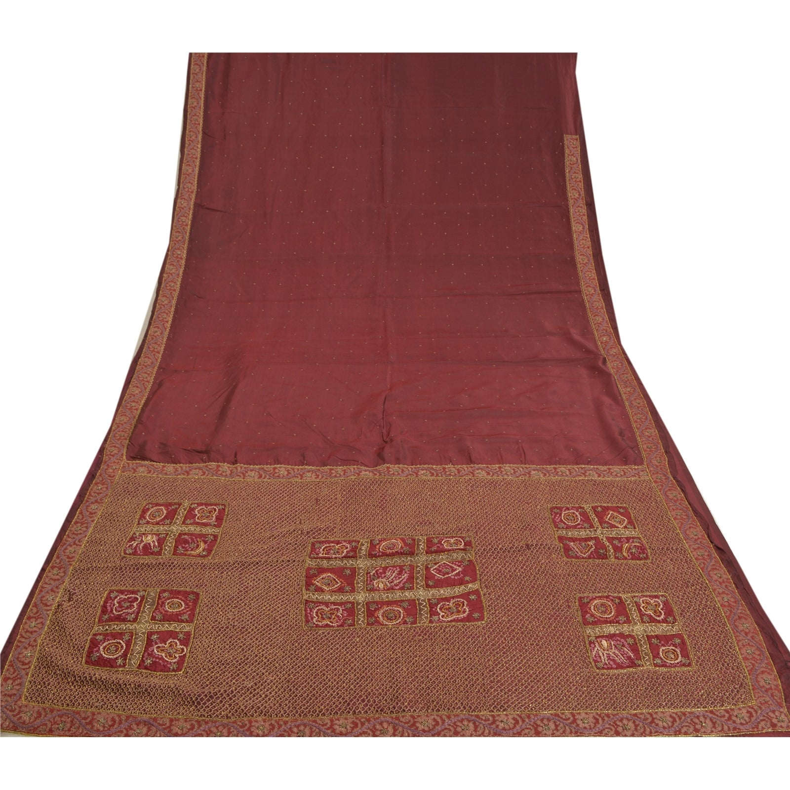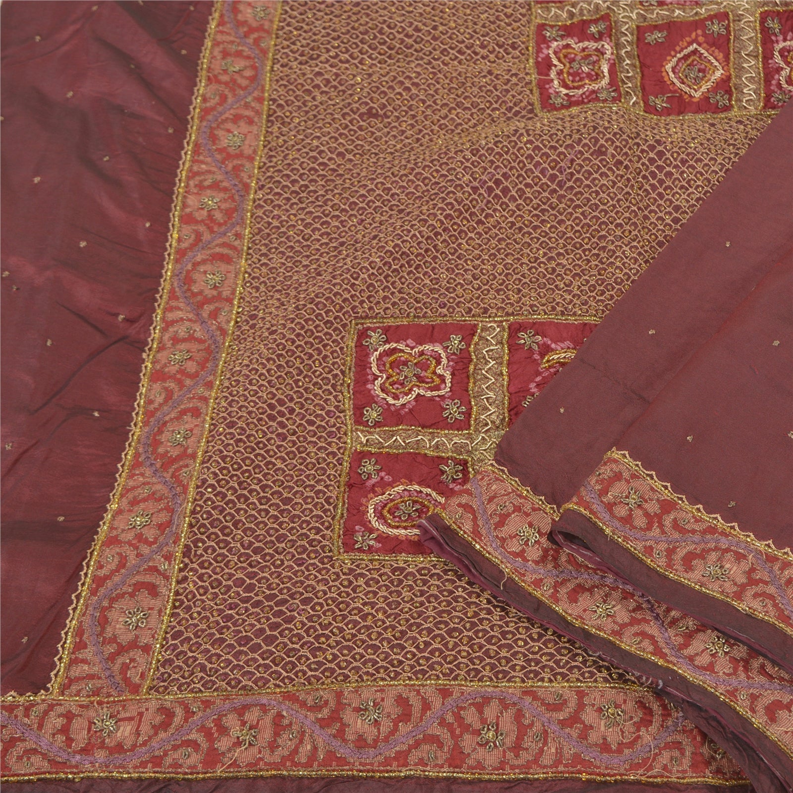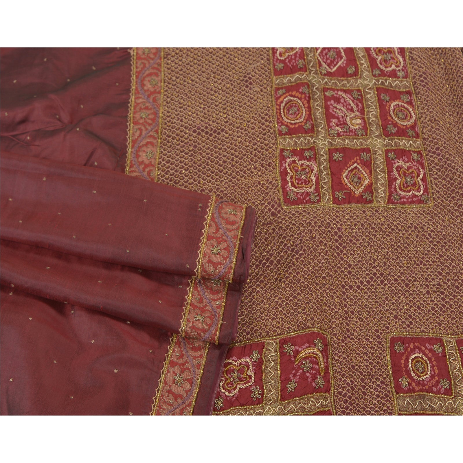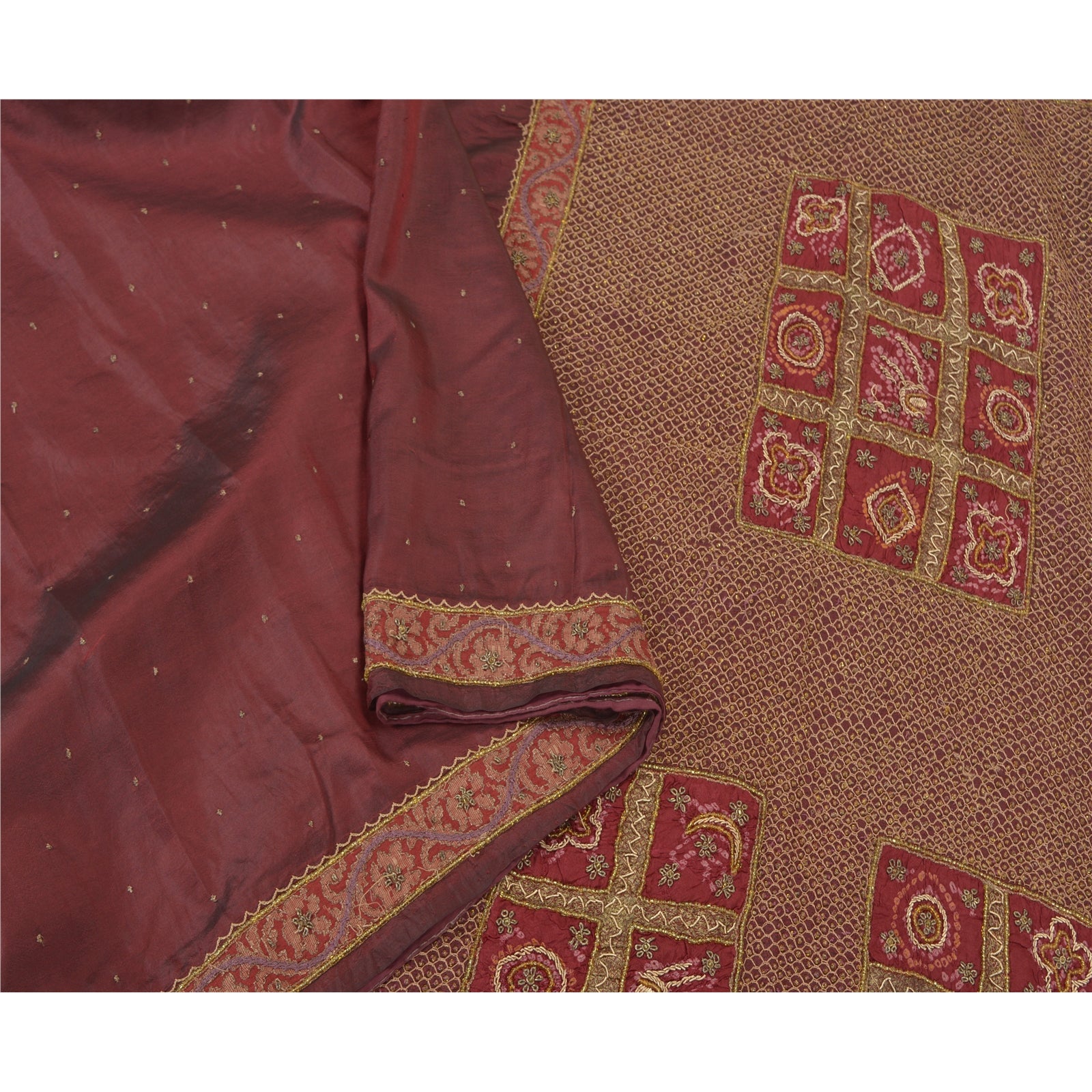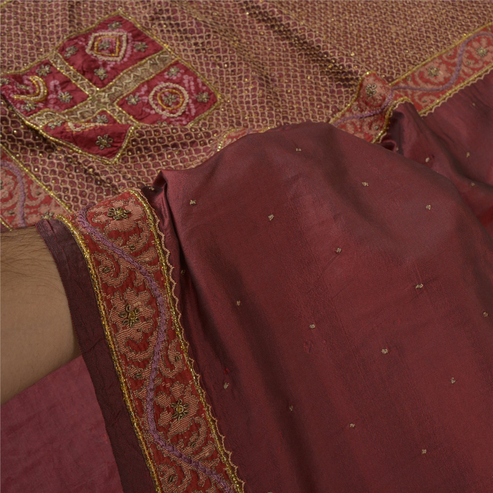 Sanskriti Vintage Heavy Sarees Pure Silk Hand Beaded Bandhani Patch Sari Sustainable Fabric