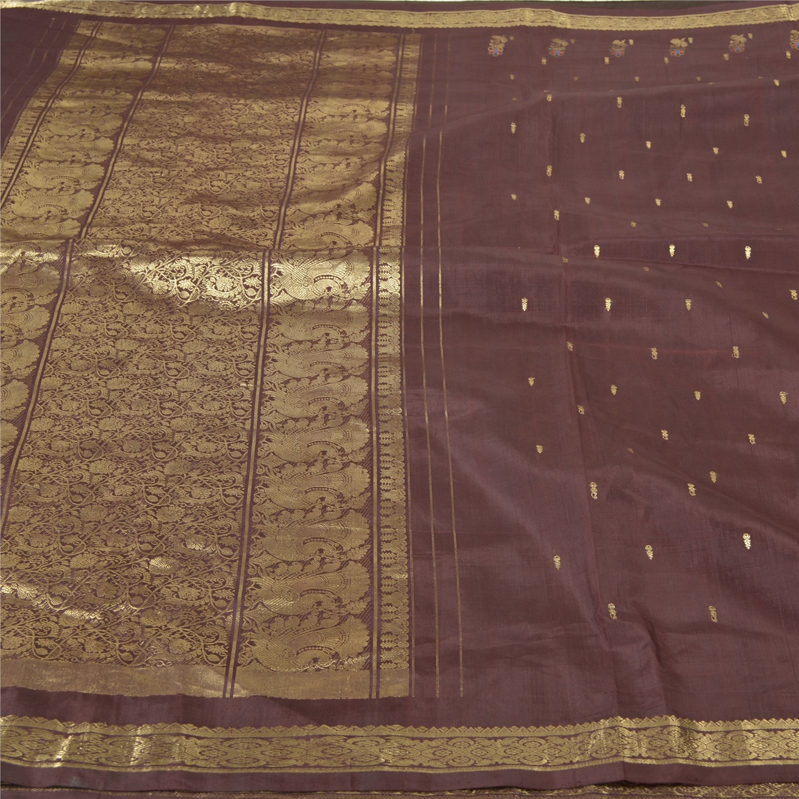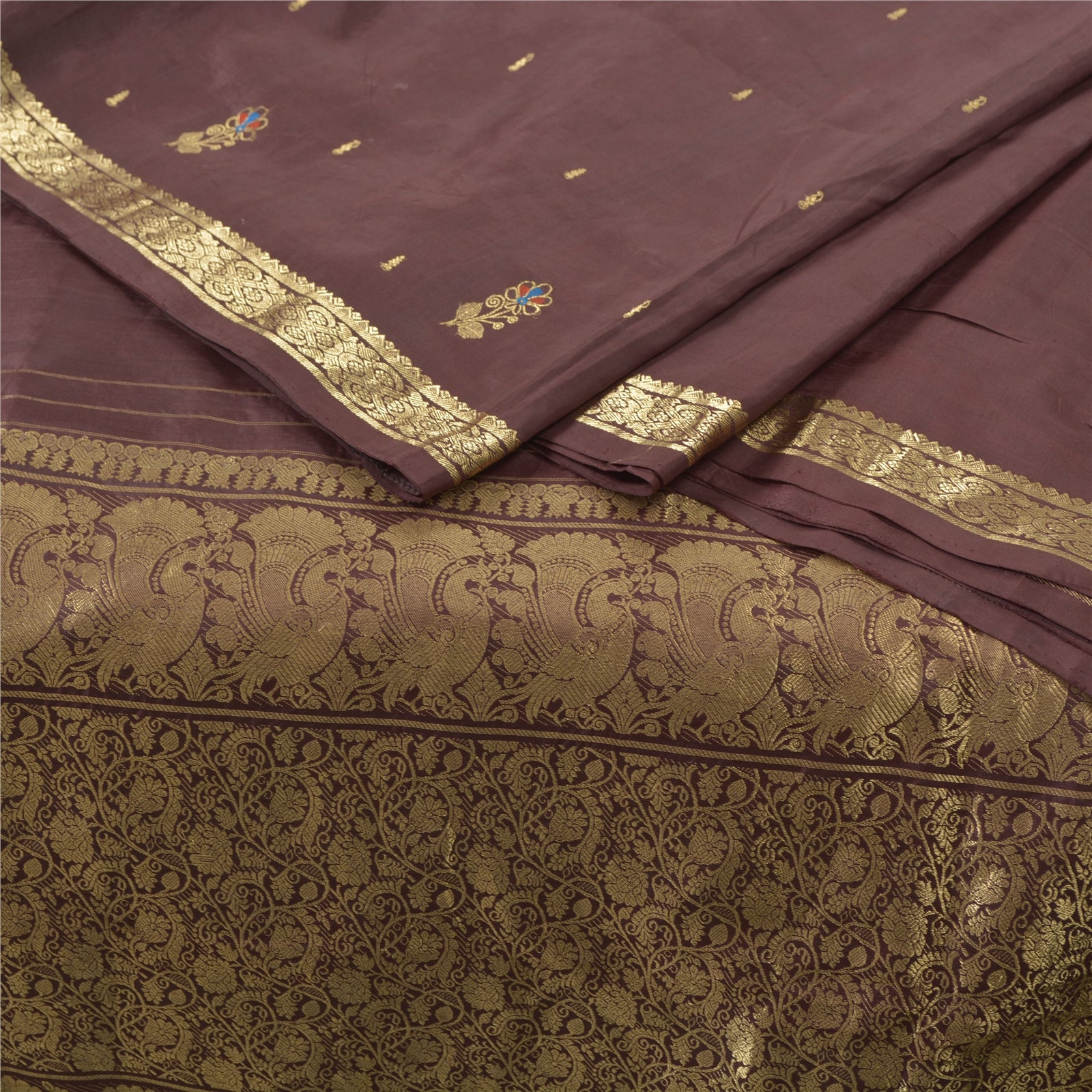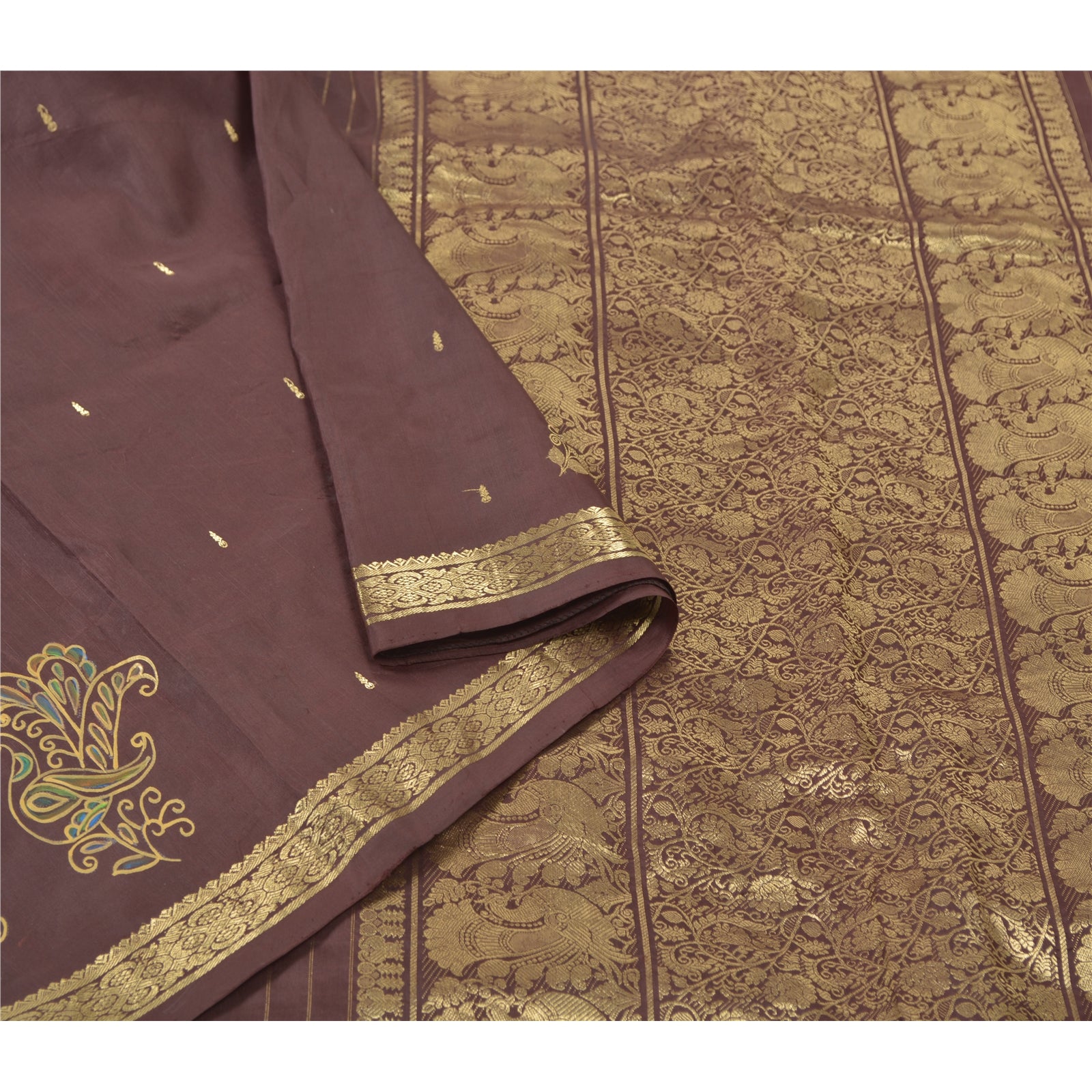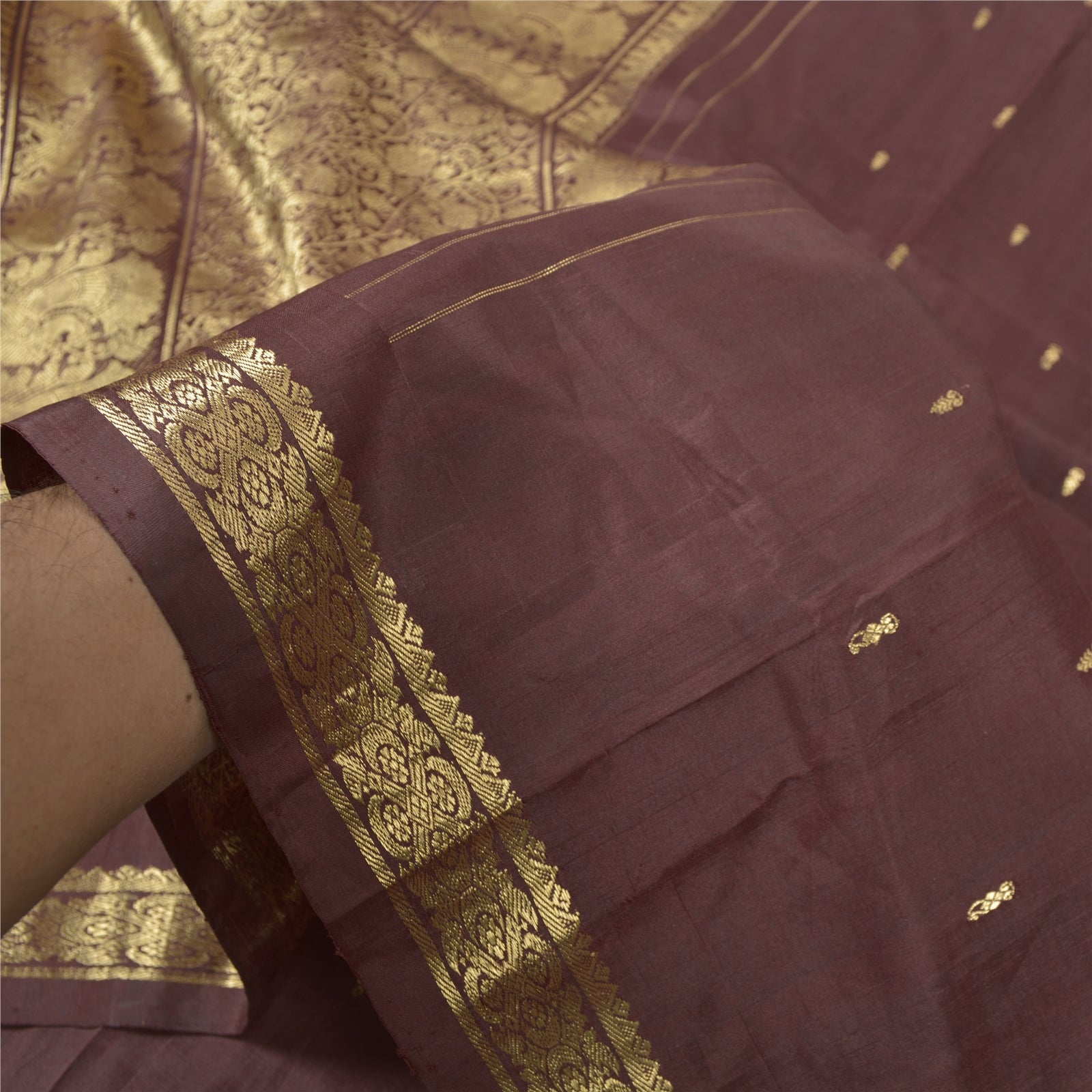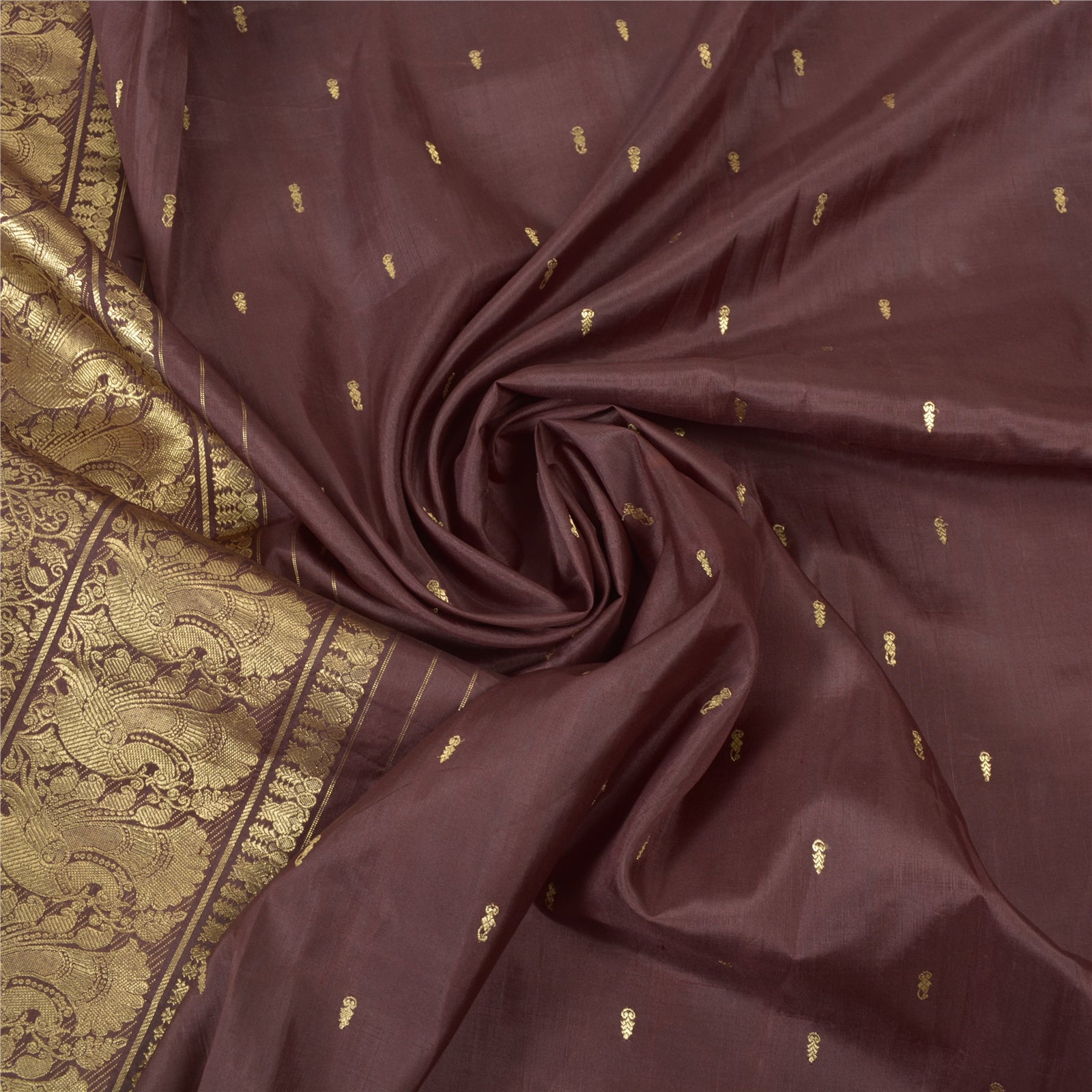 Sanskriti Vintage Heavy Wedding Sarees Pure Silk Brown Woven Brocade Sari Sustainable Fabric