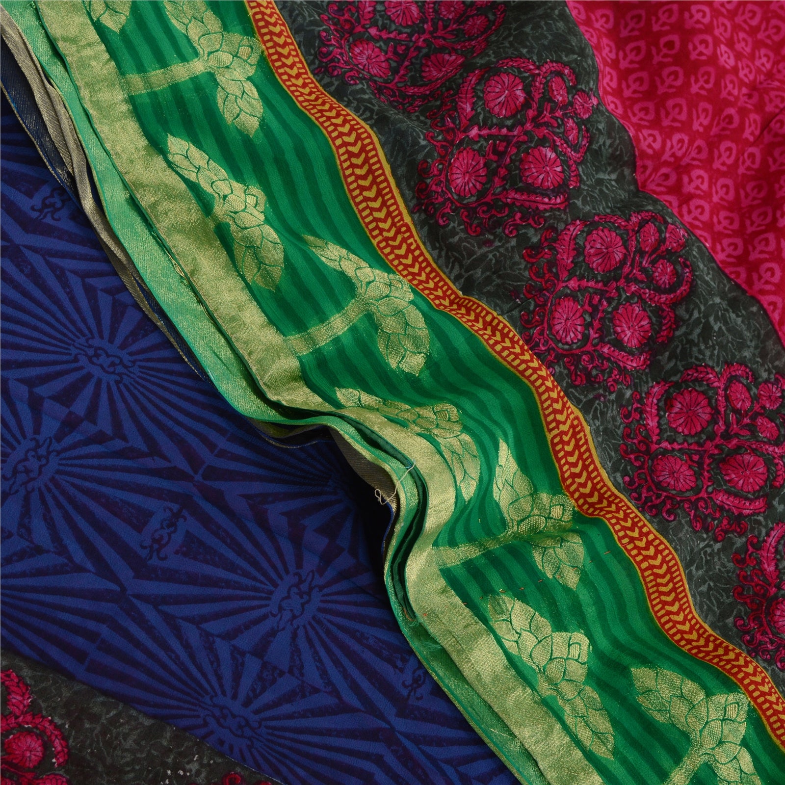 Beautiful hot pink & blue colored printed & woven blend georgette saree. Pallu & Border has printed floral & paisley design with print and woven work. Similar printed design in center part of saree. What is special about this saree? Brilliant design on soft fabric is really enhancing the beauty of the saree.This unique vintage saree can be used for various crafting ideas even if you don't want to use it as a sari. Design a dress, use it as a as window dressing, upholstery, sarongs, throw, dress making and table linen much more. Let your creative juices flow and use this decorated fabric in multiple fashion. Please note - Buyers from Australia are required to pay postage. Registered air mail to Australia is temporarily suspended due to the pandemic. Once it goes back to normal we'll revert to free shipping. For now, we are using Aramex and DHL to ship orders. These services are expensive but faster compared to regular mail. Thank you for your support. If you are buying in bulk we will refund whatever excess is left. Contact us after that purchase. For USA buyers - Single item ships via registered air mail, buy 1 more to get FedEx.