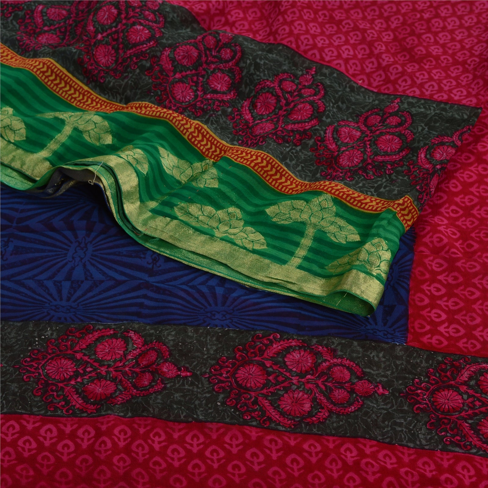 Sanskriti Vintage Hot Pink Woven Print Sarees Blend Georgette Sari Craft Fabric