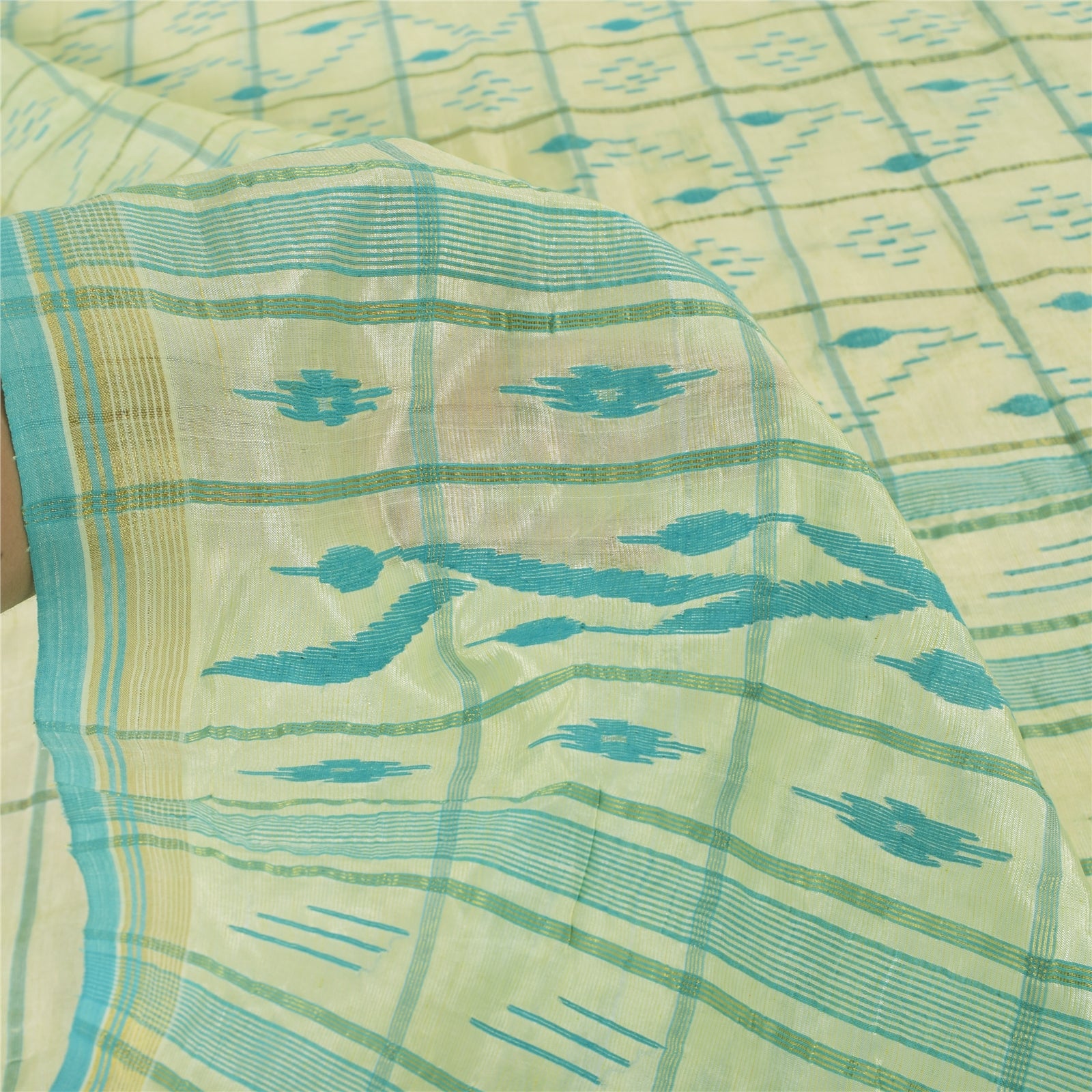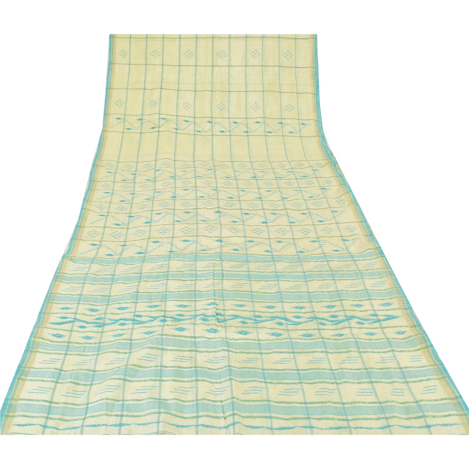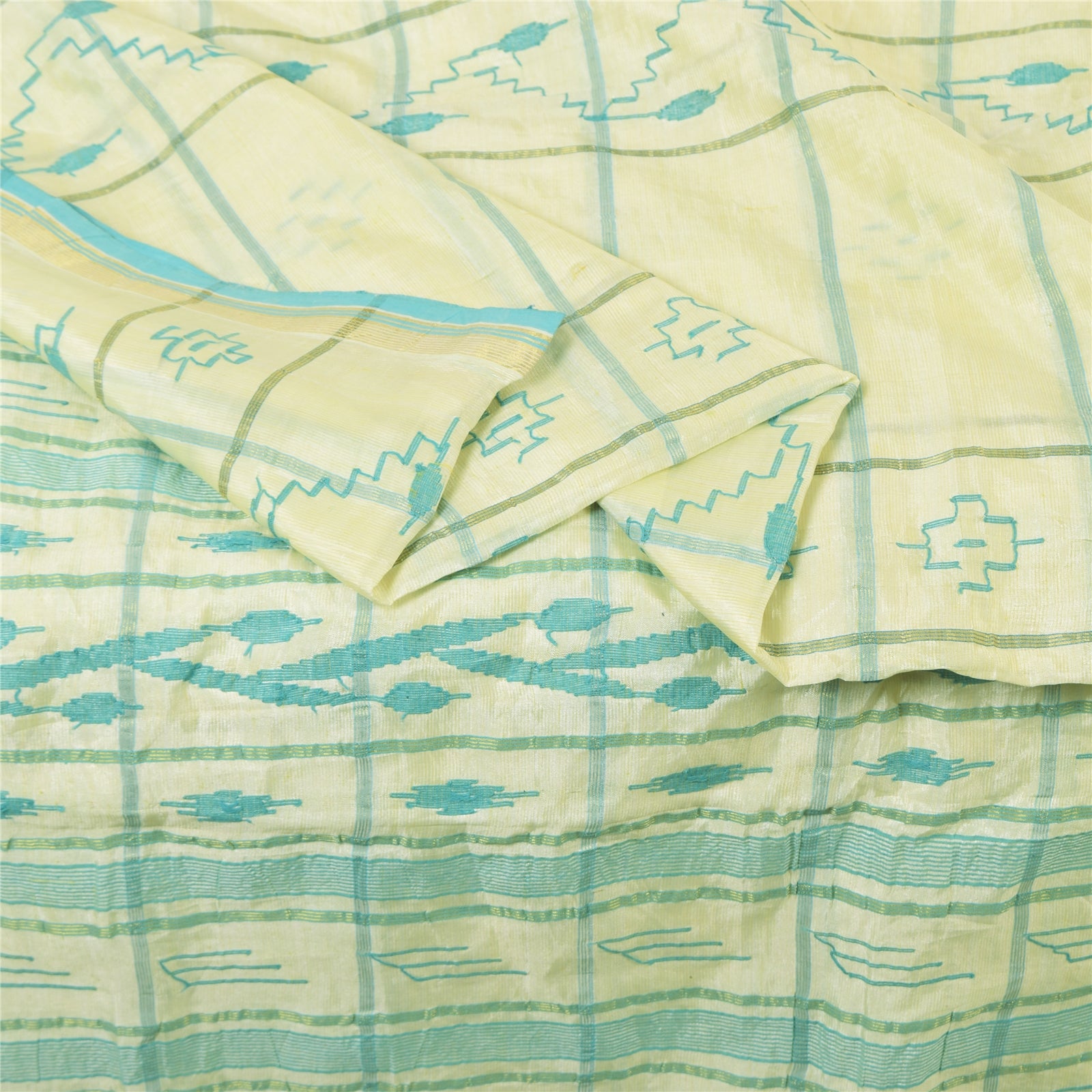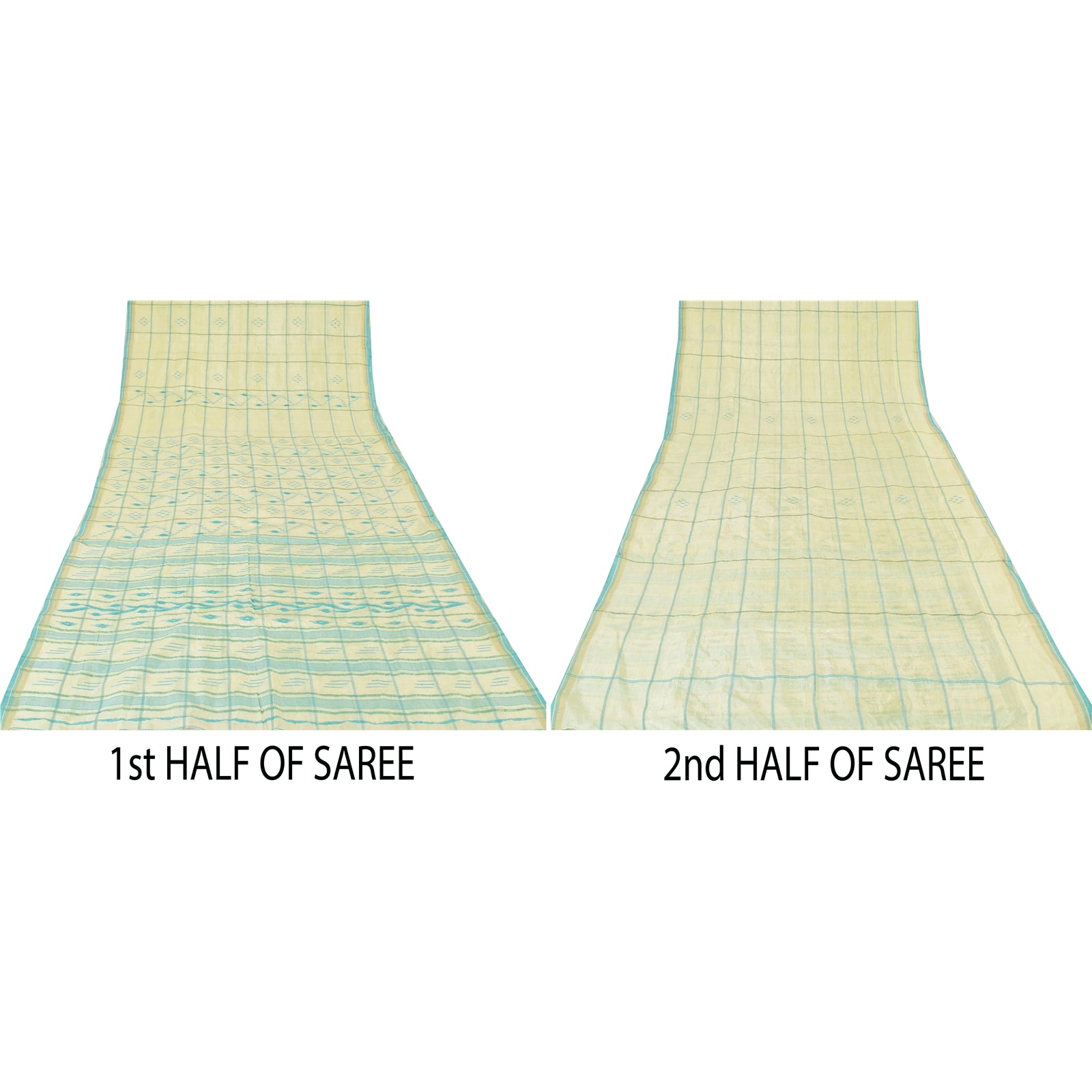 THE ITEM COLOR OR SHADE MAY BE DARKER OR LIGHTER THAN THE PICTURE.' An Awesome Sari In Blend Silk Ivoey Colored Woven Tant Sari/Sustainable Fabric. Pallu & Border Features floral, stripes & checks design embellished with golden zari woven work, blue color woven thread work. You Can See Center Portion Of The Sari Has Similar Thread Work With checks design. This unique vintage saree can be used for various crafting ideas for example design a dress, use it as a throw, as window dressing, upholstery, table linen and much more. Let your creative juices flow and use this decorated Sustainable Fabric in multiple fashion Shipping note: International buyers please note: Import duties, taxes, and charges are not included in the item price or postage cost. These charges are the buyer's responsibility. Please check with your country's customs office to determine what these additional costs will be prior to bidding or buying. Buyer will pay custom duty/tax. It is calculated and charged differently by every country. As a seller I do not have any control over it. VAT or sales tax is calculated by the platform at the time of checkout. Customs charge is payable at the time of delivery. SKU: HS-7129