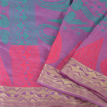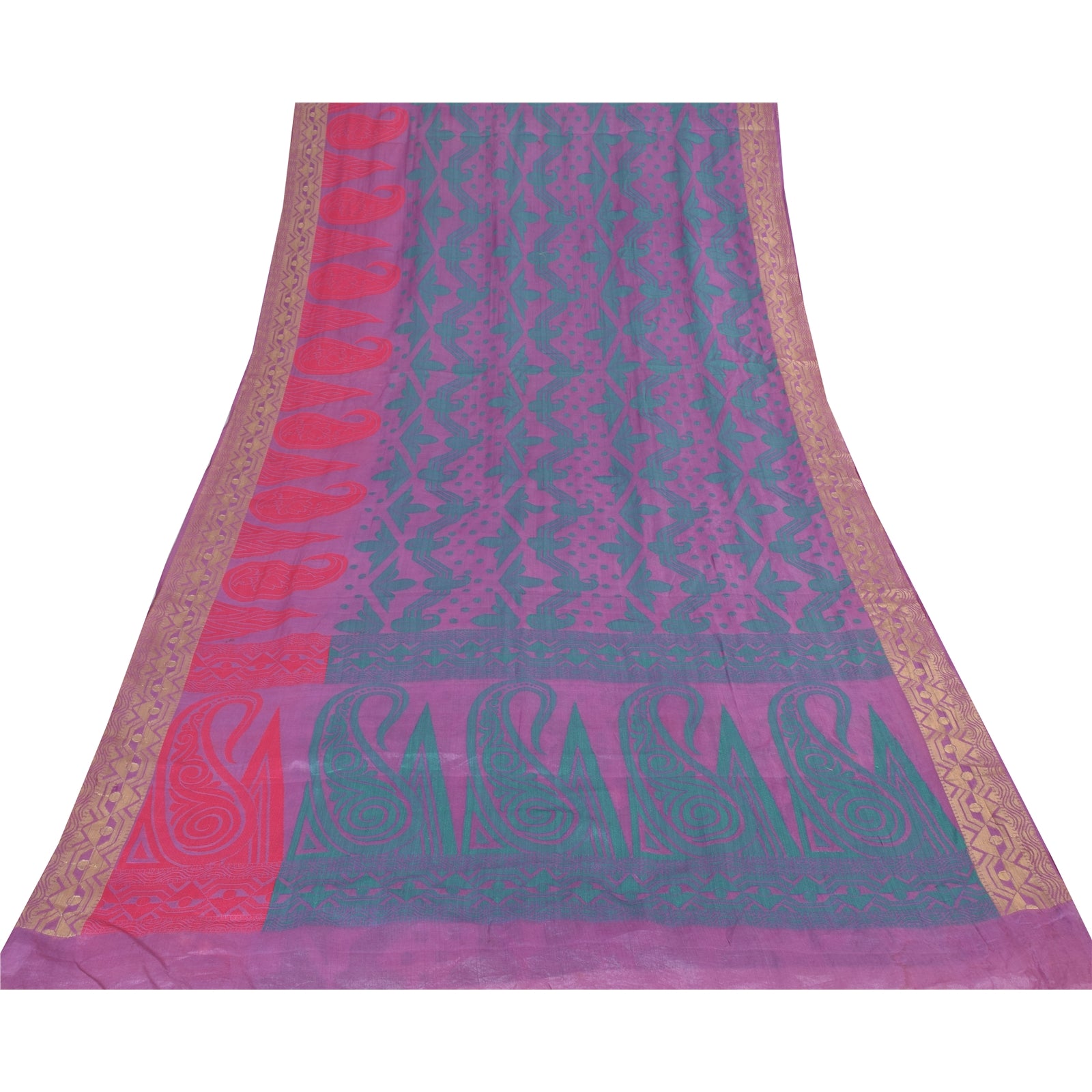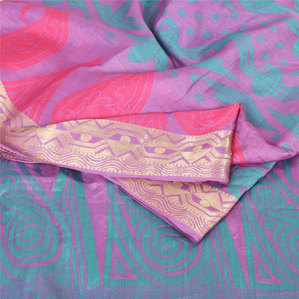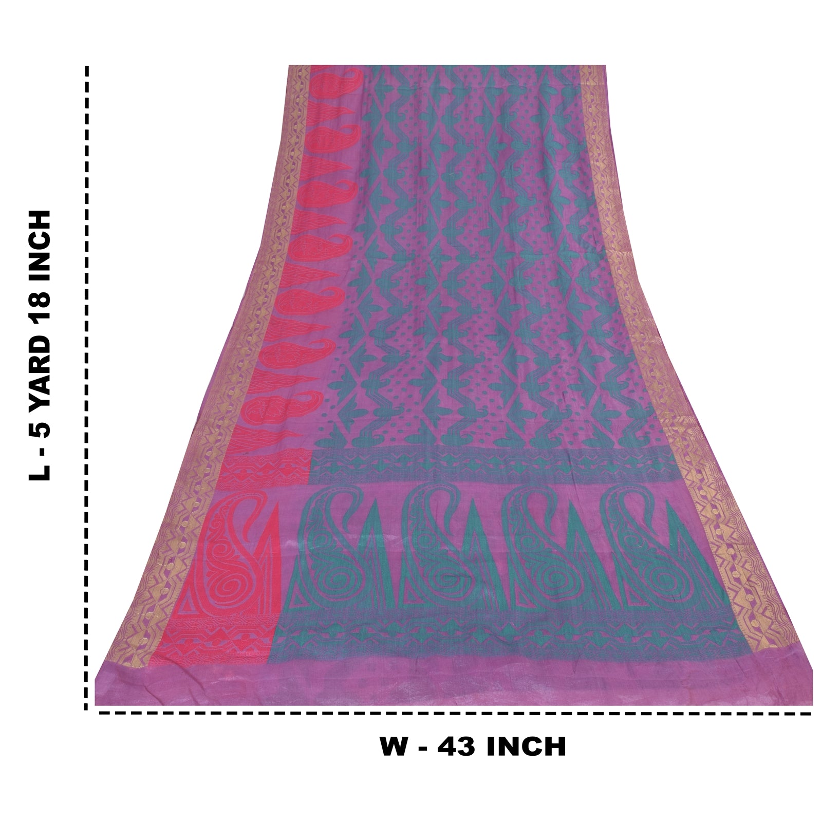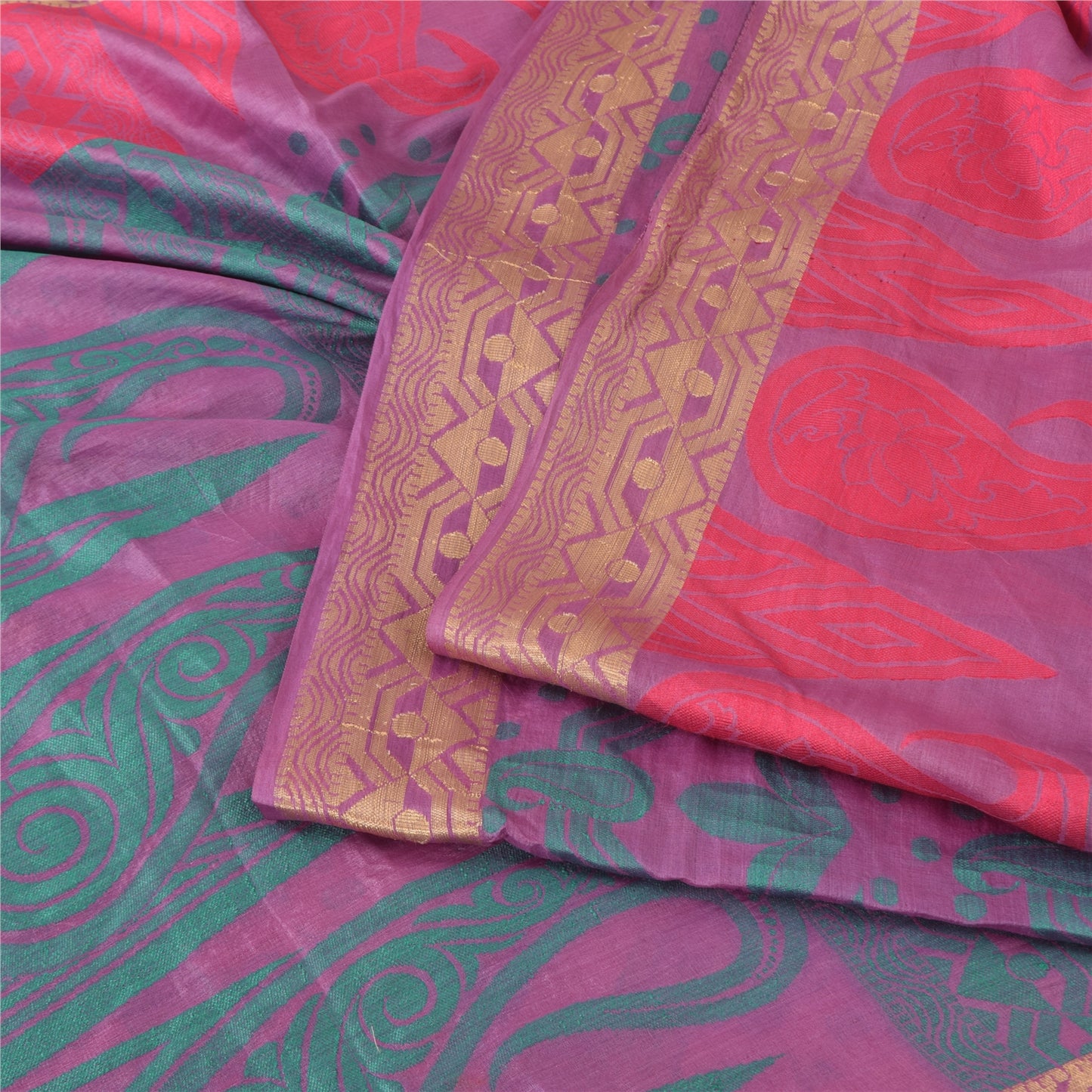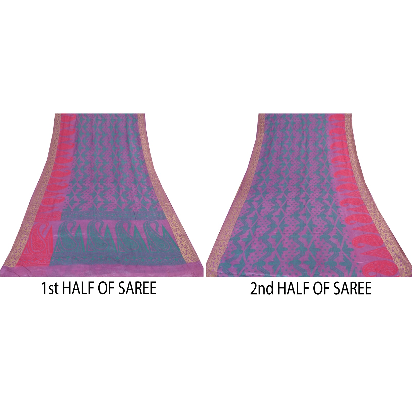 Sanskriti Vintage Indian Pink Sarees Pure Silk Printed Premium Sari Craft Sustainable Fabric